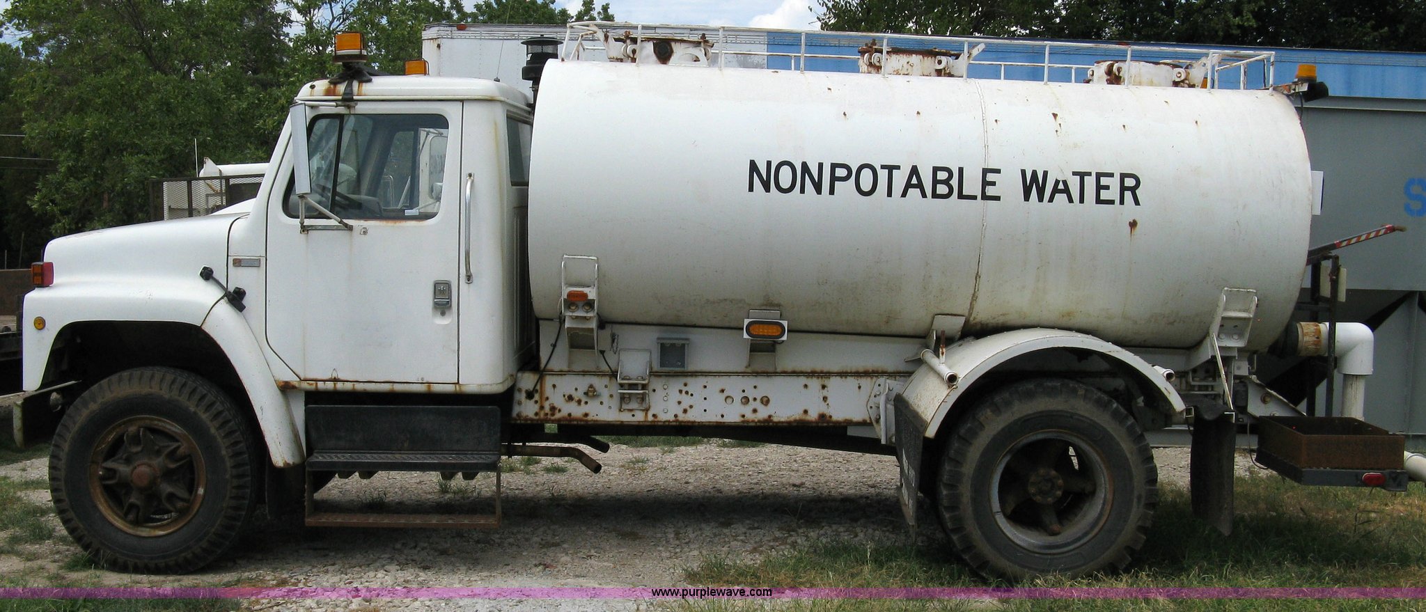 Purple Wave is selling a used Tank Truck or Water Truck in Kansas. This item is a 1981 International Series 1724 water truck with the following: 54,867 miles on odometer, International V8 gas engine, Serial 5BHB32597, Five speed manual transmission with split differential, 144" x 84" x 53" tank, 4" x 108" rear water spreader, 10.00R20 tires