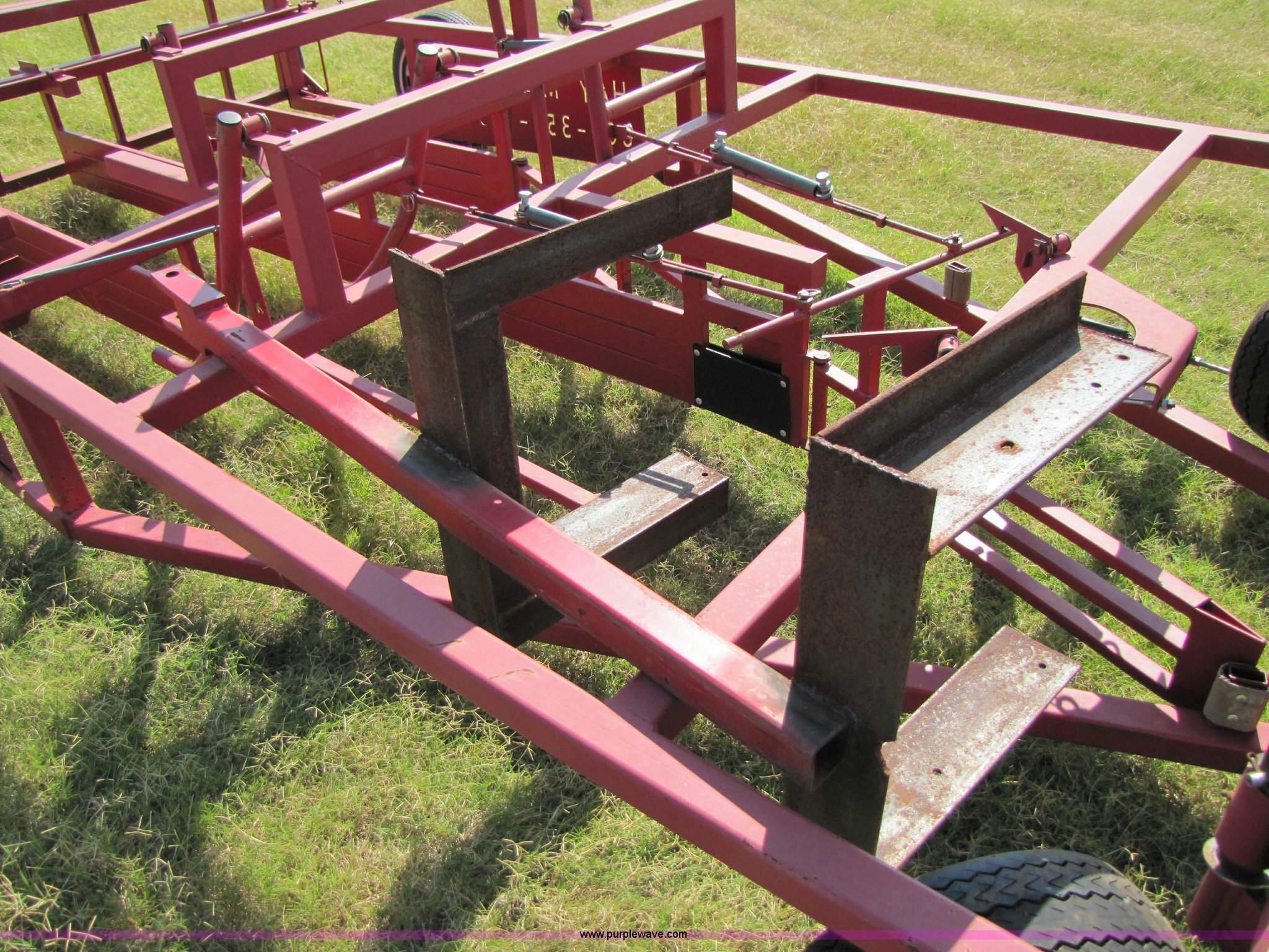 Purple Wave is selling a used Hay Handling in Oklahoma. This item is a Haymaster eight bale accumulator with the following: Ground driven, Ball hitch, Pin hitch, 155/80R13 rear tires, 18.5x8.5-8 front tires