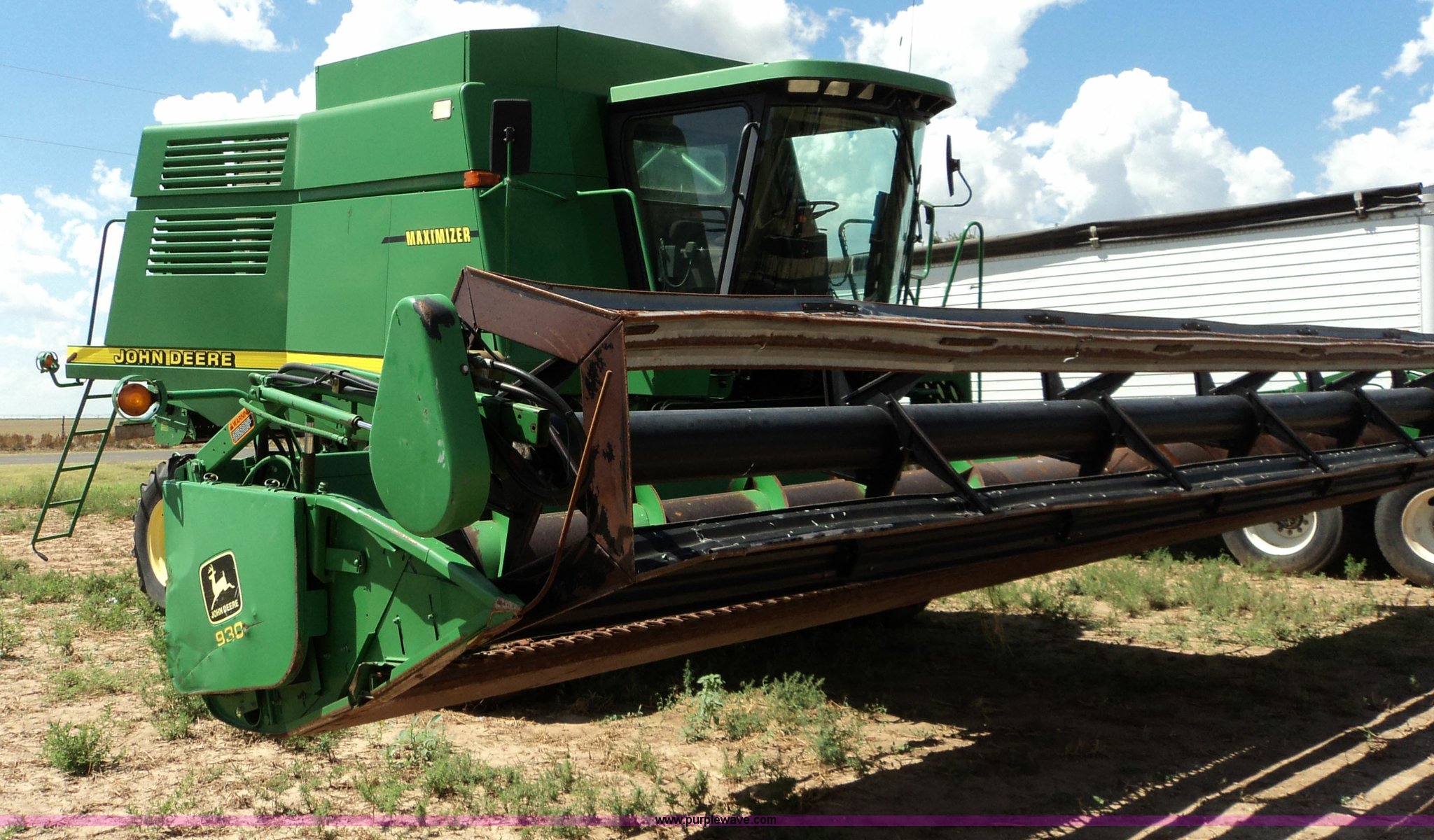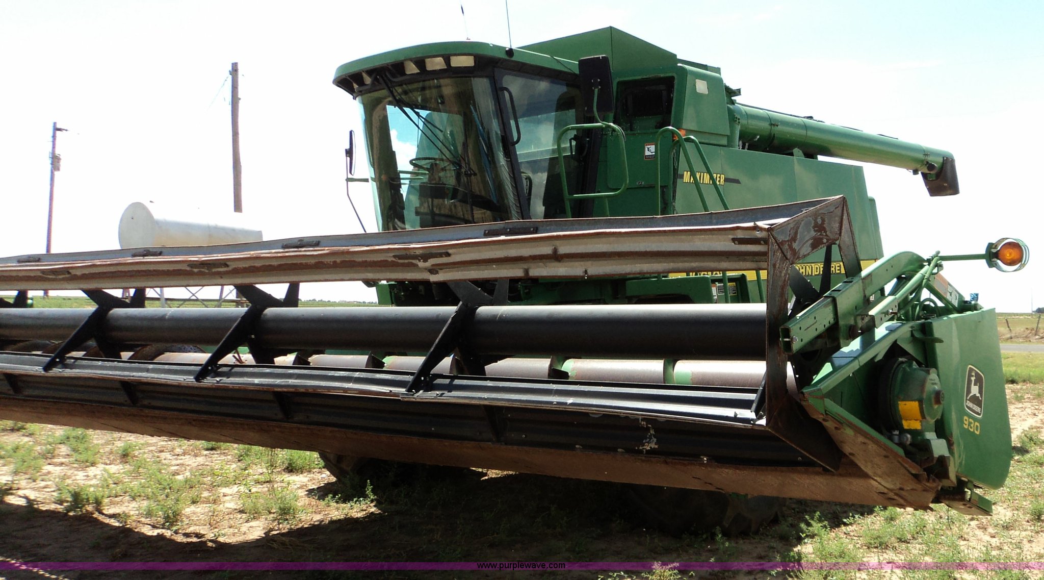 Purple Wave is selling a used Combine in Texas. This item is a John Deere 9610 combine with the following: 4664 engine hours on meter, 3483 separator hours on meter, John Deere 8.1L six cylinder turbocharged diesel engine, Three speed hydrostatic transmission, 240 bushel grain tank, Grain loss monitor, John Deere 930 header, Bat reel, Additional pickup reel with correct gears included, 30.5-32 drive tires, 16.9-26 steering axle tires, Heavy duty adjustable rear axle, Chopper with spreader, Recent repairs