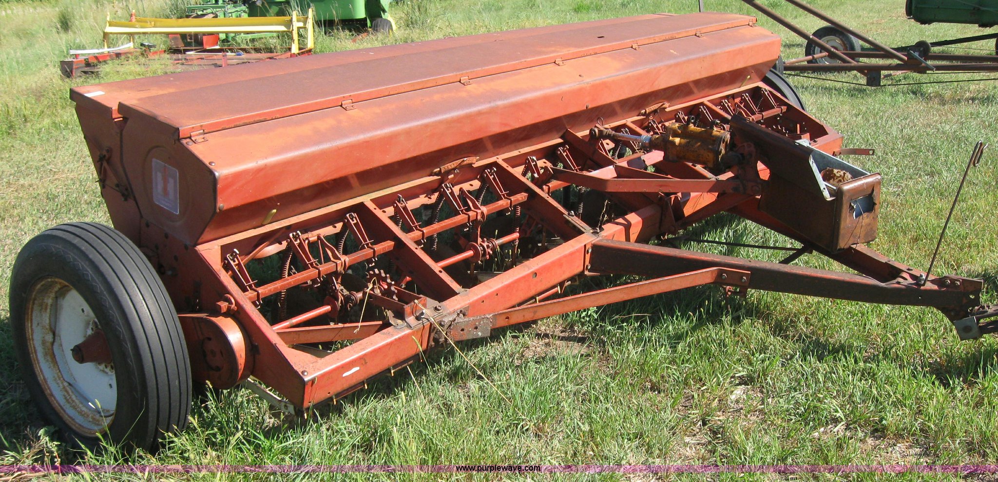Purple Wave is selling a used Grain Drill or Seeder in Kansas. This item is a International 10 grain drill with the following: 13', 10" spacings, No press wheels