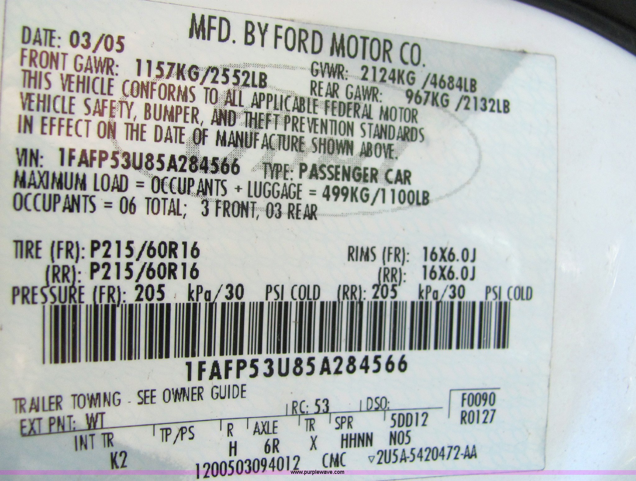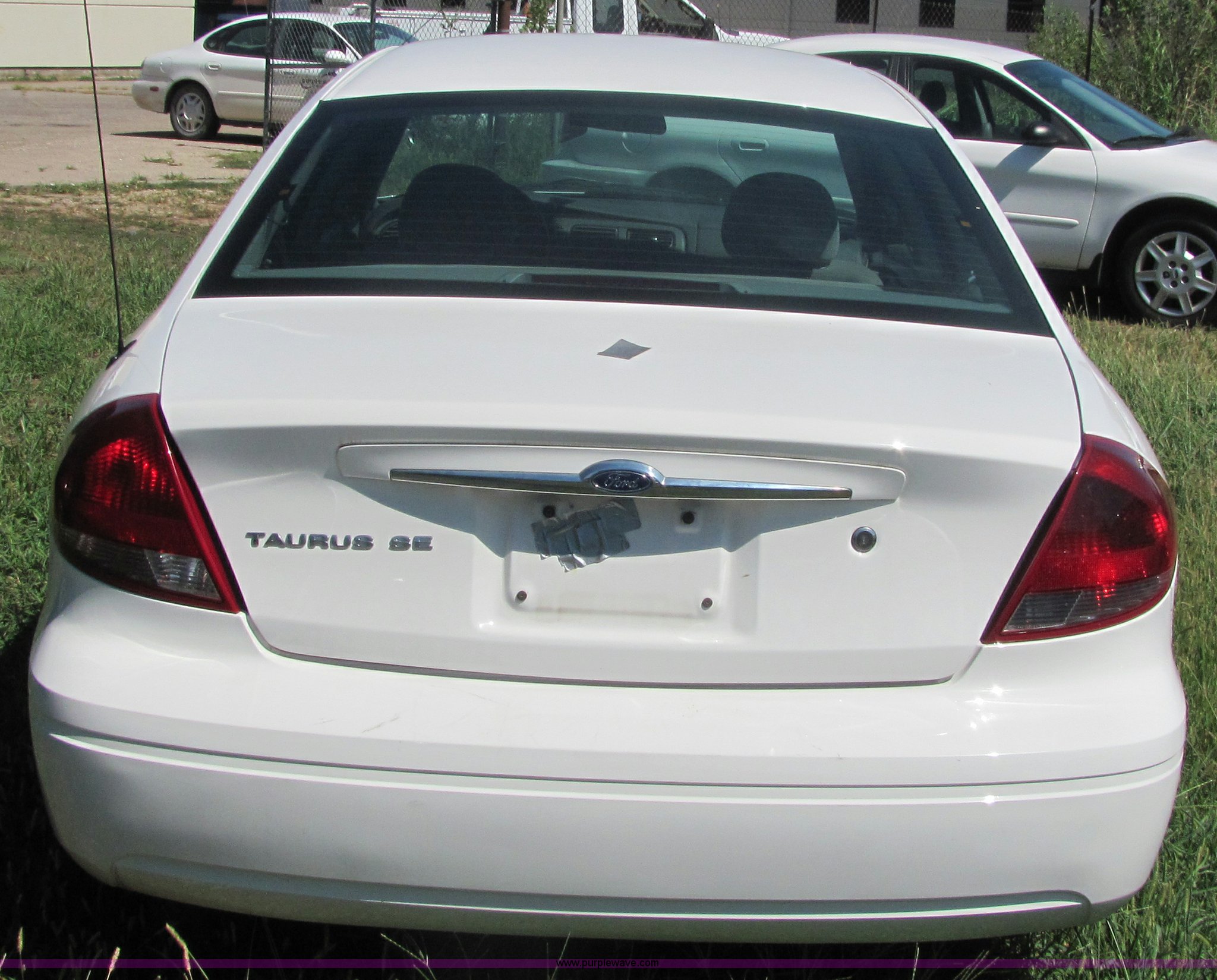 Purple Wave is selling a used Passenger Vehicle in Kansas. This item is a 2005 Ford Taurus SE with the following: 127,280 miles on odometer, 3.0L V6 EFI, Automatic transmission, AC and heat, Tilt steering wheel, Cruise control, AM/FM/cassette player, Power windows, locks, and mirrors, 215/60R16 tires, Hail damage, Holes in trunk, Paint scratched, ID# 000701