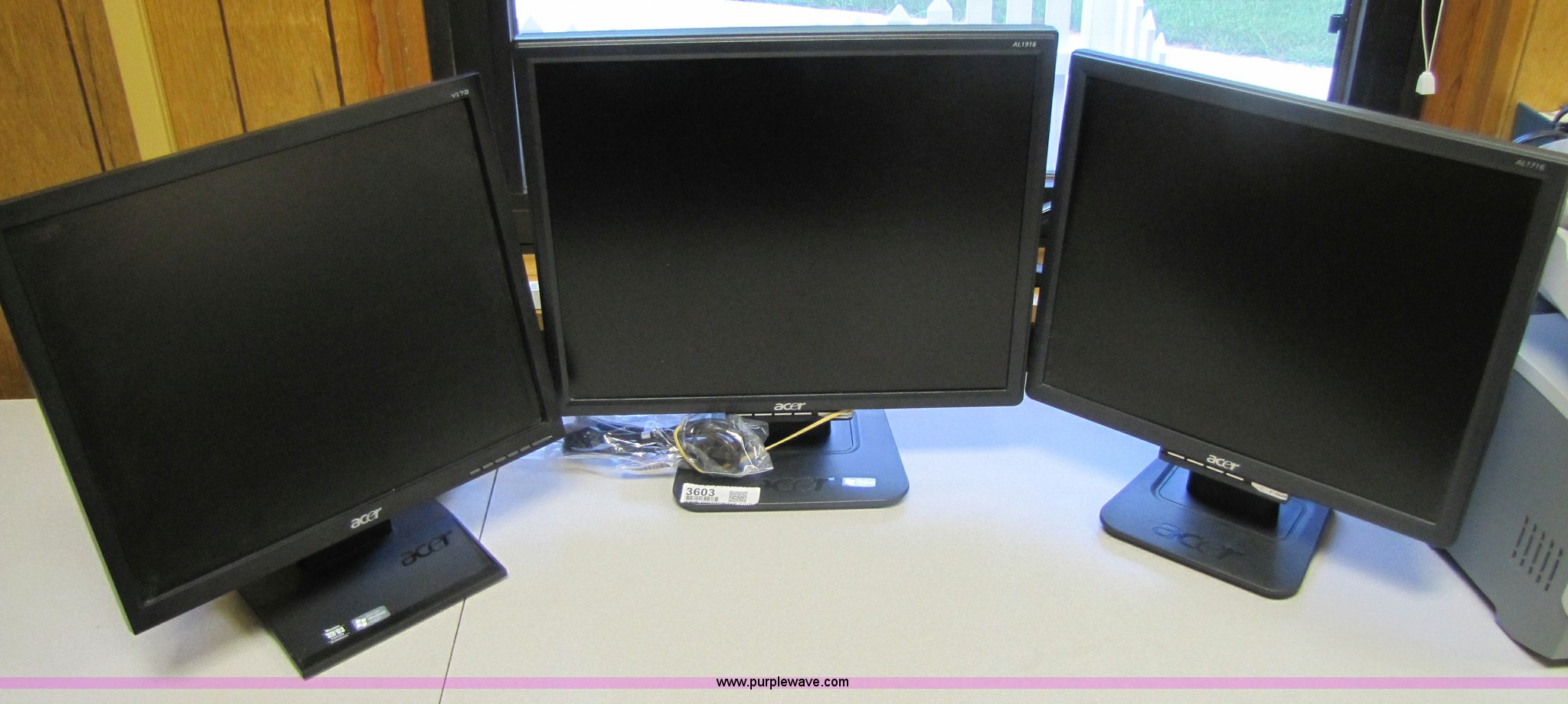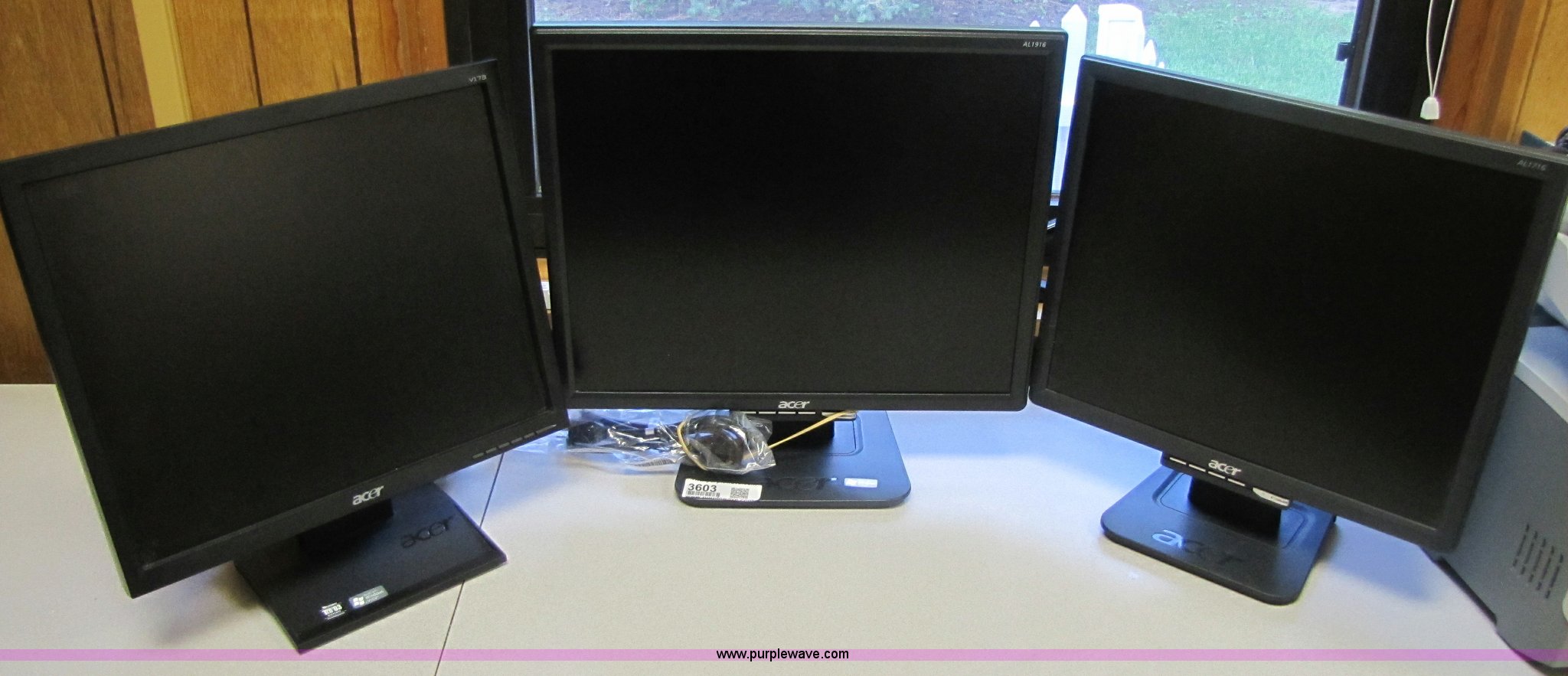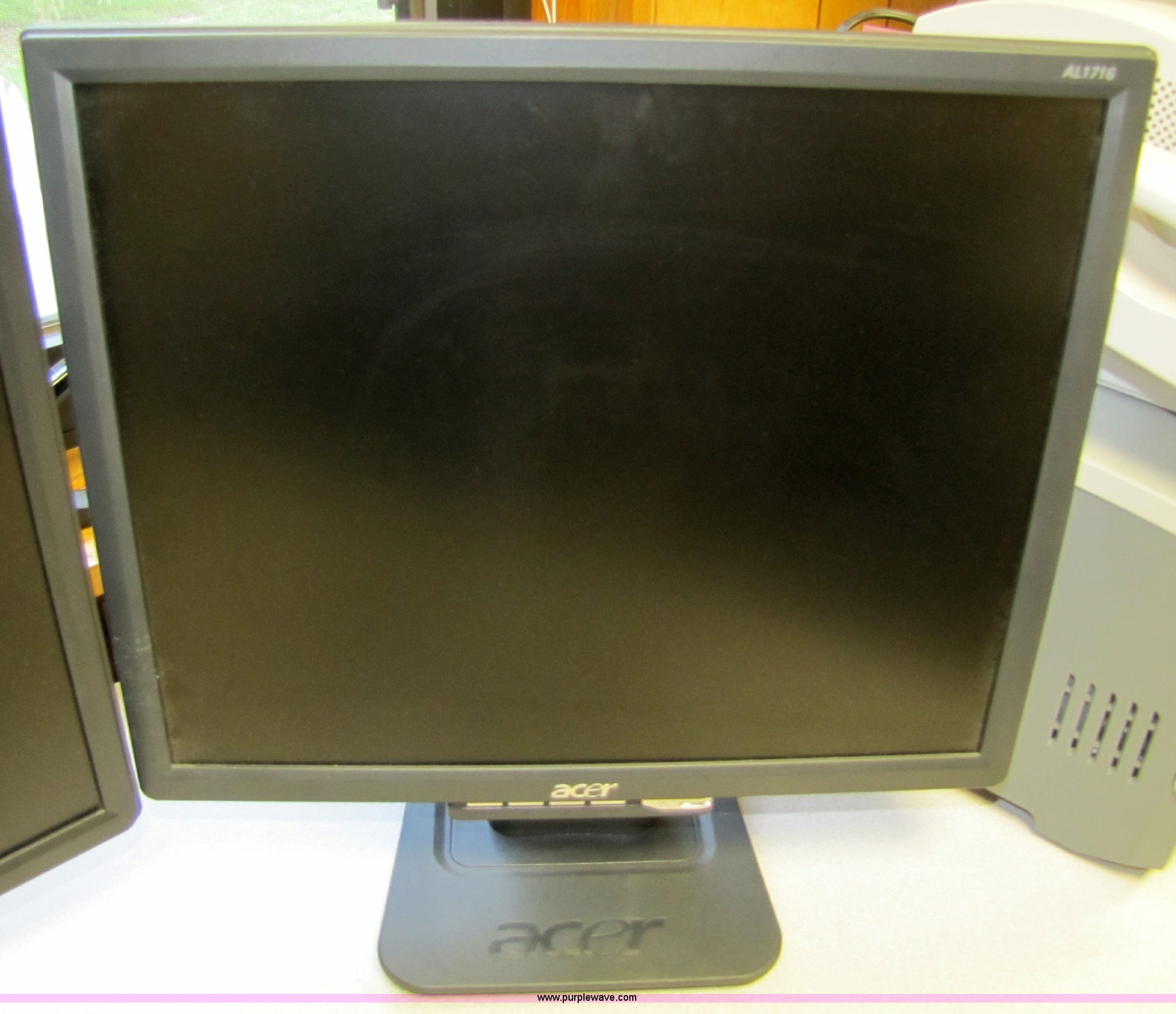 Purple Wave is selling a used Computers in Iowa. This item is a (3) Acer flatscreen monitors with the following: Two 17", One 19"
