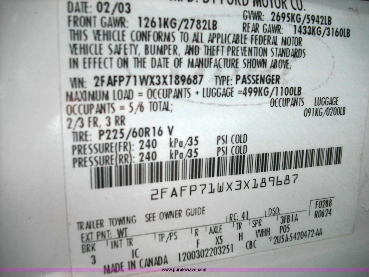 Purple Wave is selling a used Passenger Vehicle in Iowa. This item is a 2003 Ford Crown Victoria with the following: 152,386 miles on odometer, 4.6L V8 EFI, Automatic transmission, Heat and AC, Cruise and tilt, AM/FM, Power windows, locks and mirrors, (2) extra tires in back, Spot light, P225/60R15, Minor cosmetic damage from plugging hazard light holes