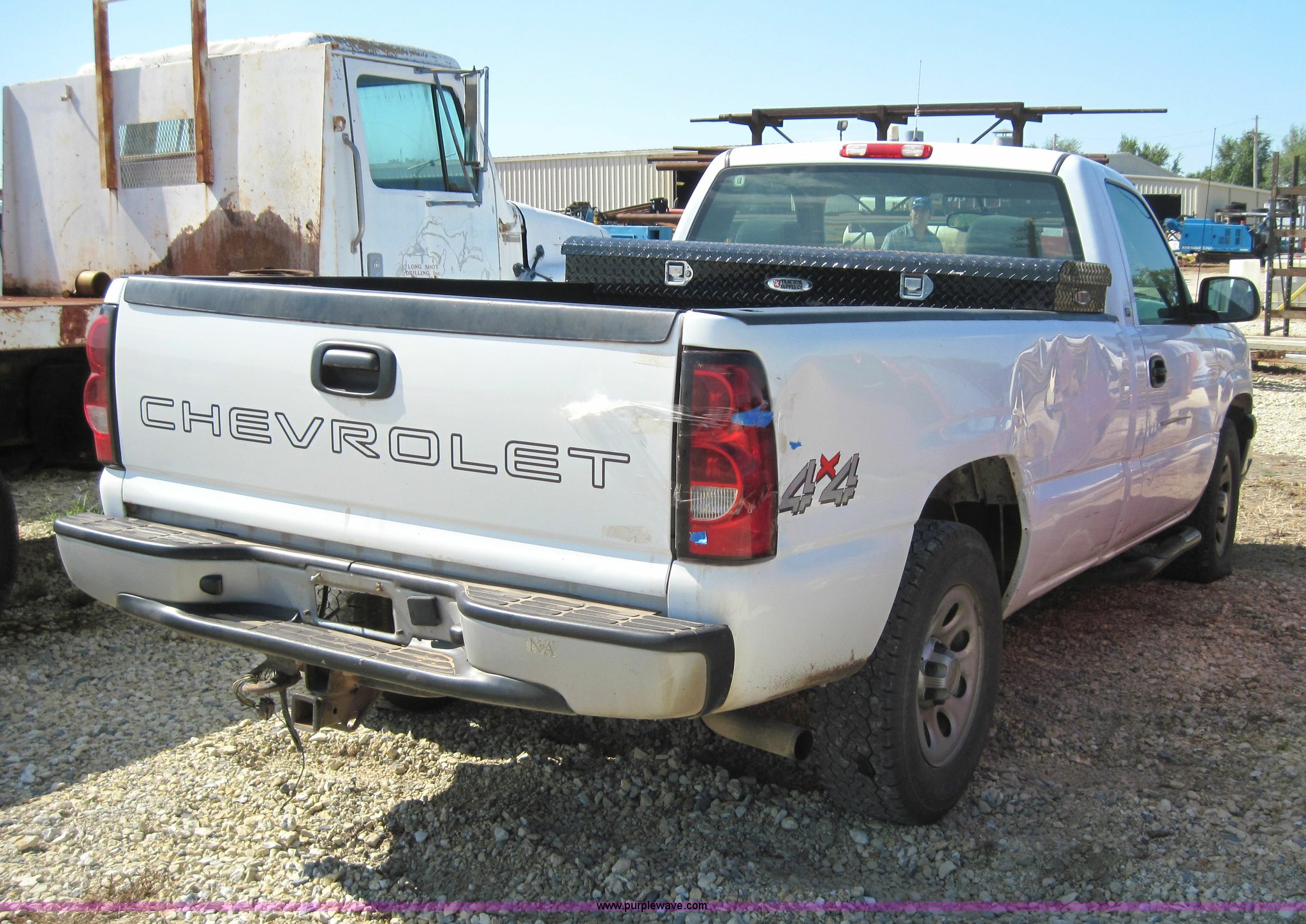 Purple Wave is selling a used 1/2 Ton Pickup or Van in Kansas. This item is a 2005 Chevrolet K1500 Silverado pickup truck with the following: 114,660 miles on odometer, 5.3L V8 SFI, Automatic transmission, Four wheel drive, AC and heat, Tilt steering wheel, AM/FM radio, Power windows and locks, Receiver hitch, Cross-bed tool box, 265/70R17 tires, Dent in passenger bed side