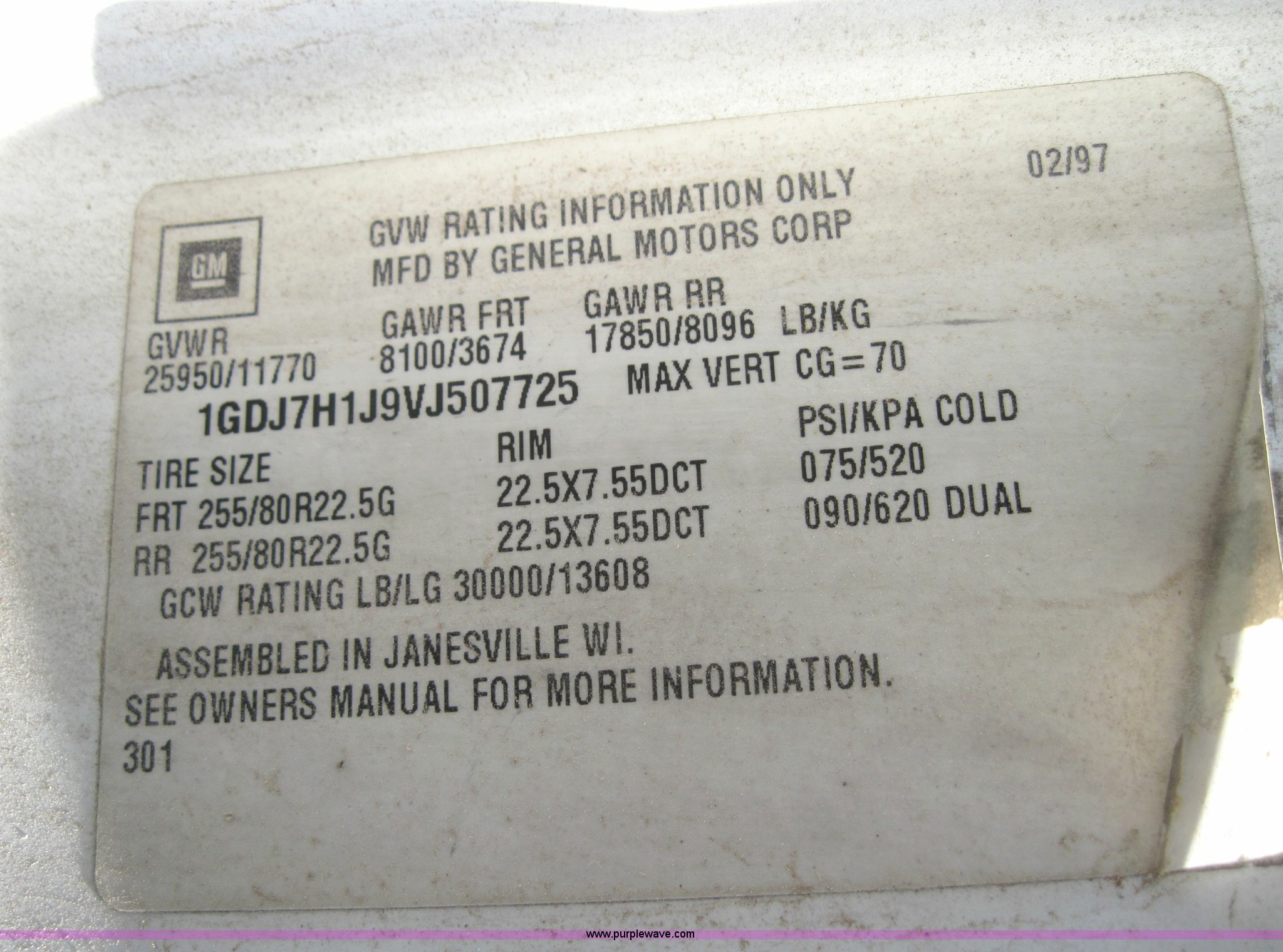 Purple Wave is selling a used Box Truck in Kansas. This item is a 1997 GMC C6500 truck with the following: 122,515 miles on odometer, Caterpillar 3116 6.6 L, (403 CID) 200hp diesel engine, Allison automatic transmission, AC and heat, Tilt steering wheel, AM/FM/cassette player, Power windows and locks, Utility bed, GVWR 25,950 lbs, Lift gate, Interior racking and storage, Dual rear exhaust