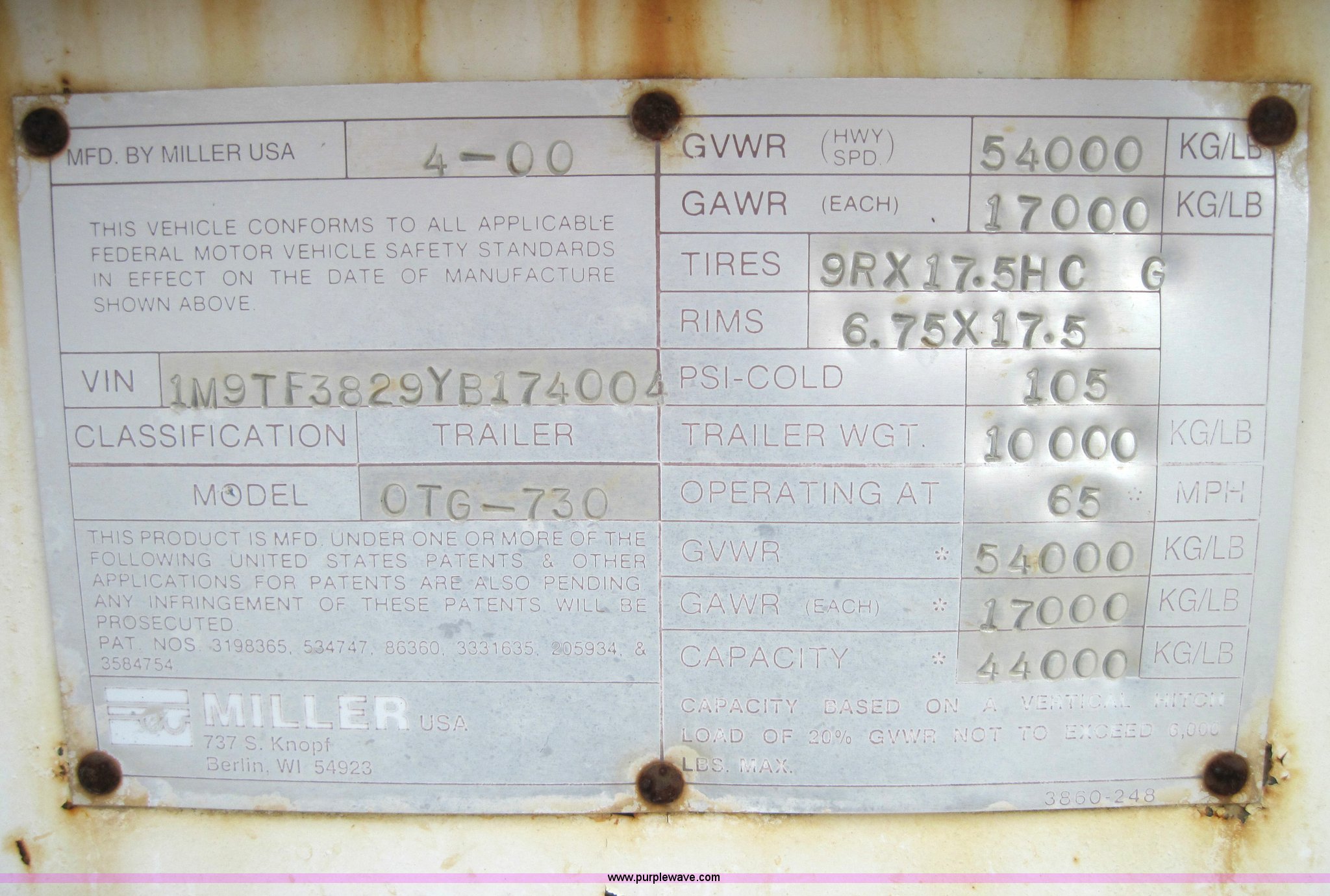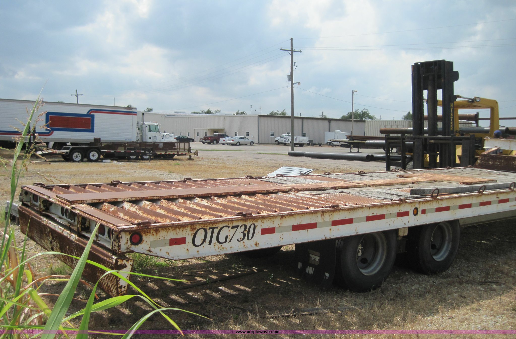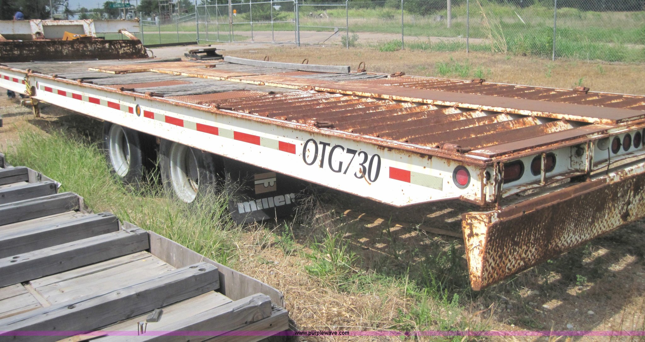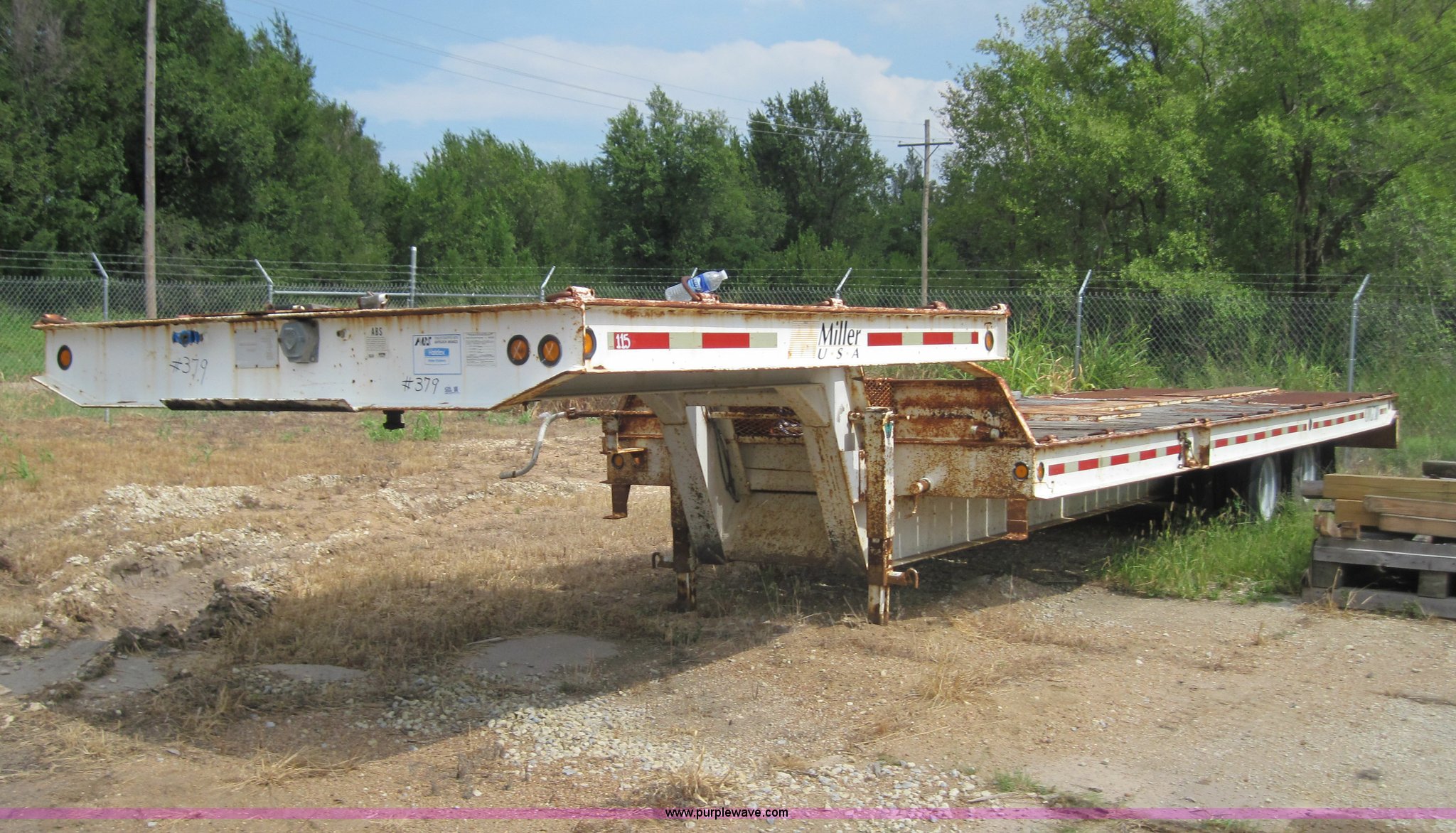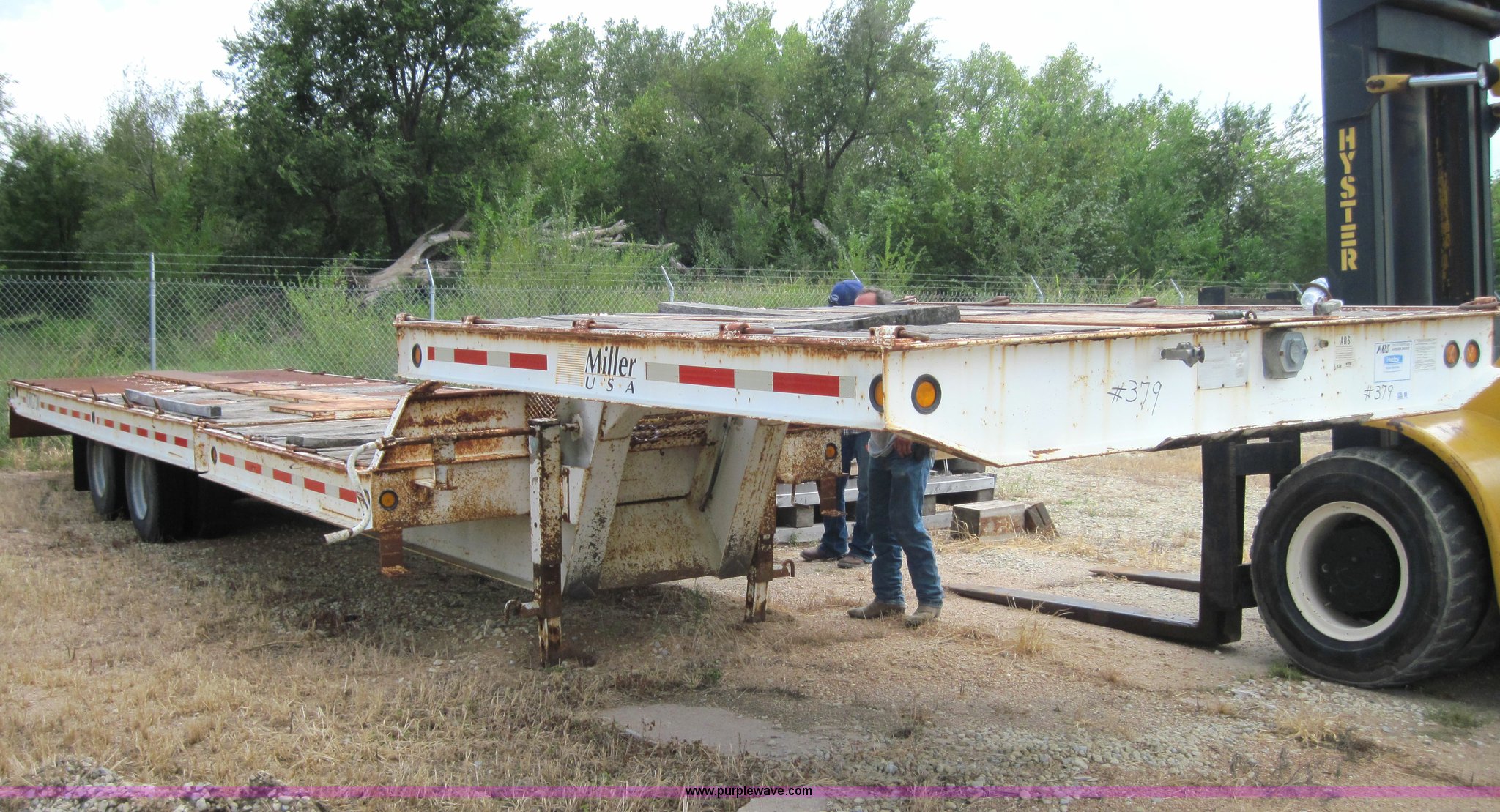 Purple Wave is selling a used Flat or Drop Deck Trailer in Kansas. This item is a 2000 Miller 40' tandem axle trailer with the following: 20' spring release tilt deck, 17.000 axles, 10R17.5 tires, GVWR 54,000 lbs