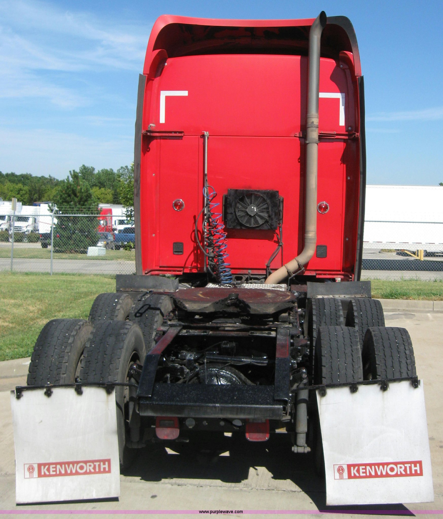 Purple Wave is selling a used Truck Tractor in Kansas. This item is a 2004 Kenworth T2000 semi truck with the following: 691,647 miles on odometer, 2182 hours on meter, Caterpillar C15 L6, 14.6L (893 CID) 475hp diesel engine, Eaton Fuller 10 speed manual transmission, Twin screw, Exterior visor, Block heater, Cab extender, Dual 150 gallon fuel tanks, Single rear stack, Aluminum deck plate, Proheat auxiliary heater unit, Stainless steel quarter fender, 60" double sleeper with storage, Dump valves, Air suspension, Air brakes, Jake brake, GVWR 50,000 lbs, GAWR front 12,000 lbs, GAWR intermediate 19,000 lbs, GAWR rear 19,000 lbs, 255" wheel base, 3.55 gear ratio, 275/80R22.5 tires, Aluminum wheels, AC and heat, Tilt steering wheel, Telescoping steering wheel, Cruise control, AM/FM/cassette player, Passenger daylight door, Air suspension seat, Air ride cab, Power windows and mirrors, Heated mirrors, Unit # 248