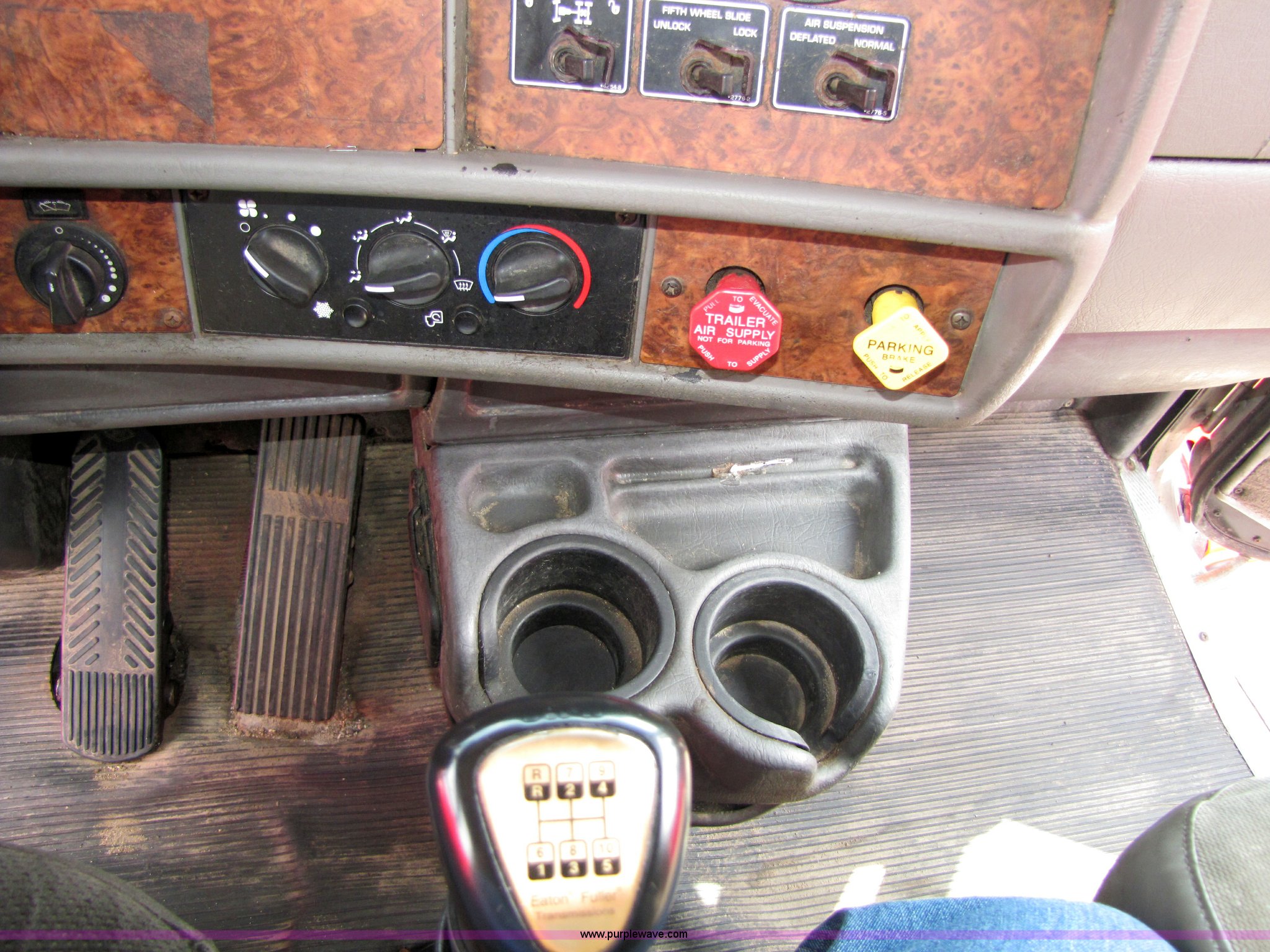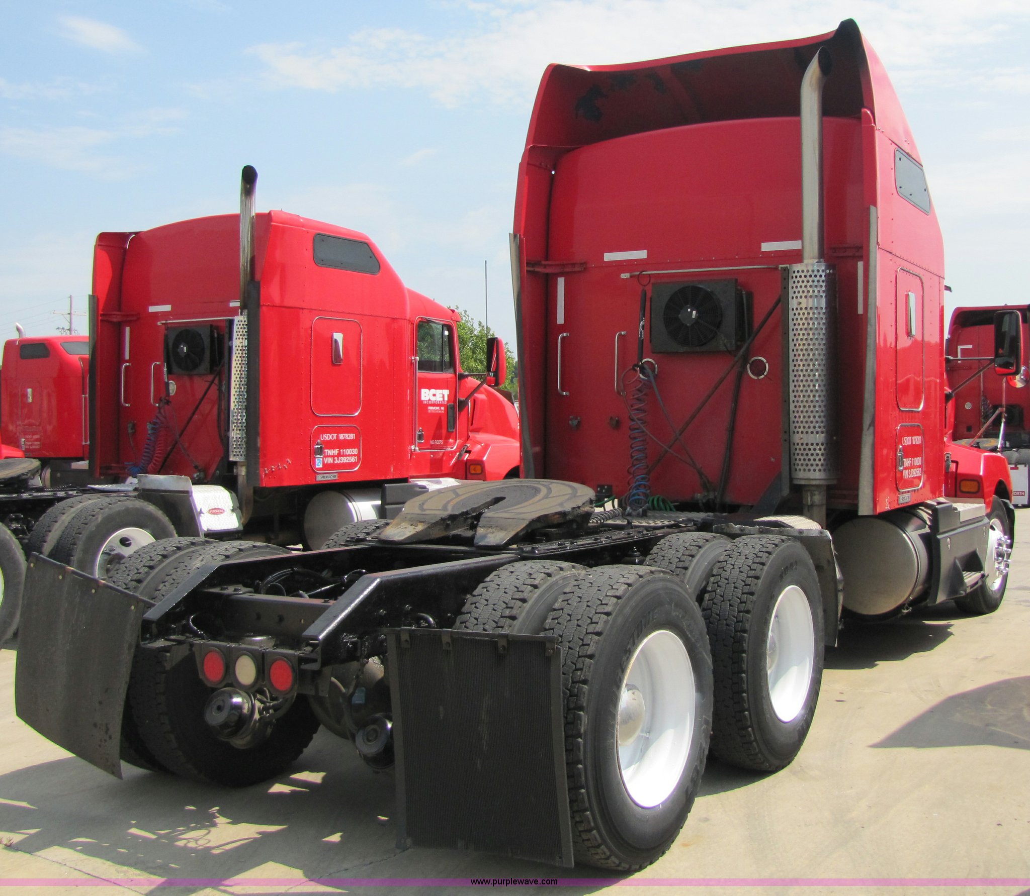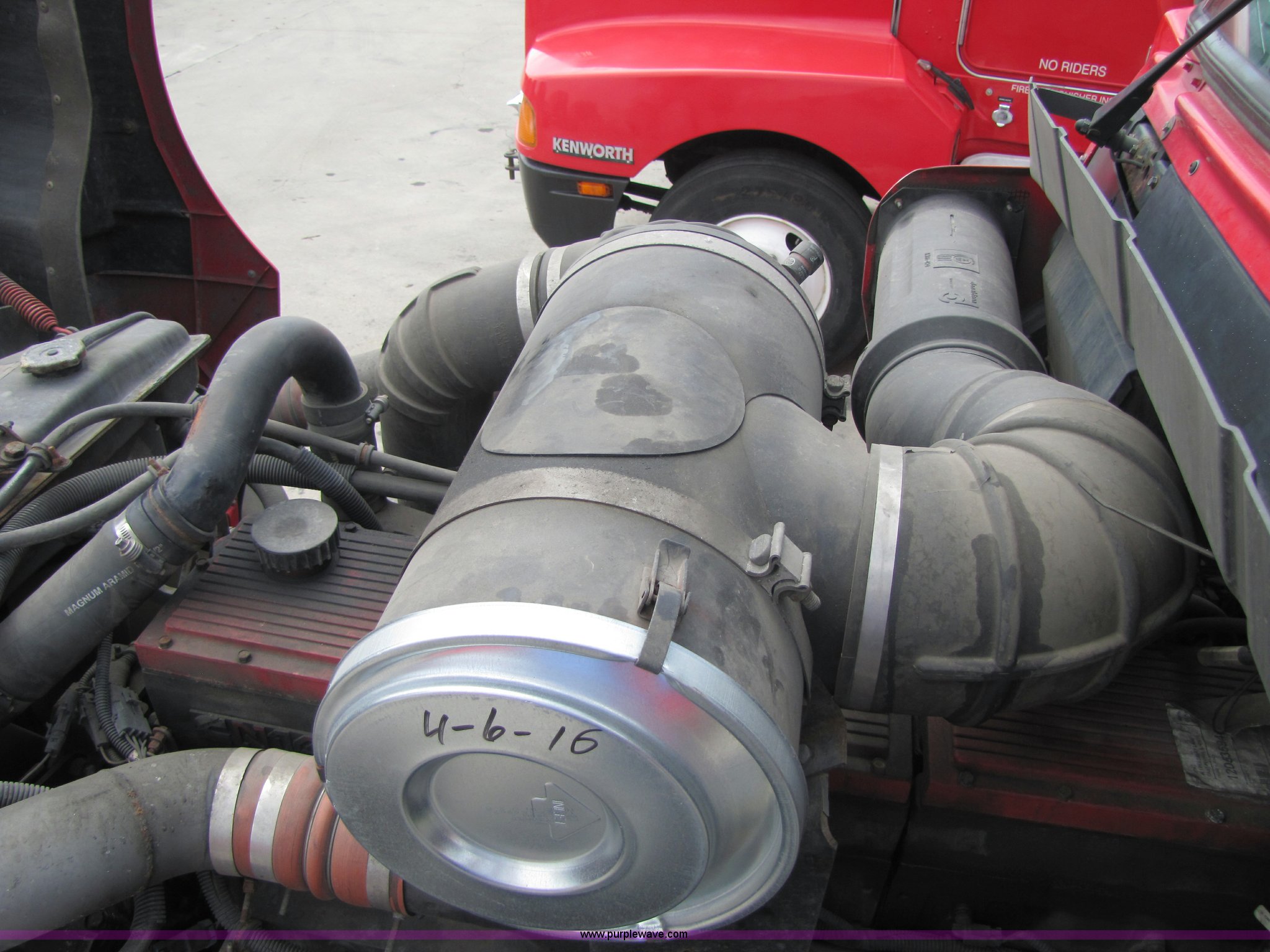 Purple Wave is selling a used Truck Tractor in Kansas. This item is a 2003 Kenworth Construct T600 semi truck with the following: 769,905 miles on odometer, Cummins N14-460ET L6, 14.0L (855 CID) 460hp diesel engine, Eaton fuller 10 speed transmission, Twin screw, Exterior visor, Block heater, Cab extender, Dual 135 gallon fuel tanks, Single rear stack, Aluminum deck plate, Chain hanger with tire chains, Stainless steel quarter fender, One plastic fender, Aero cab 84" x 60" double sleeper, Dump valves, Air suspension, Air brakes, Jake brake, Brake controller, GVWR 52,000 lbs, GAWR front 12,000 lbs, GAWR intermediate 20,000 lbs, GAWR rear 20,000 lbs, 3.55 gear ratio, 255" wheel base, 275/80R22.5 tires, Nut covers, Fifth wheel slide, 16,940 scale weight, Proheat auxiliary heater, AC and heat, Tilt steering wheel, Cruise control, AM/FM/cassette player, Passenger daylight door, Air suspension seat, Air ride cab, Power mirrors, Heated mirrors, Unit # 243