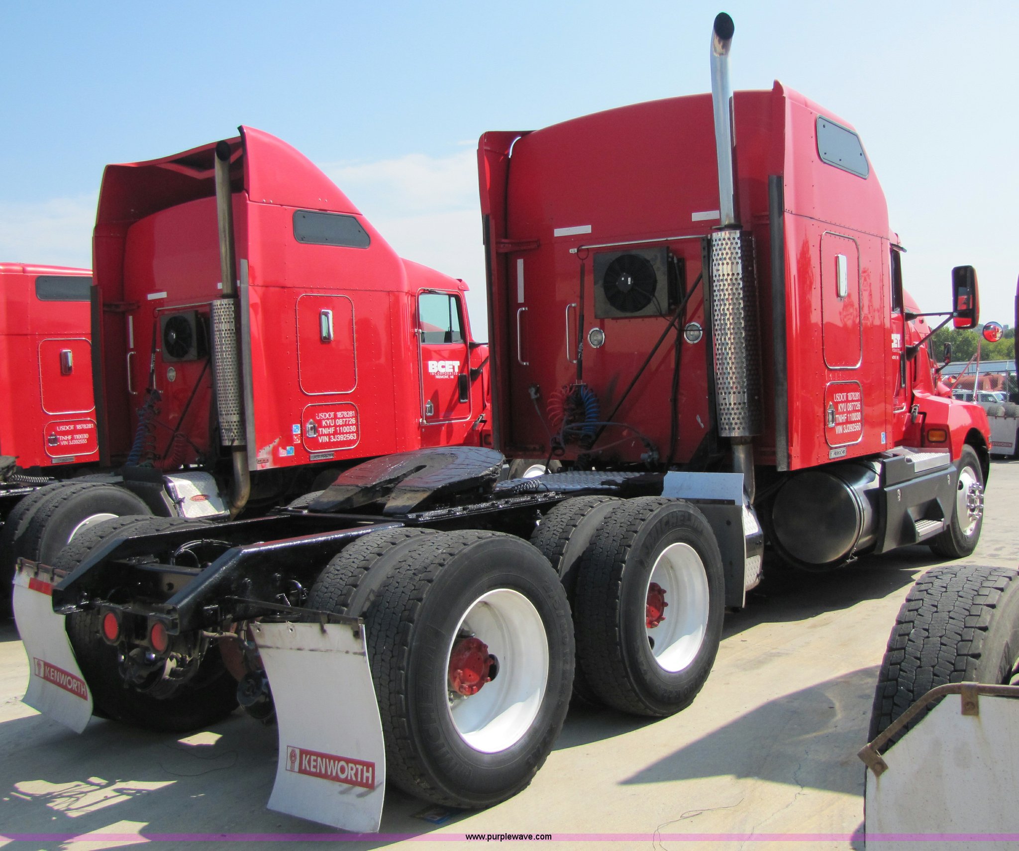 Purple Wave is selling a used Truck Tractor in Kansas. This item is a 2003 Kenworth Construct T600 semi truck with the following: 462,529 miles on odometer, Cummins N14-460E L6, 14.0L (855 CID) 460hp turbocharged diesel engine, Eaton Fuller 10 speed transmission, Twin screw, Exterior visor, Block heater, Cab extender, Dual 135 gallon fuel tanks, Single rear stack, Aluminum deck plate, Stainless steel quarter fender, Aero cab 84" x 60" double sleeper, Dump valves, Air suspension, Air brakes, Jake brake, Brake controller, GVWR 52,000 lbs, GAWR front 12,000 lbs, GAWR intermediate 20,000 lbs, GAWR rear 20,000 lbs, 3.55 gear ratio, 255" wheel base, 275/80R22.5 tires, Nut covers, Fifth wheel slide, 16,980 scale weight, Proheat auxiliary heater, AC and heat, Tilt steering wheel, Cruise control, Passenger daylight door, Air suspension seat, Air ride cab, Power mirrors, Heated mirrors, Unit # 241