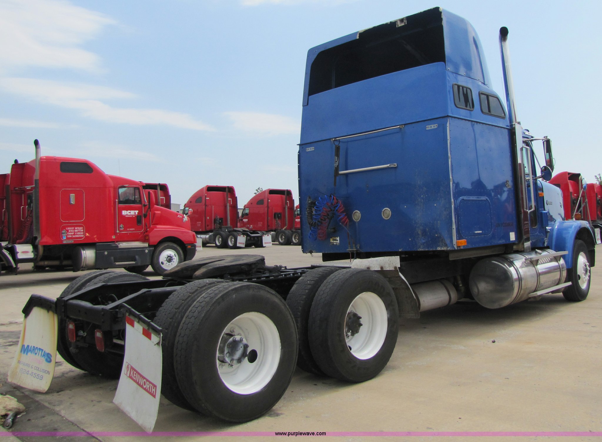 Purple Wave is selling a used Truck Tractor in Kansas. This item is a 1997 International Series 9300 semi truck with the following: 607,761 miles on odometer, Caterpillar 3406 L6, 14.6L (893CID) 435hp diesel engine, Eaton Fuller 10 speed manual transmission, Twin screw, Exterior visor, Chrome bumper, Block heater, Dual 149 gallon fuel tanks, Double front stacks, Aluminum deck plate, Stainless steel quarter fenders, Pro Sleeper 60" single sleeper with storage, Air suspension, Air brakes, Jake brake, Brake controller, GVWR 52,000 lbs, GAWR front 12,000 lbs, GAWR intermediate 20,000 lbs, GAWR rear 20,000 lbs, 242" wheel base, 275/80R22.5 tires, Fifth wheel slide, AC and heat, Tilt steering wheel, Telescoping steering wheel, Cruise control, AM/FM/cassette player, Passenger daylight door, Air suspension seat, Air ride cab, Power mirrors, Heated mirrors, Unit # 196