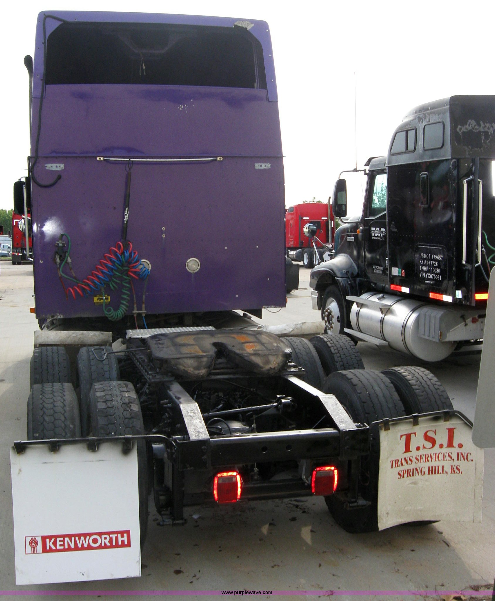 Purple Wave is selling a used Truck Tractor in Kansas. This item is a 1997 International Series 9300 semi truck with the following: 524,861 miles on odometer, Caterpillar 3406 L6, 14.6L (893CID) 435hp diesel engine, Eaton Fuller 10 speed manual transmission, Twin screw, Exterior visor, Chrome bumper, Block heater, Dual 149 gallon fuel tanks, Dual front stacks, Aluminum deck plate, Stainless steel quarter fenders, Pro Sleeper 90" x 60" single sleeper with storage, Air suspension, Air brakes, Jake brake, Brake controller, GVWR 52,000 lbs, GAWR front 12,000 lbs, GAWR intermediate 20,000 lbs, GAWR rear 20,000 lbs, 242" wheel base, 295/75R22.5 tires, Fifth wheel slide, AC and heat, Tilt steering wheel, Telescoping steering wheel, Cruise control, Passenger daylight door, Air suspension seat, Air ride cab, Unit # 199