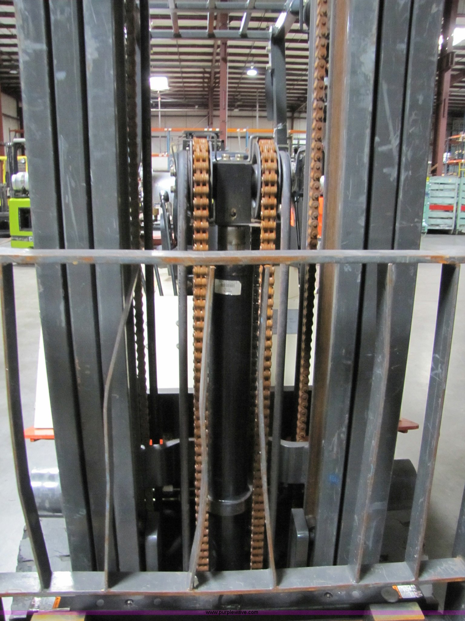 Purple Wave is selling a used Cushion Tire or Pneumatic Forklift in Kansas. This item is a 2004 Nissan 50 forklift with the following: 6973 hours on meter, Model CPJ02A25PV, Propane engine, 217" max lift height, 3,725 lbs capacity, 8,787 lbs. base operating weight, Mast# N3F550