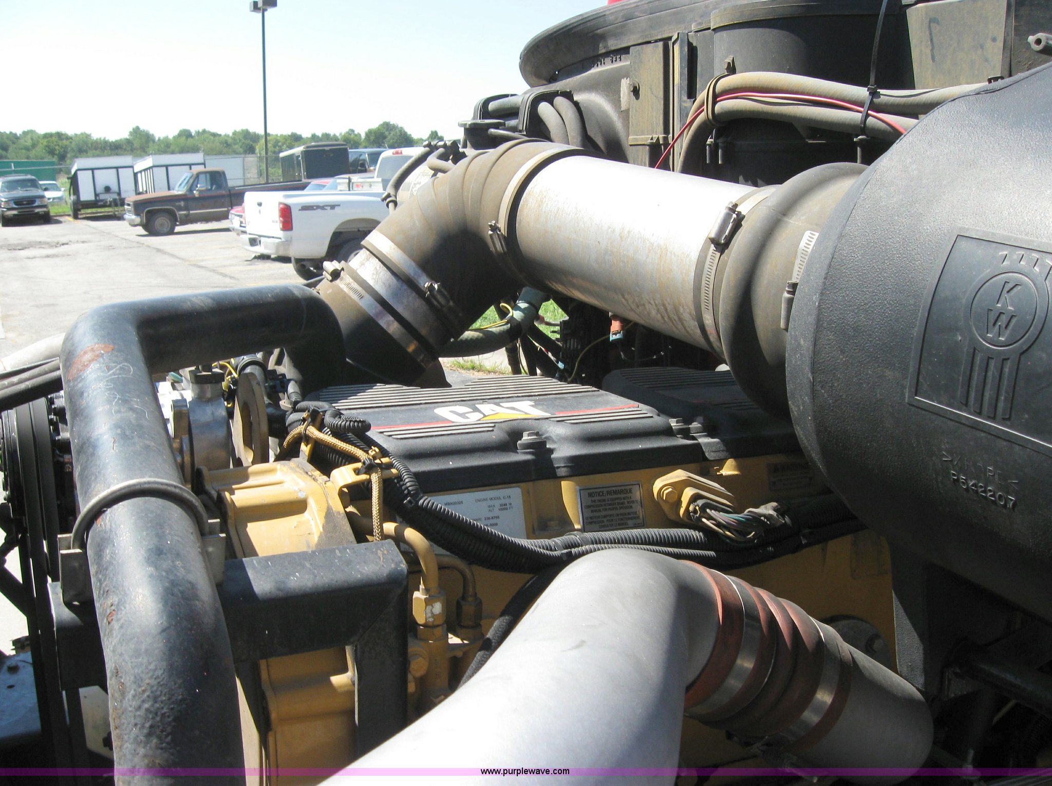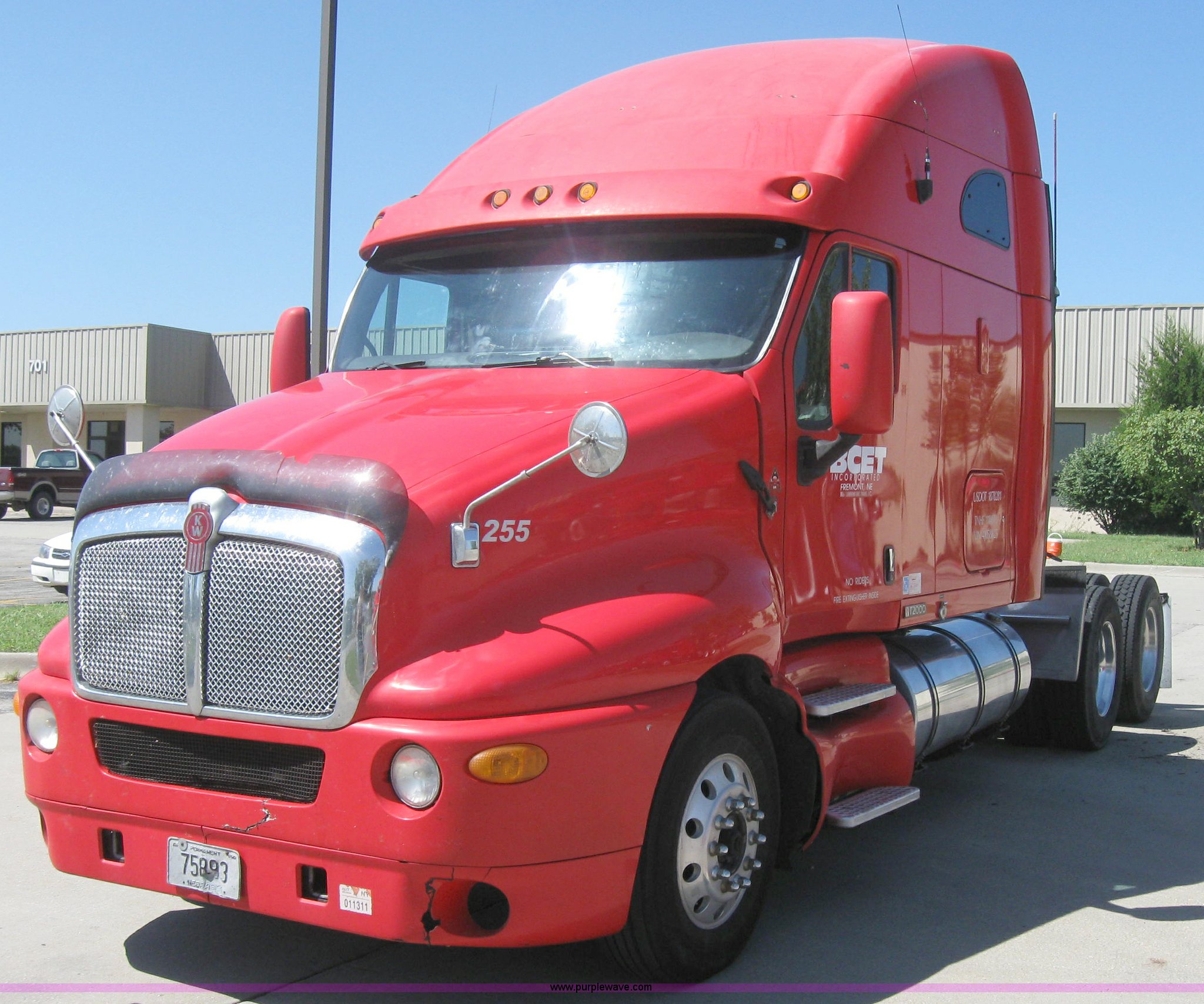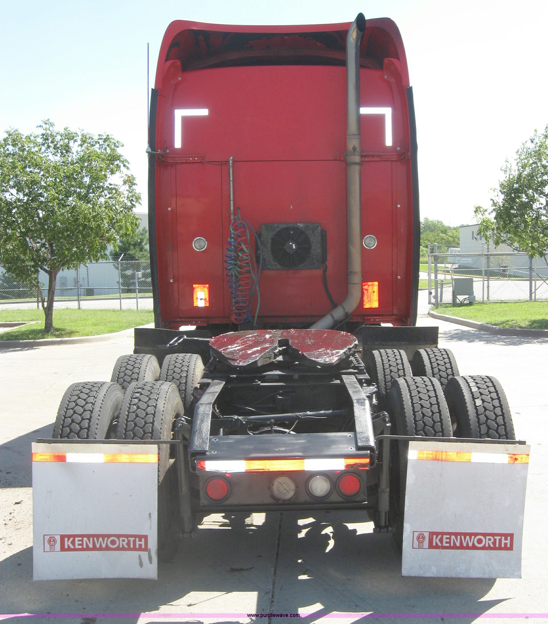 Purple Wave is selling a used Truck Tractor in Kansas. This item is a 2004 Kenworth T2000 semi truck with the following: 815,396 miles on odometer, Caterpillar C15 L6, 14.6L (893 CID) 475hp diesel engine, Eaton Fuller 10 speed manual transmission, Exterior visor, Block heater, Dual 150 gallon fuel tanks, Single rear stack, Aluminum deck plate, Stainless steel quarter fender, Double sleeper with storage, Proheat auxiliary heater, Dump valves, Air suspension, Air brakes, Jake brake, Brake controller, Fifth wheel slide, Brake controller, GVWR 50,000 lbs, GAWR front 12,000 lbs, GAWR intermediate 19,000 lbs, GAWR rear 19,000 lbs, Scale weight 17,540 lbs, 3.55 gear ratio, 295/75R22.5 tires, Nut covers, Aluminum wheels, AC and heat, AM/FM/CD player, Tilt steering wheel, Passenger daylight door, Air suspension seat, Air ride cab, Power windows and mirrors, Heated mirrors, Unit # 255