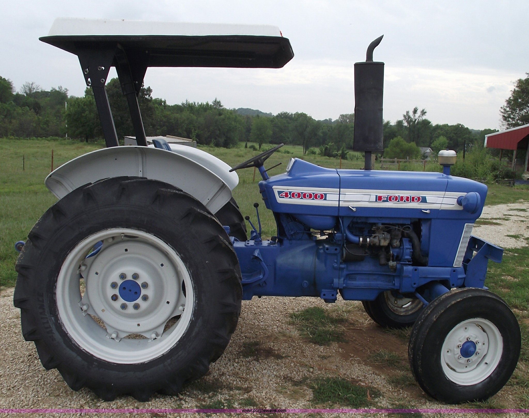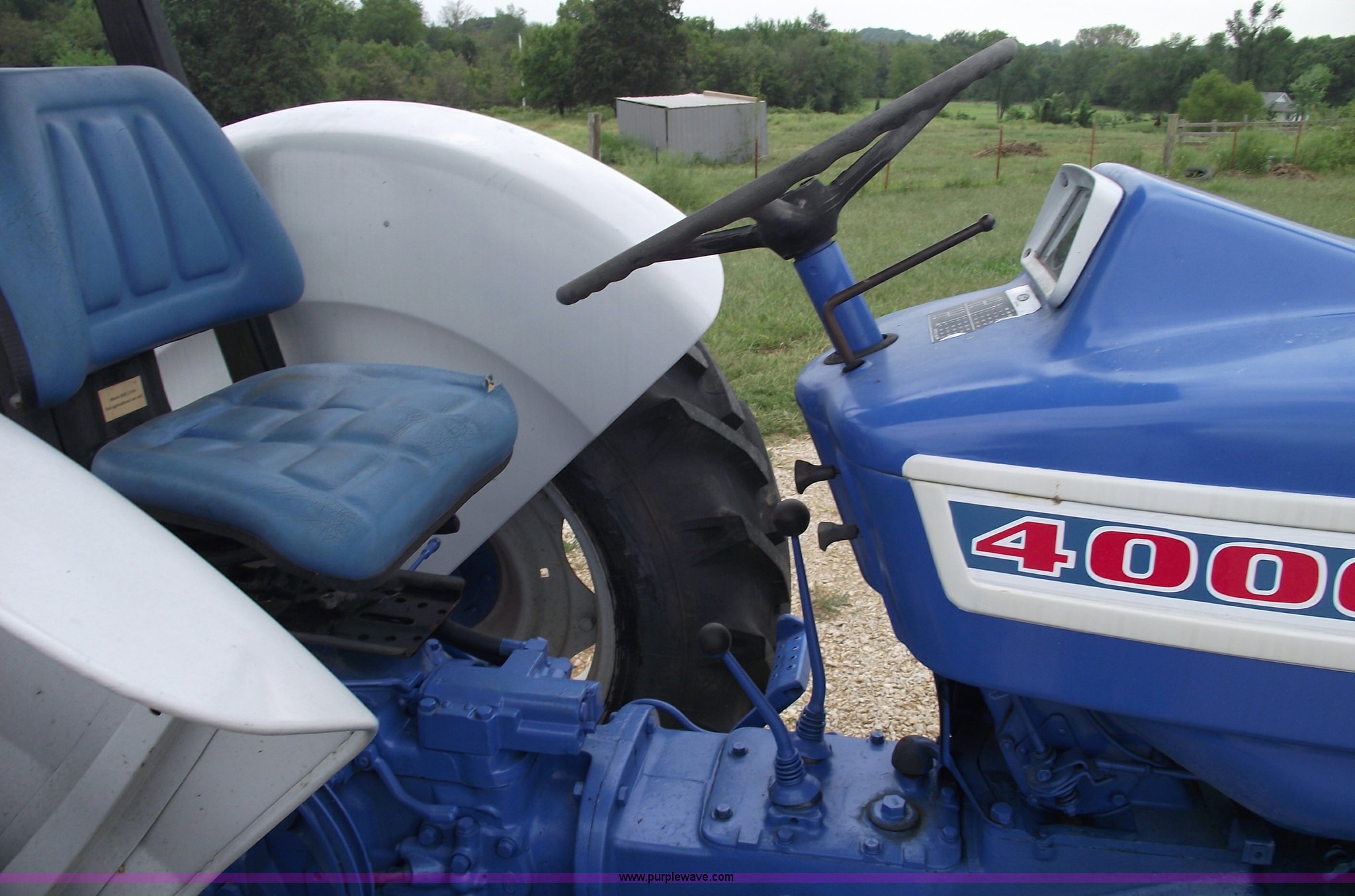 Purple Wave is selling a used Tractor in Missouri. This item is a 1965 Ford 4000 tractor with the following: Gas engine, Eight forward and two reverse gears, Two hydraulic remotes, Three point, Draw bar, 7.50x16 front tires, 14.9x3 rear tires, Recently replaced, ROPS and canopy, Front bumper, Restored and rebuilt in 2006, Serial C105700581