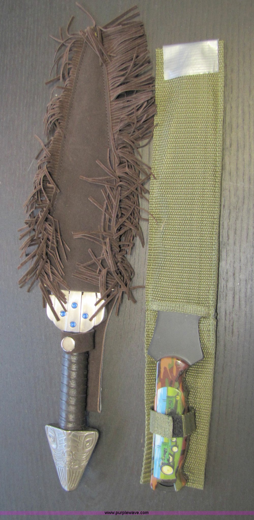 Purple Wave is selling a used All Other Household Items in Nevada. This item is a 2 Knives with the following: 2 Knives. - 15" blade. - 12" blade. - 19" blade. Purple Wave Sierra. 5853 S Carson Street. Carson City, NV 89701