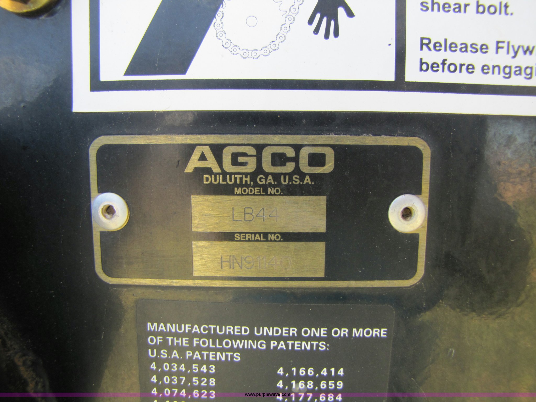 Purple Wave is selling a used Square Baler in Texas. This item is a 2004 Challenger LB44 4x4 big square baler with the following: Approx. 39,000 bales, Up to 108" bale length, Big 1000 PTO, Fieldstar monitor, Six double knot knotters, 24 ball twine storage, 28Lx26 16 ply turf tires, 4.8x8.0 pickup gauge wheels, Work lights, Road lights, 89" pickup width, Hydraulic pickup lift, Knotter fan, Autolube system, 12 volt electrical system, Serial HN91140