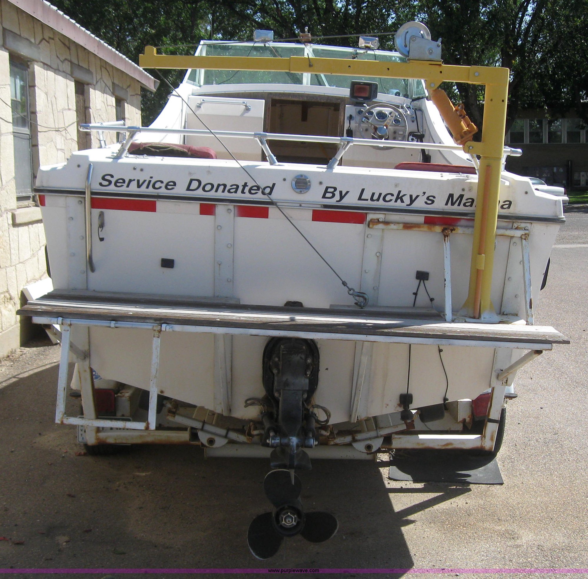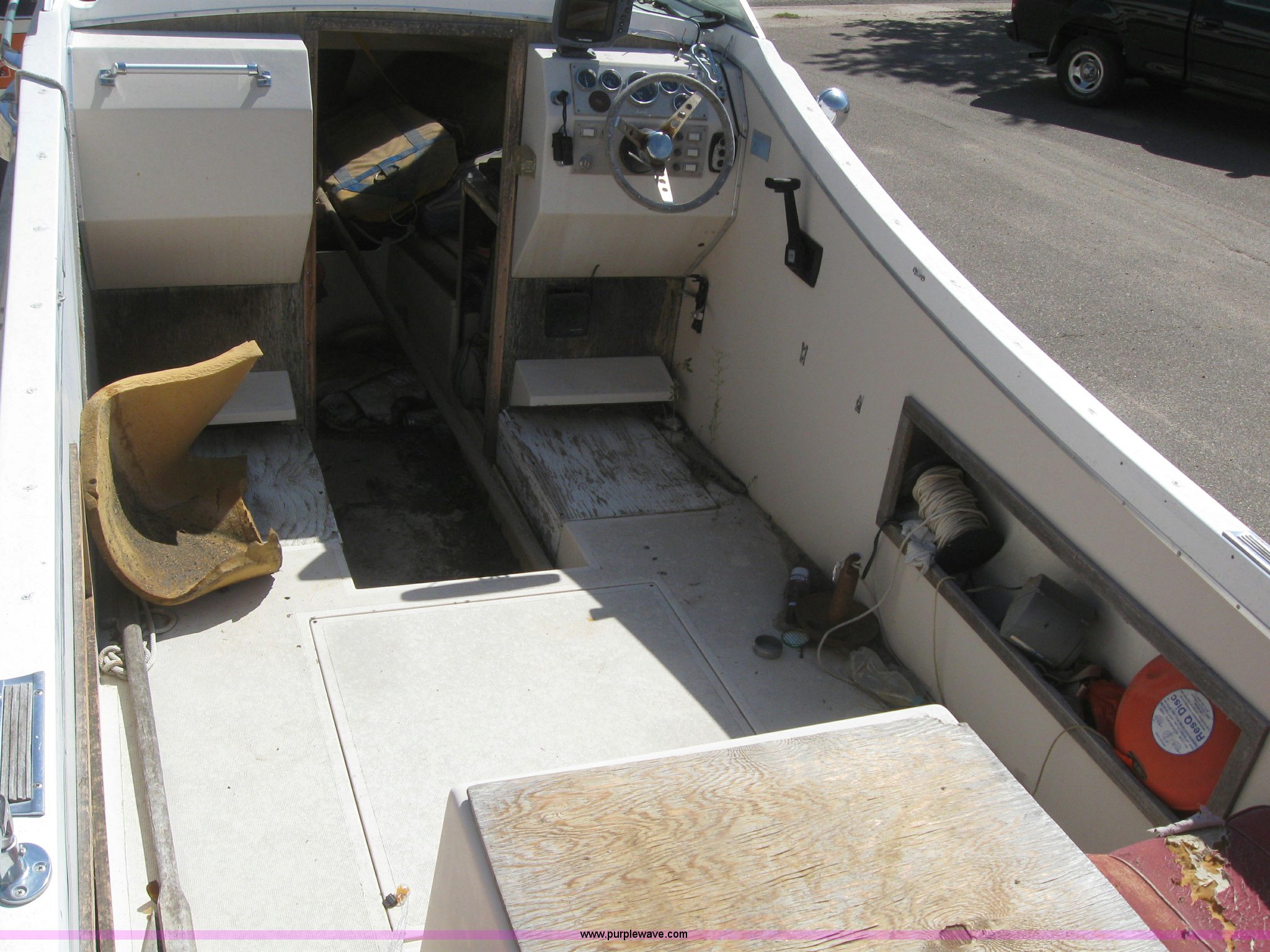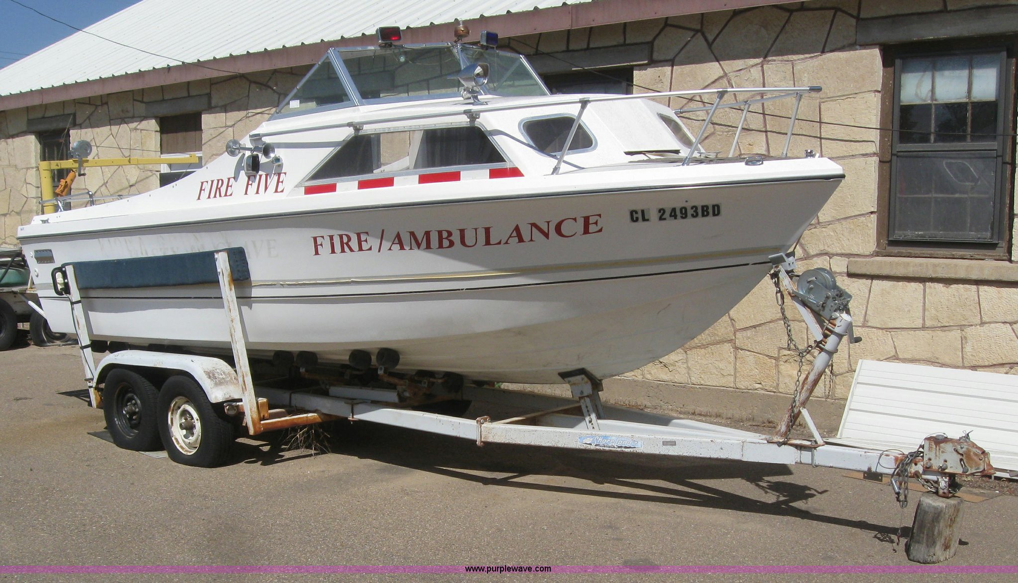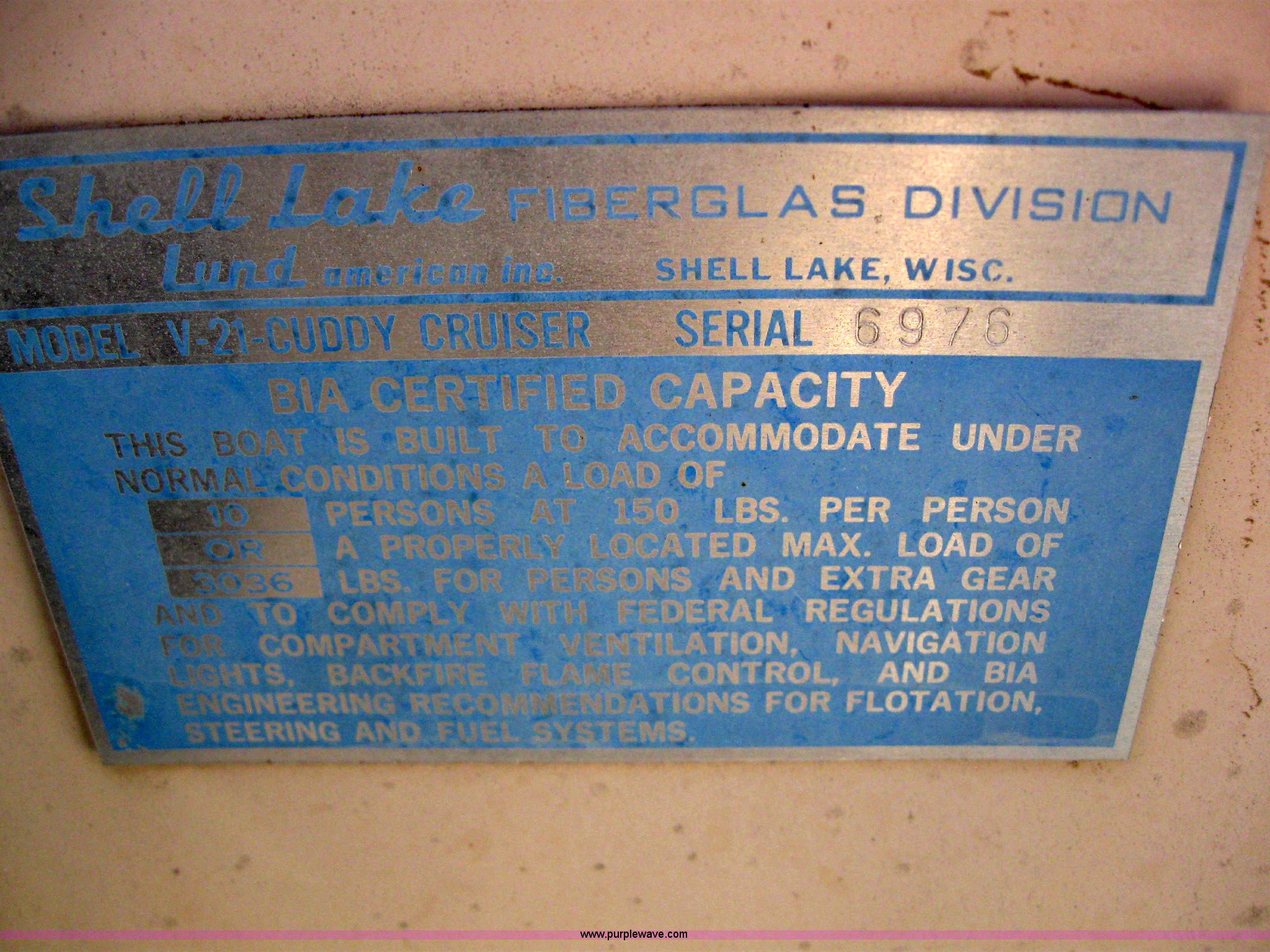 Purple Wave is selling a used Boat in Colorado. This item is a Shell Lake boat and trailer with the following: Model V-21-Caddy Cruiser, 10 person or 3,036lbs capacity, Mercruiser 188 hp engine, Winch, Freeze plug out in motor, Has not ran in four years, 2002 Shore Landr double axle trailer, 2" ball, P215/75R14 tires, VIN ID45001698CO