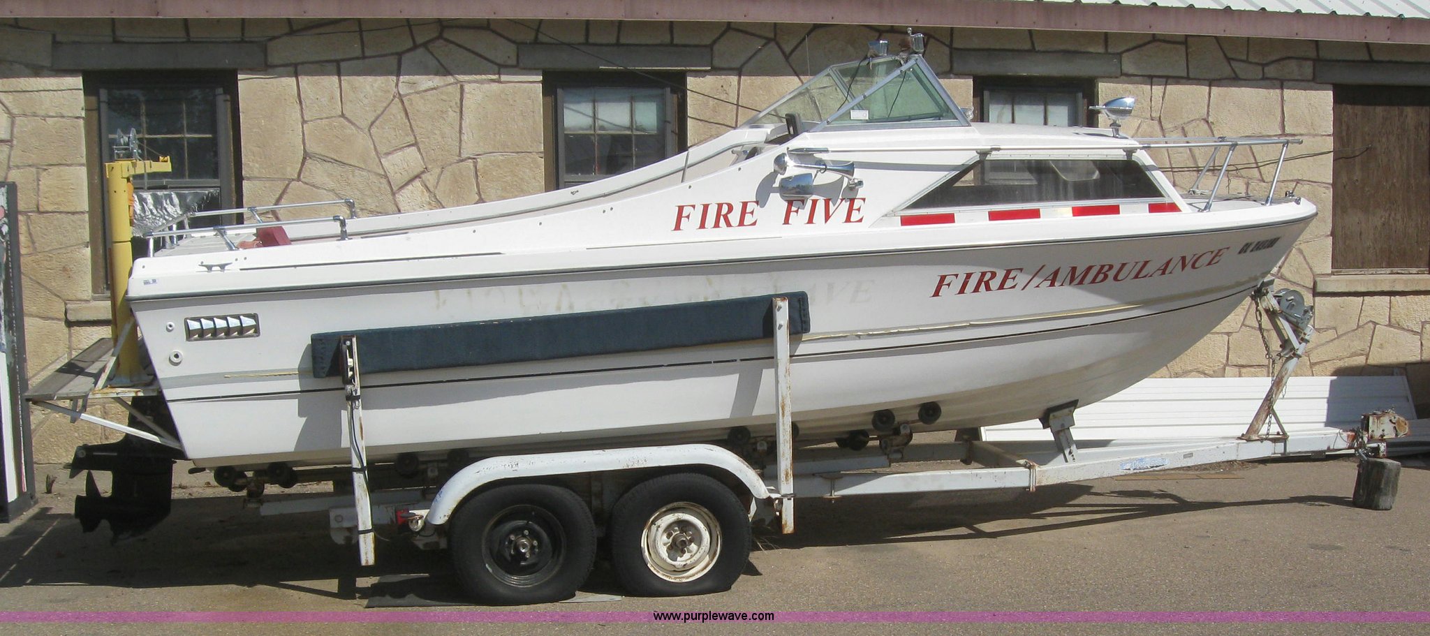 Shell Lake boat and trailer. Model V-21-Caddy Cruiser, 10 person or 3,036lbs capacity, Mercruiser 188 hp engine, Winch, Freeze plug out in motor, Has not ran in four years, 2002 Shore Landr double axle trailer, 2" ball, P215/75R14 tires, VIN ID45001698CO. Title distribution may be delayed up to 14 days from verification of funds. Kiowa County Fire Department. 1305 Golf. Eads, CO 81036