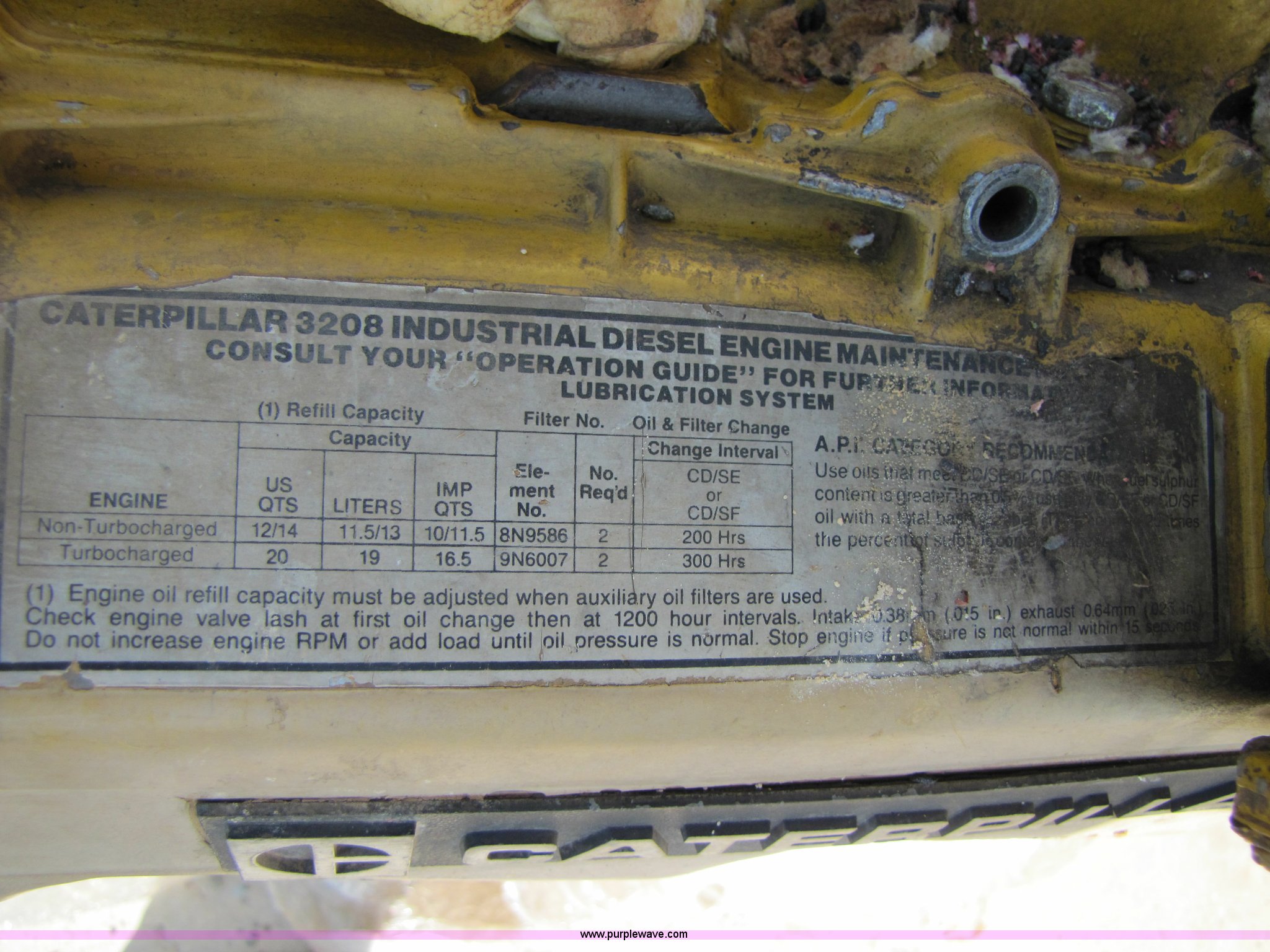 Purple Wave is selling a used Automotive Parts or Acces. in Oklahoma. This item is a Rebuilt Caterpillar 3208 V8 250hp diesel engine with the following: Rebuilt last winter, New gaskets included, Injector pump set up for 2100 rpm, Serial 03Z07147