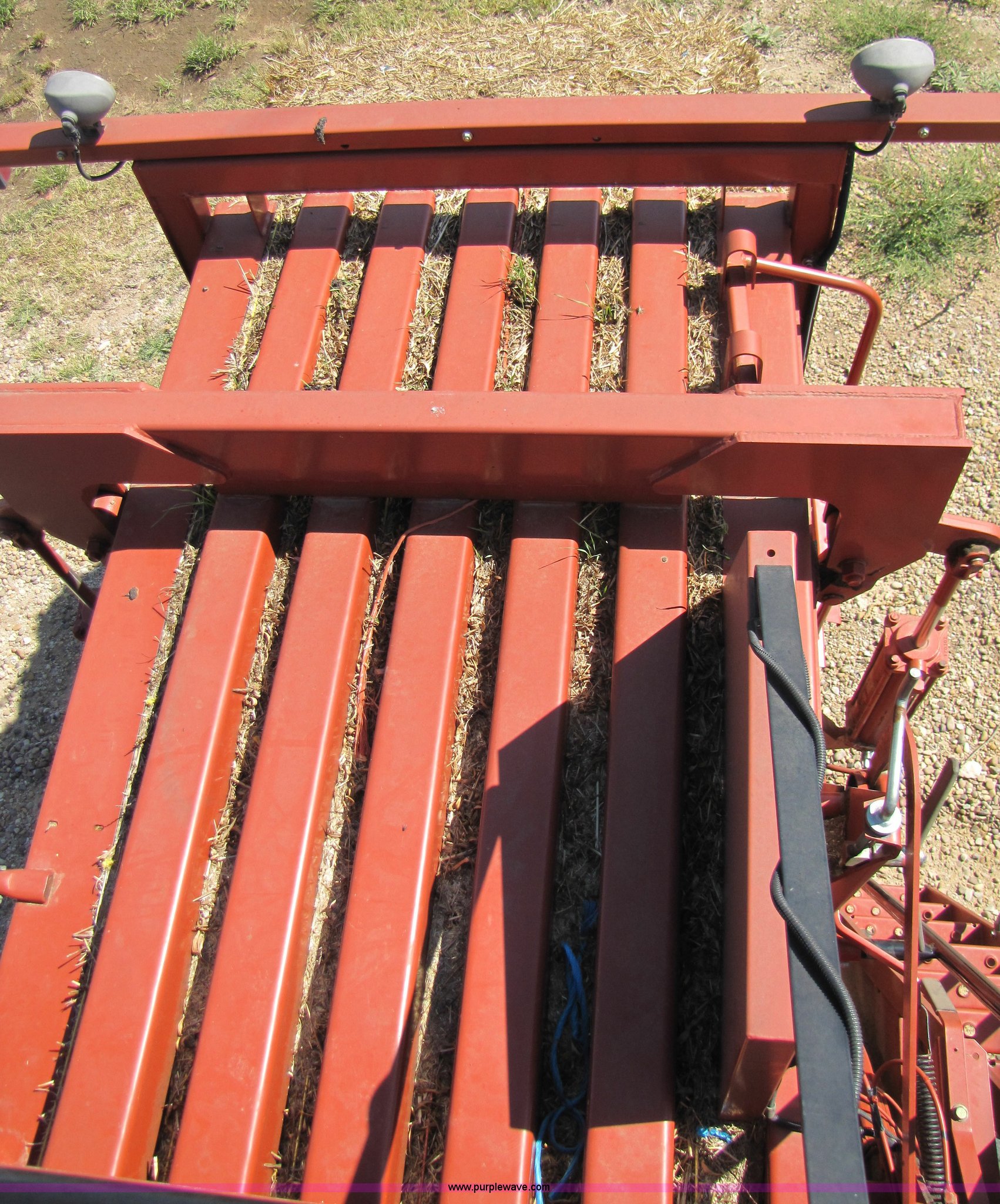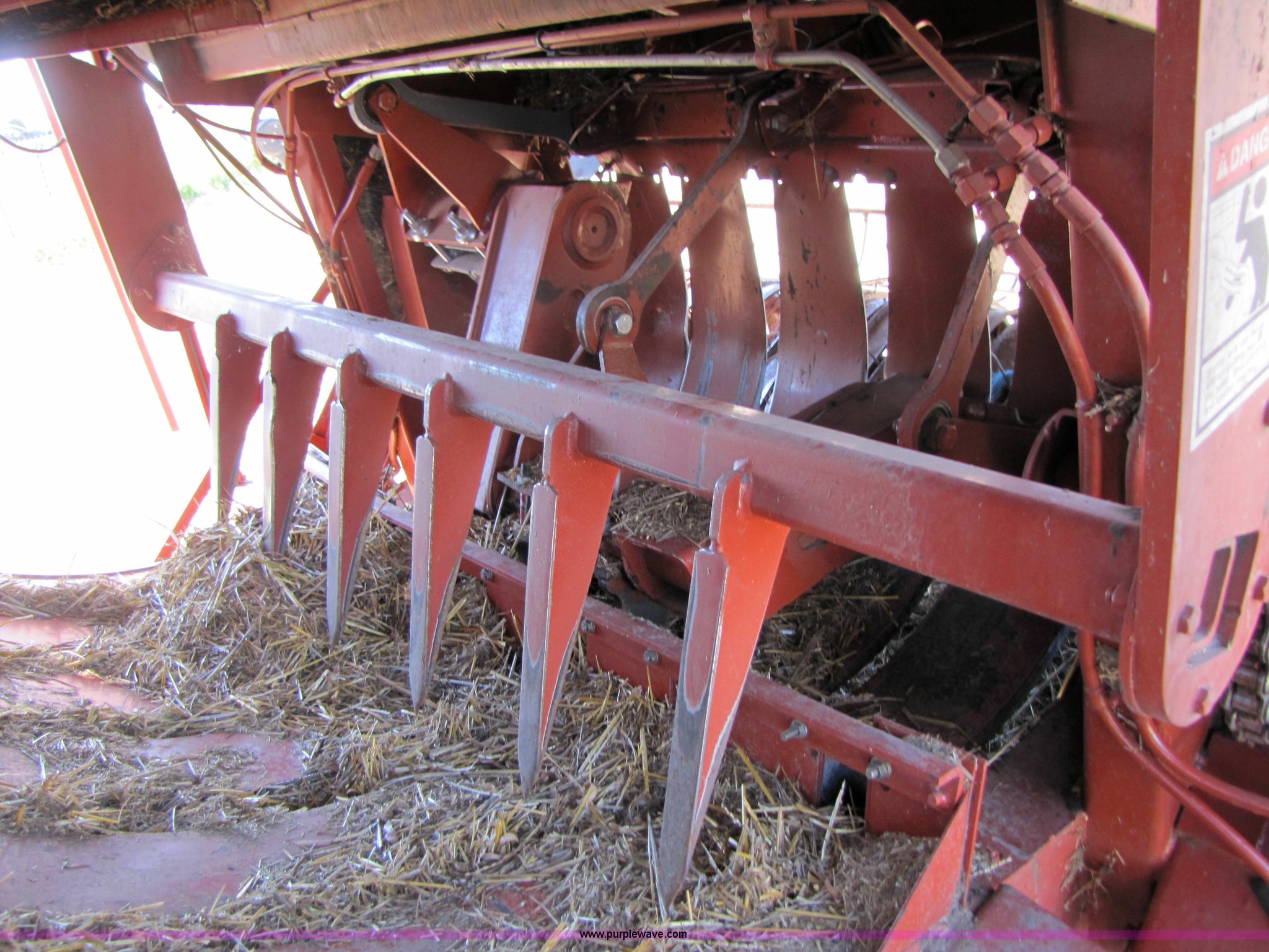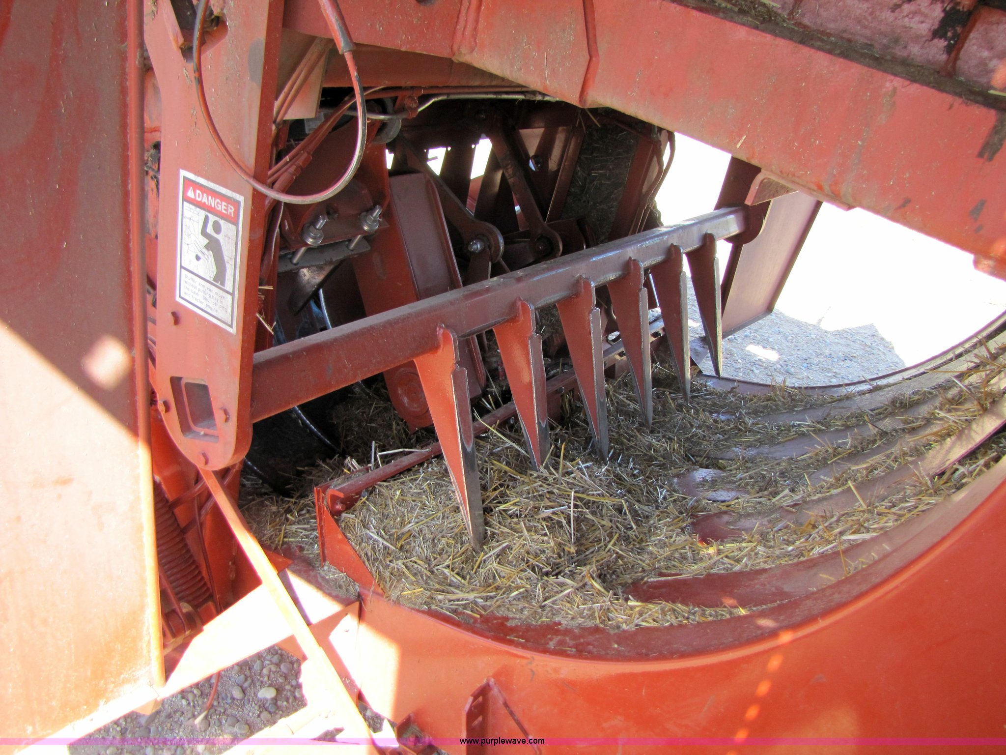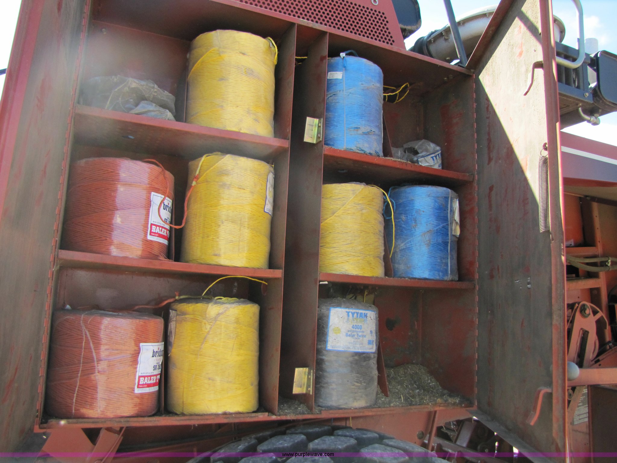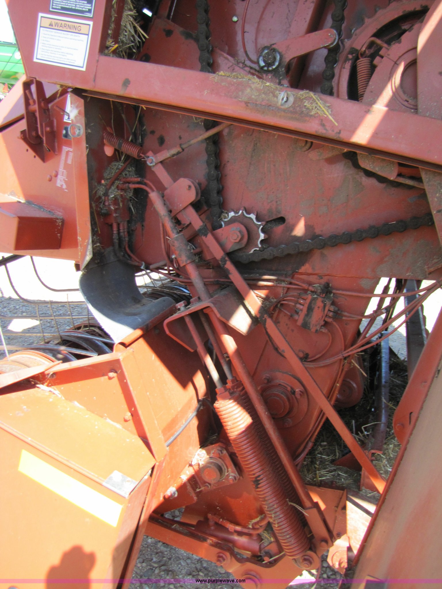 Purple Wave is selling a used Square Baler in Texas. This item is a 2003 Hesston 4910 square baler with the following: Approx 16,000 bales, 1000 PTO, Auto lube system, Bale chute, Six double knot knotters, 24 ball twine storage, Knotter fan, Work lights, Road lights, 89" pickup width, Up to 108" bale length, 28Lx26 16 ply turf tires, Monitor, Serial HM91547