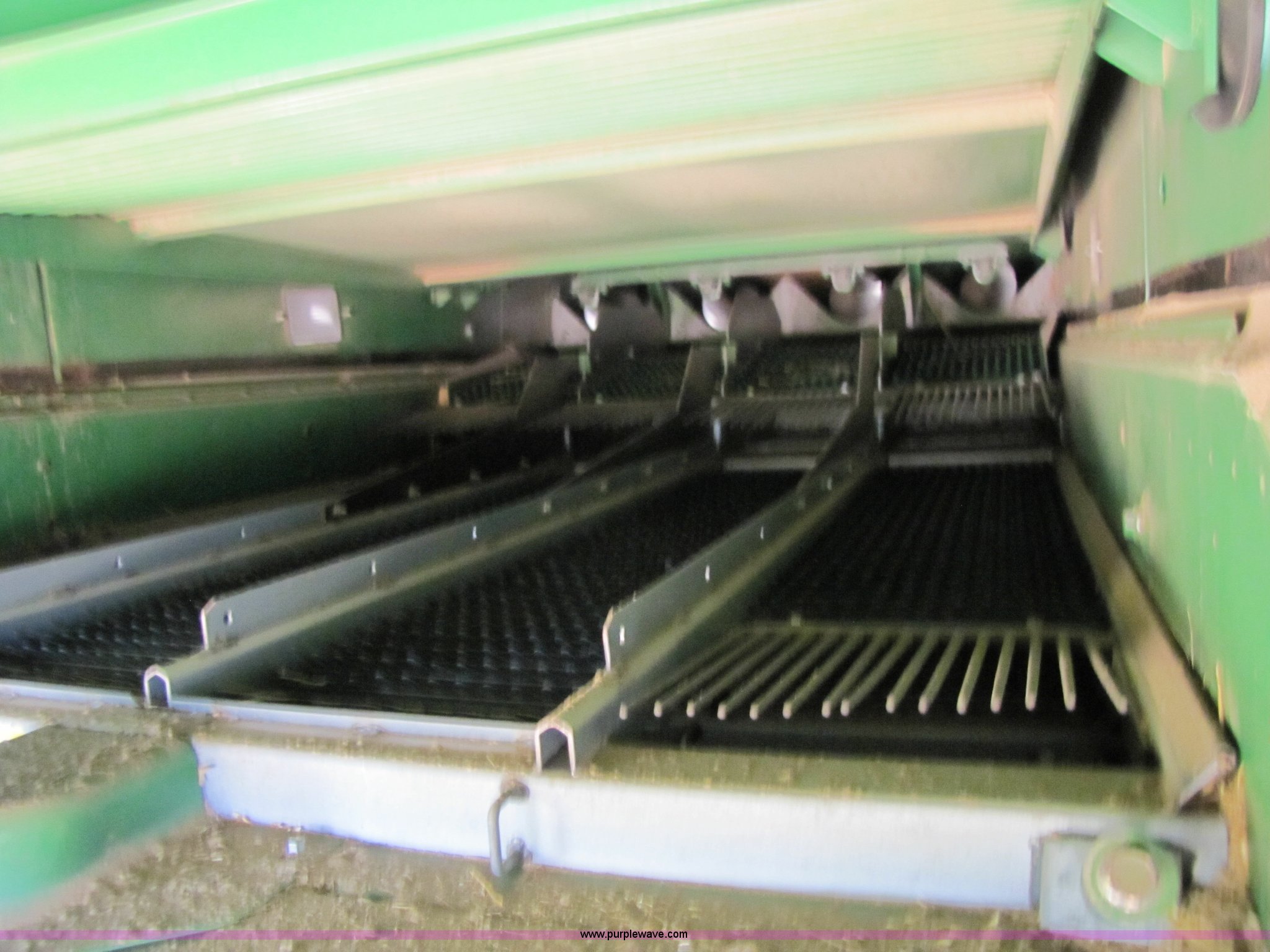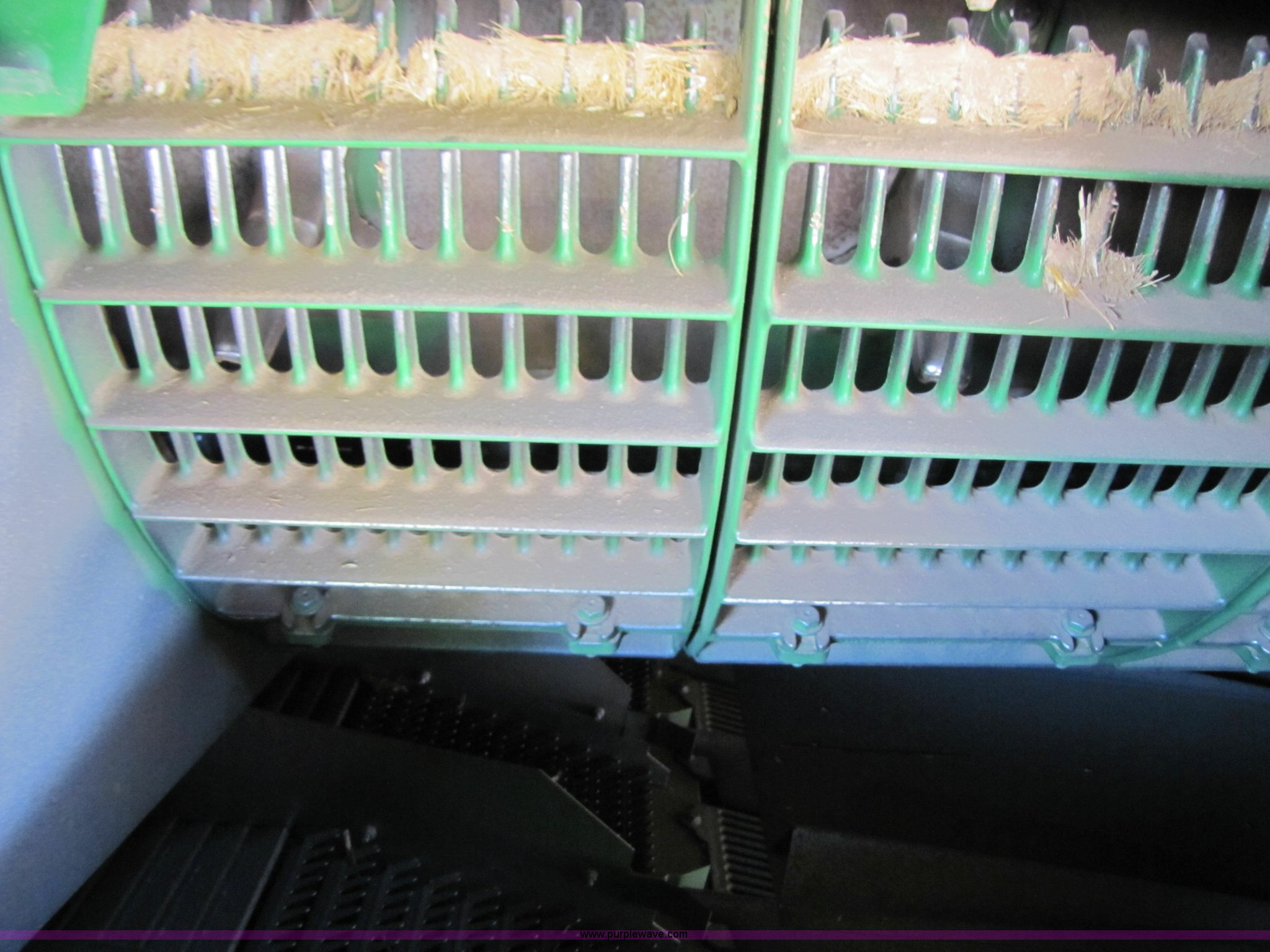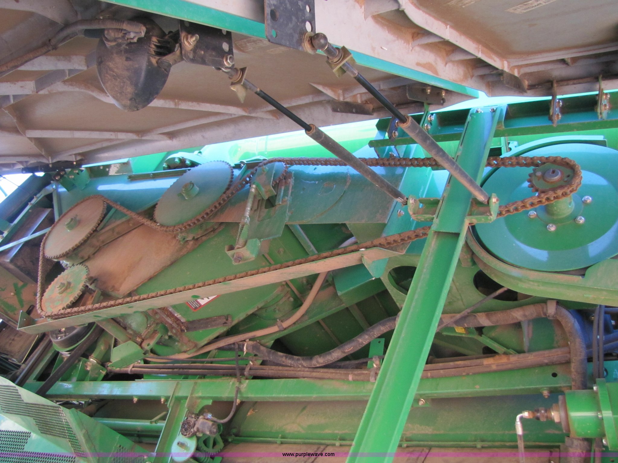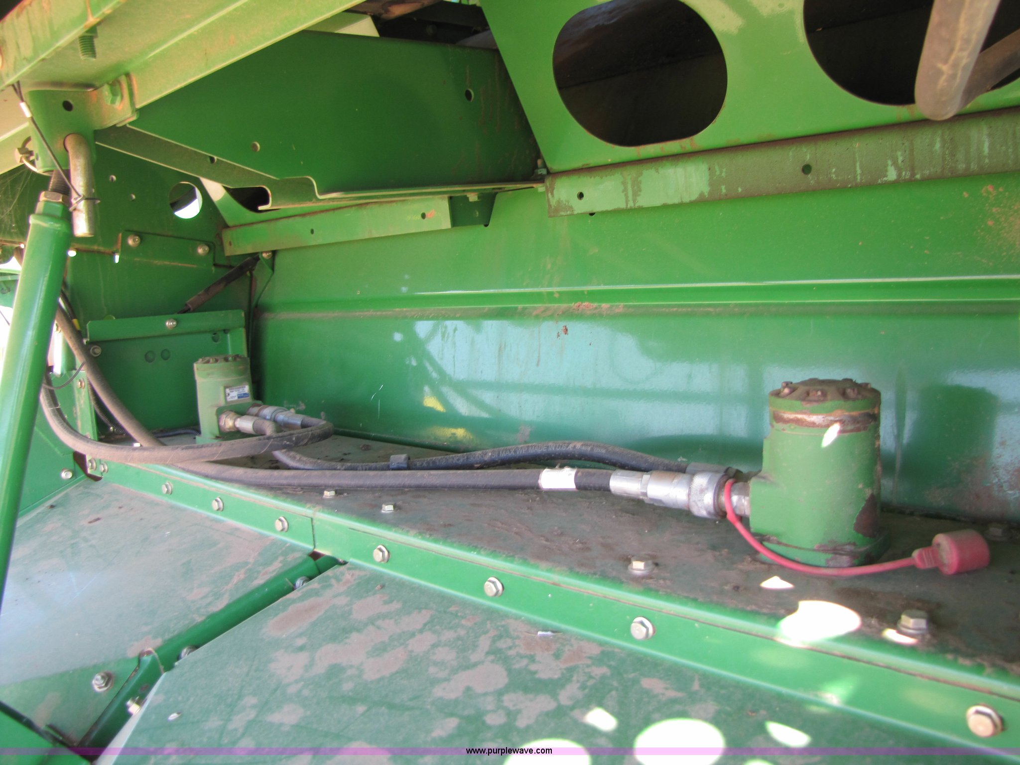 Purple Wave is selling a used Combine in Texas. This item is a 2007 John Deere 9860 STS combine with the following: 1566 engine hours on meter, 1145 separator hours on meter, John Deere six cylinder 12.5L 375hp turbocharged diesel engine, Three speed hydrostatic transmission, 350 bushel grain capacity with extension, Straw spreader, Quick Tach header coupler, Suspension seat, Instructor seat, Joystick speed/draper controls, AM/FM radio, AC and heat, Greenstar enabled, Work lights, 520/85R42 front dual tires, 18.4R26 rear tires, 250 gallon fuel tank, Serial H09860S720786, Stock# 13408