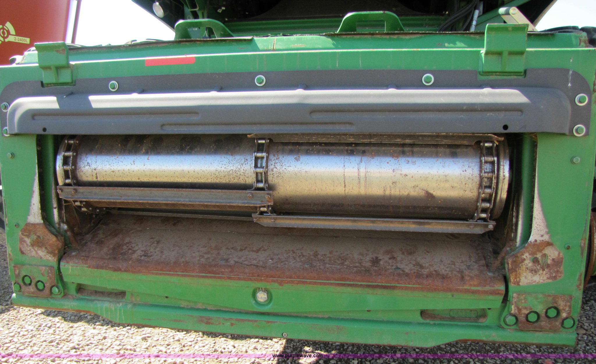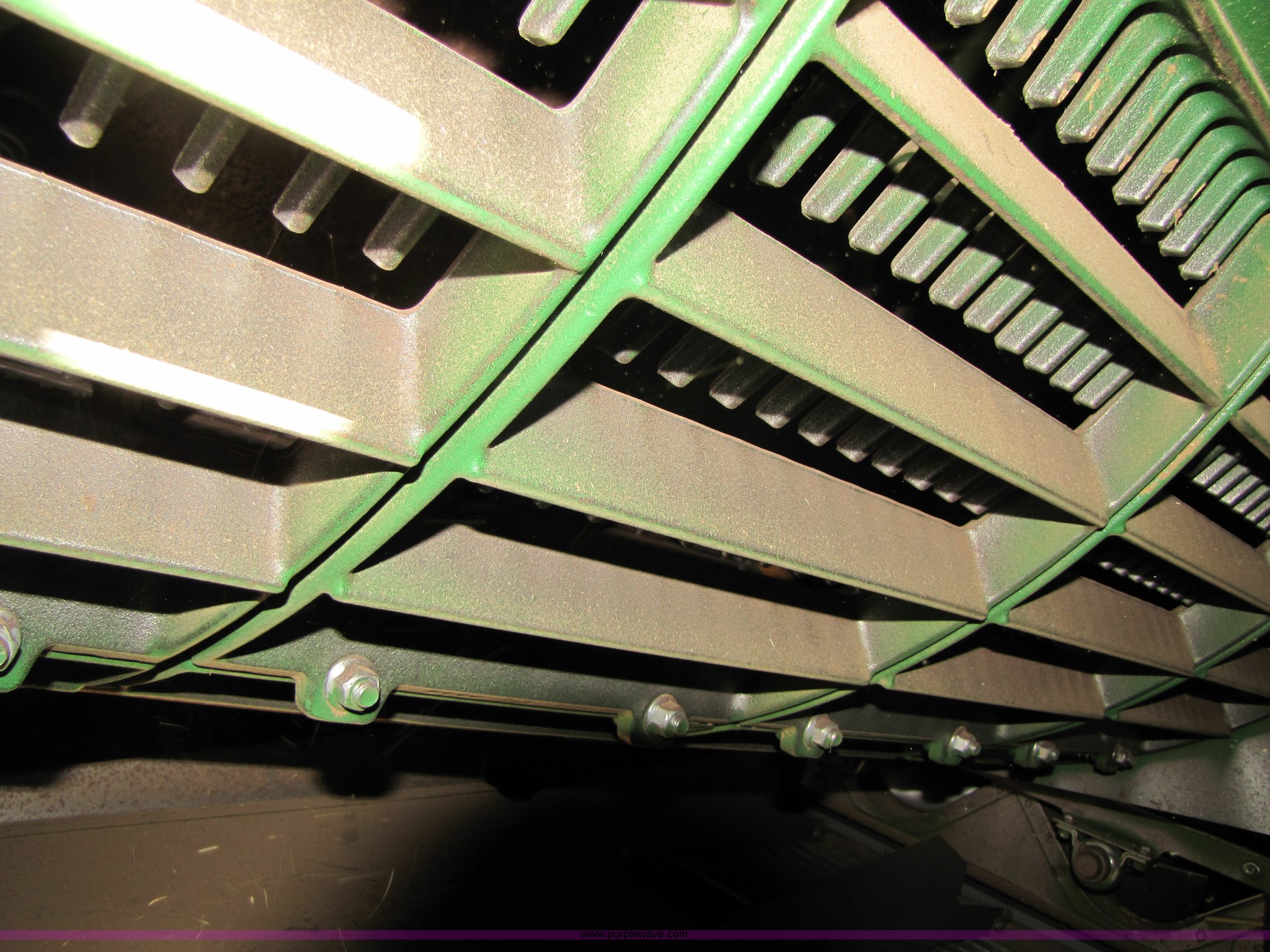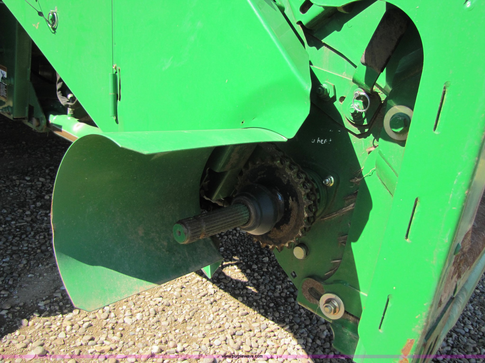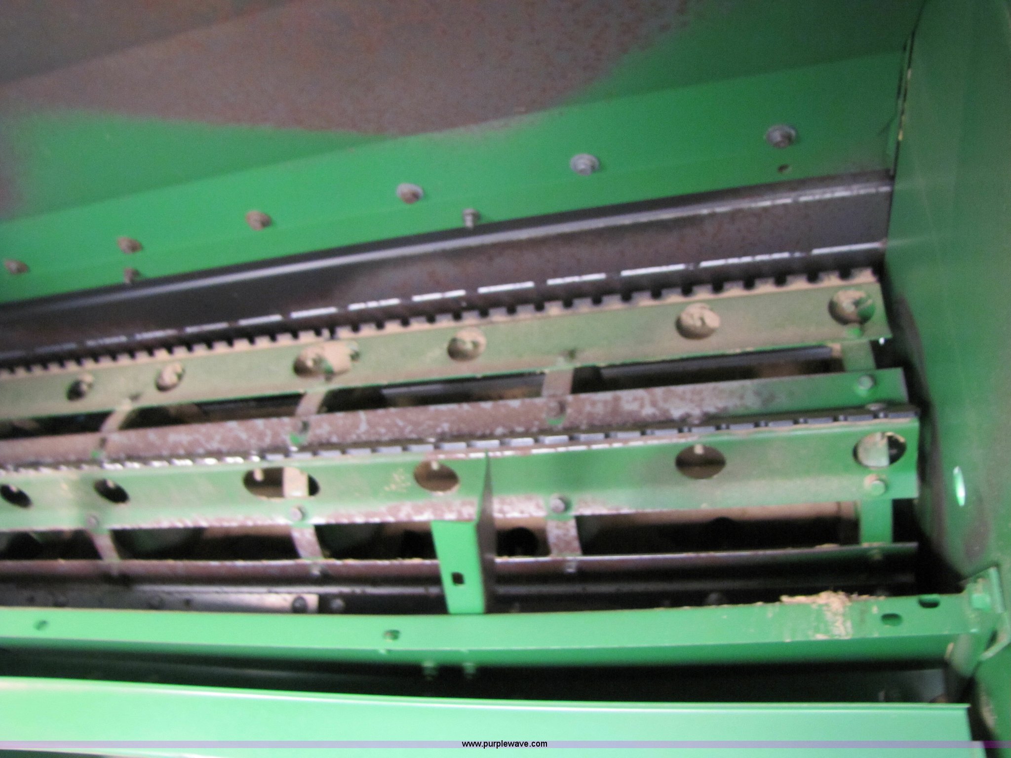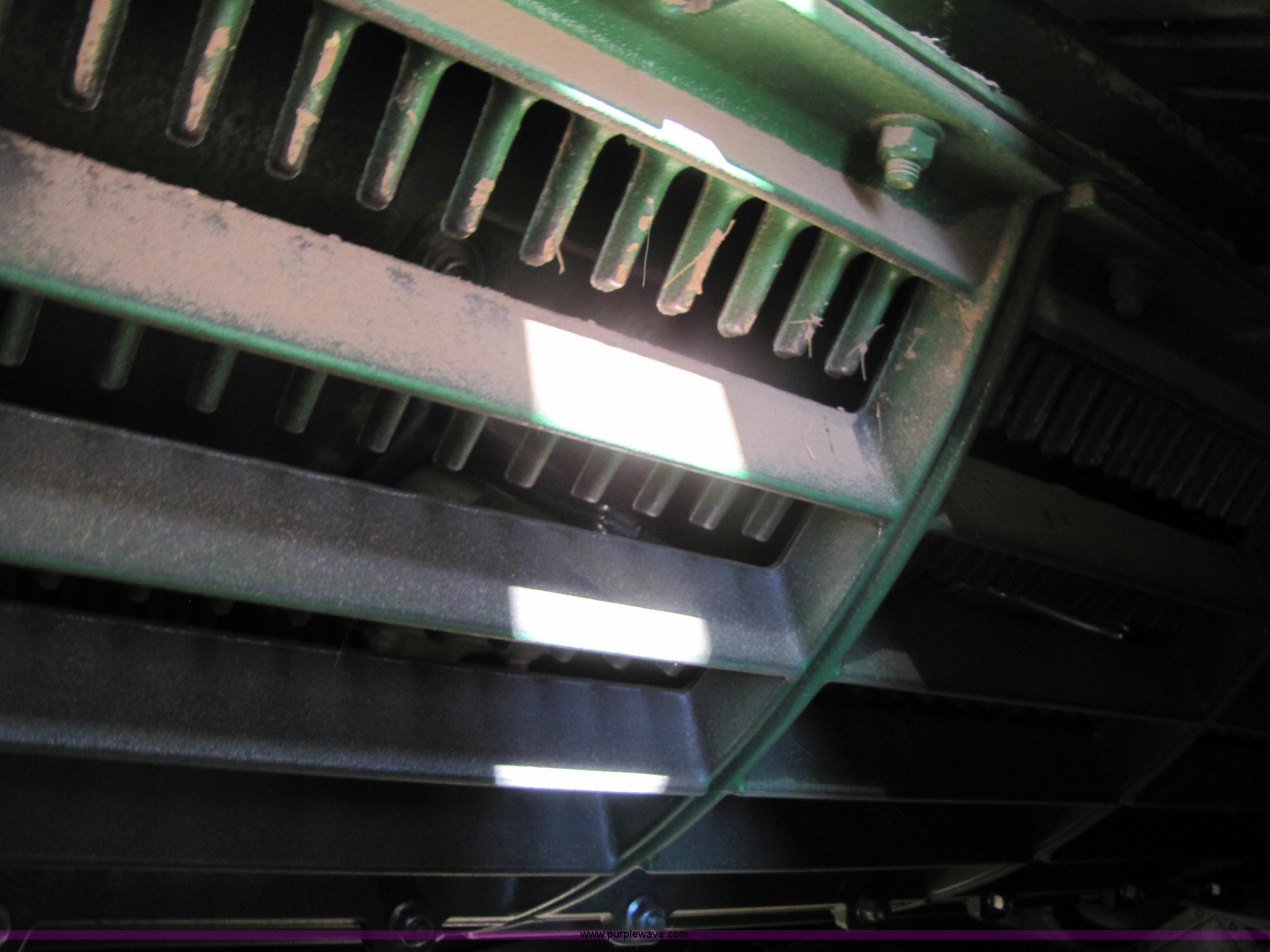 Purple Wave is selling a used Combine in Texas. This item is a 2007 John Deere 9860 STS combine with the following: 1566 engine hours on meter, 1145 separator hours on meter, John Deere six cylinder 12.5L 375hp turbocharged diesel engine, Three speed hydrostatic transmission, 350 bushel grain capacity with extension, Straw spreader, Quick Tach header coupler, Suspension seat, Instructor seat, Joystick speed/draper controls, AM/FM radio, AC and heat, Greenstar enabled, Work lights, 520/85R42 front dual tires, 18.4R26 rear tires, 250 gallon fuel tank, Serial H09860S720786, Stock# 13408