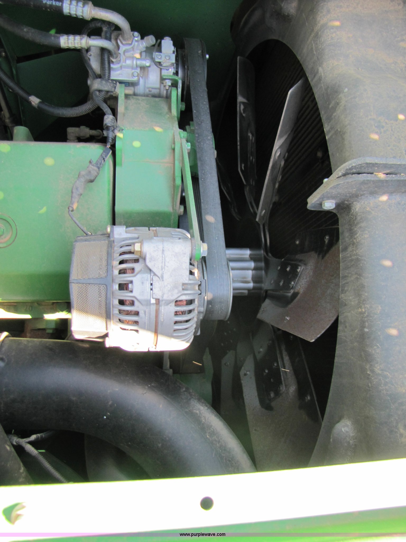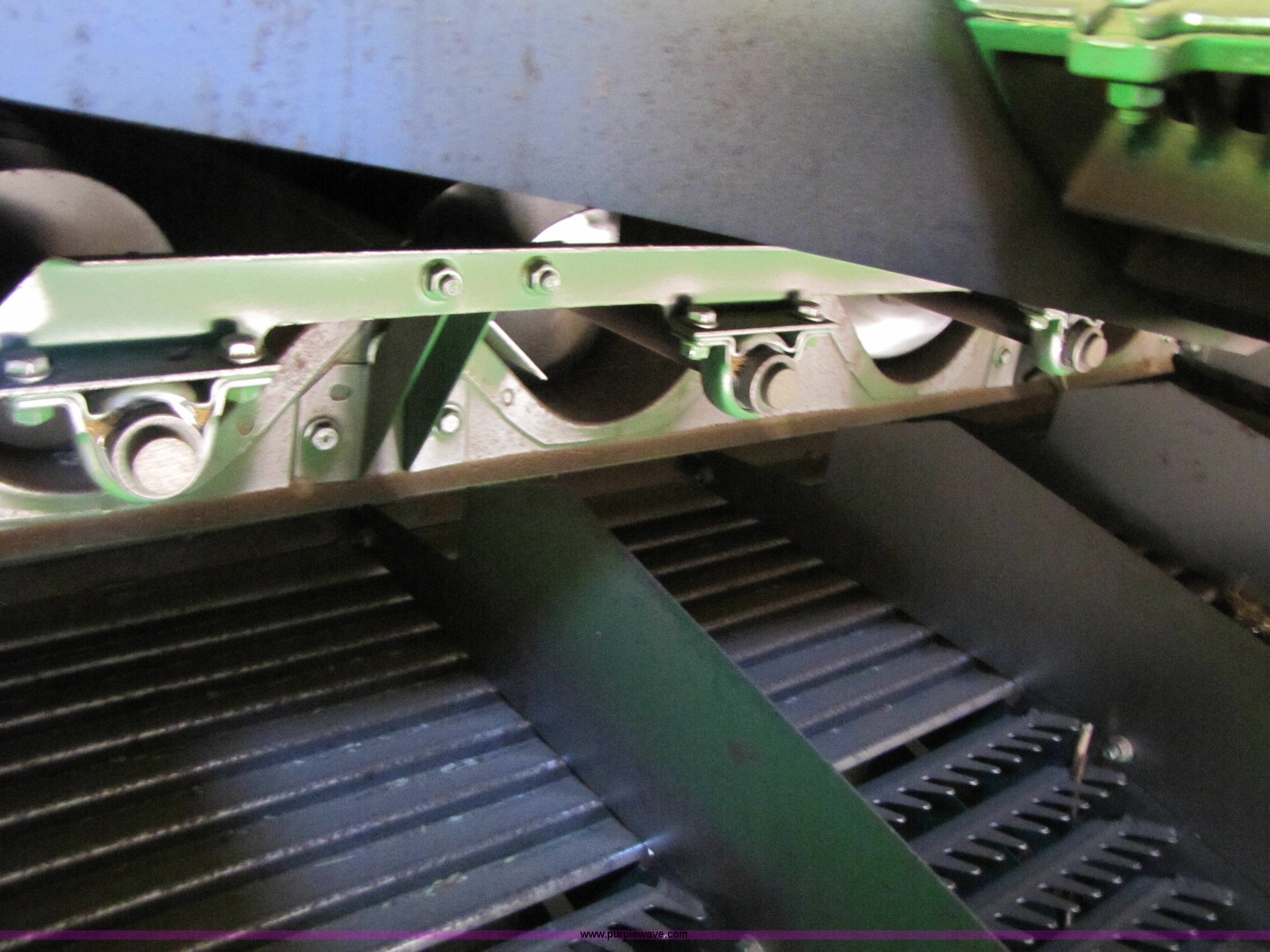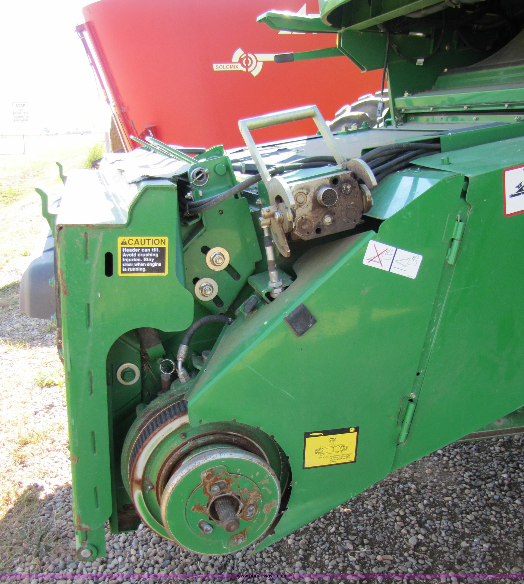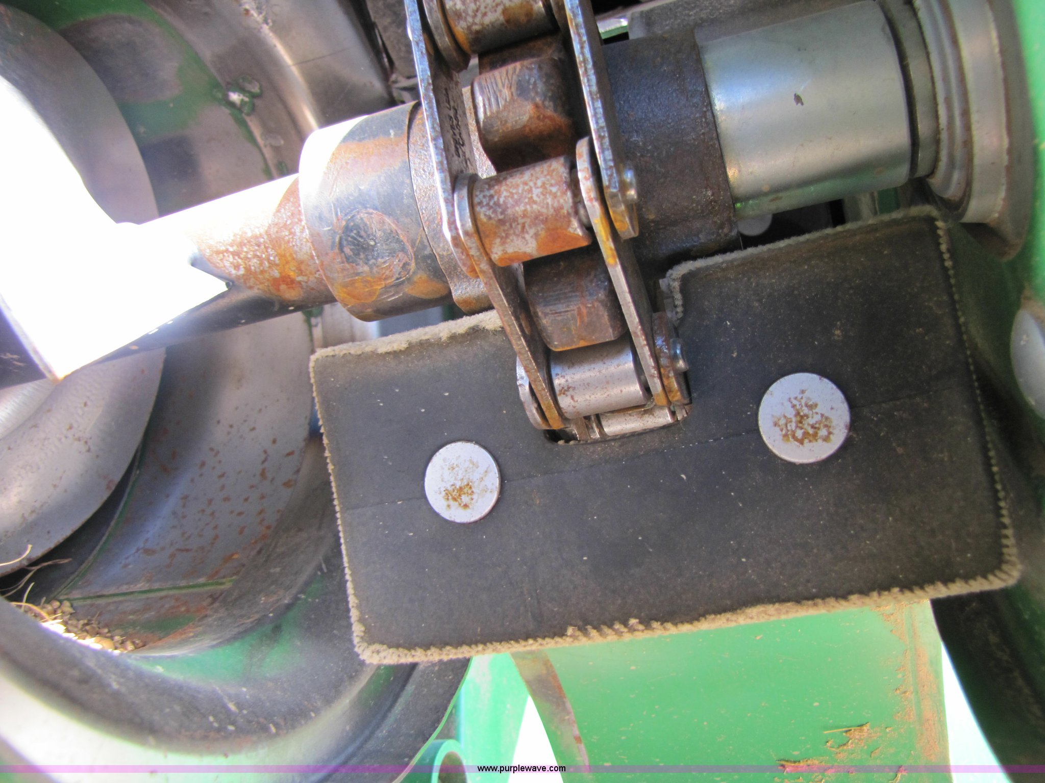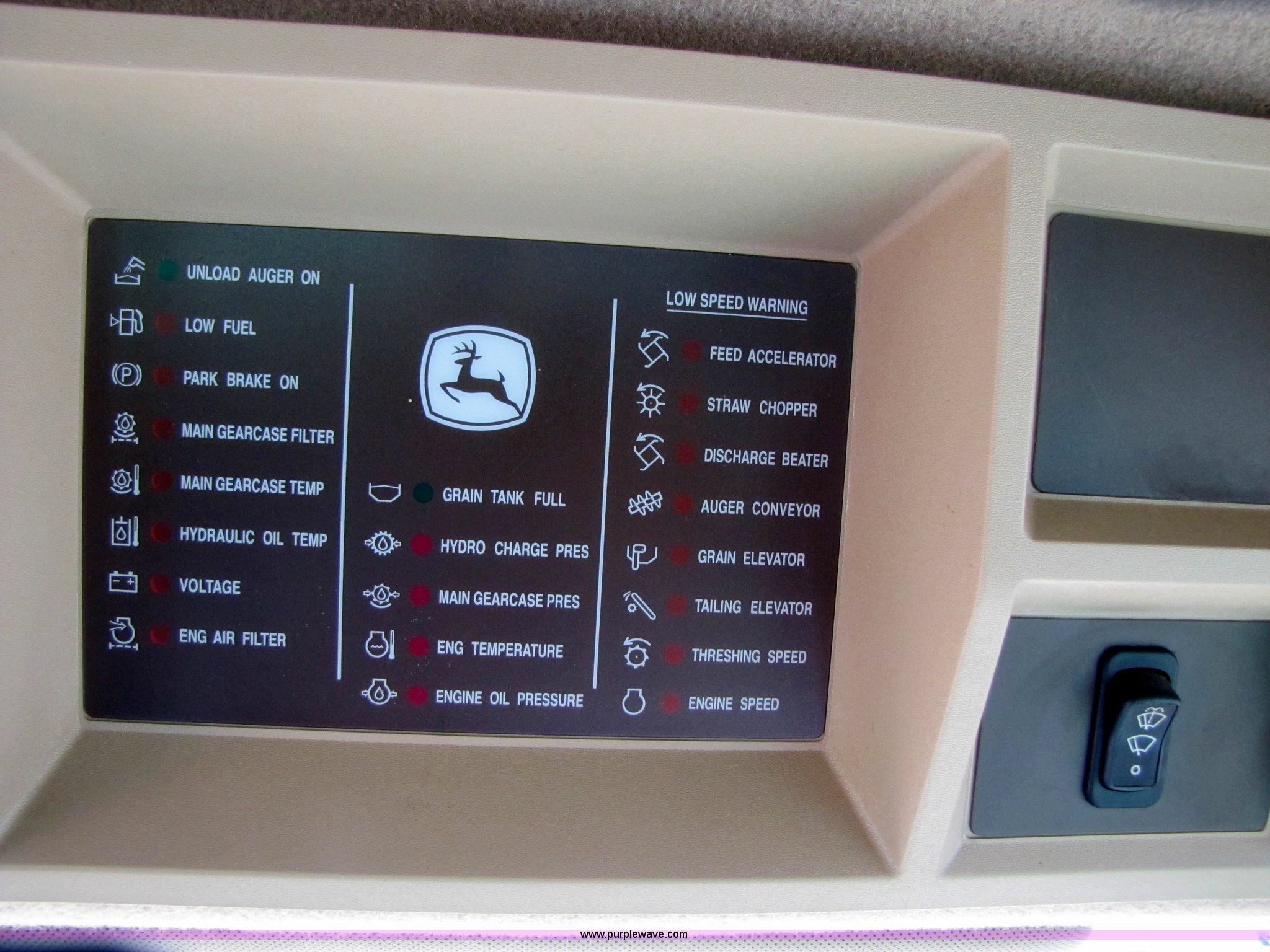 Purple Wave is selling a used Combine in Texas. This item is a 2007 John Deere 9860 STS combine with the following: 1566 engine hours on meter, 1145 separator hours on meter, John Deere six cylinder 12.5L 375hp turbocharged diesel engine, Three speed hydrostatic transmission, 350 bushel grain capacity with extension, Straw spreader, Quick Tach header coupler, Suspension seat, Instructor seat, Joystick speed/draper controls, AM/FM radio, AC and heat, Greenstar enabled, Work lights, 520/85R42 front dual tires, 18.4R26 rear tires, 250 gallon fuel tank, Serial H09860S720786, Stock# 13408