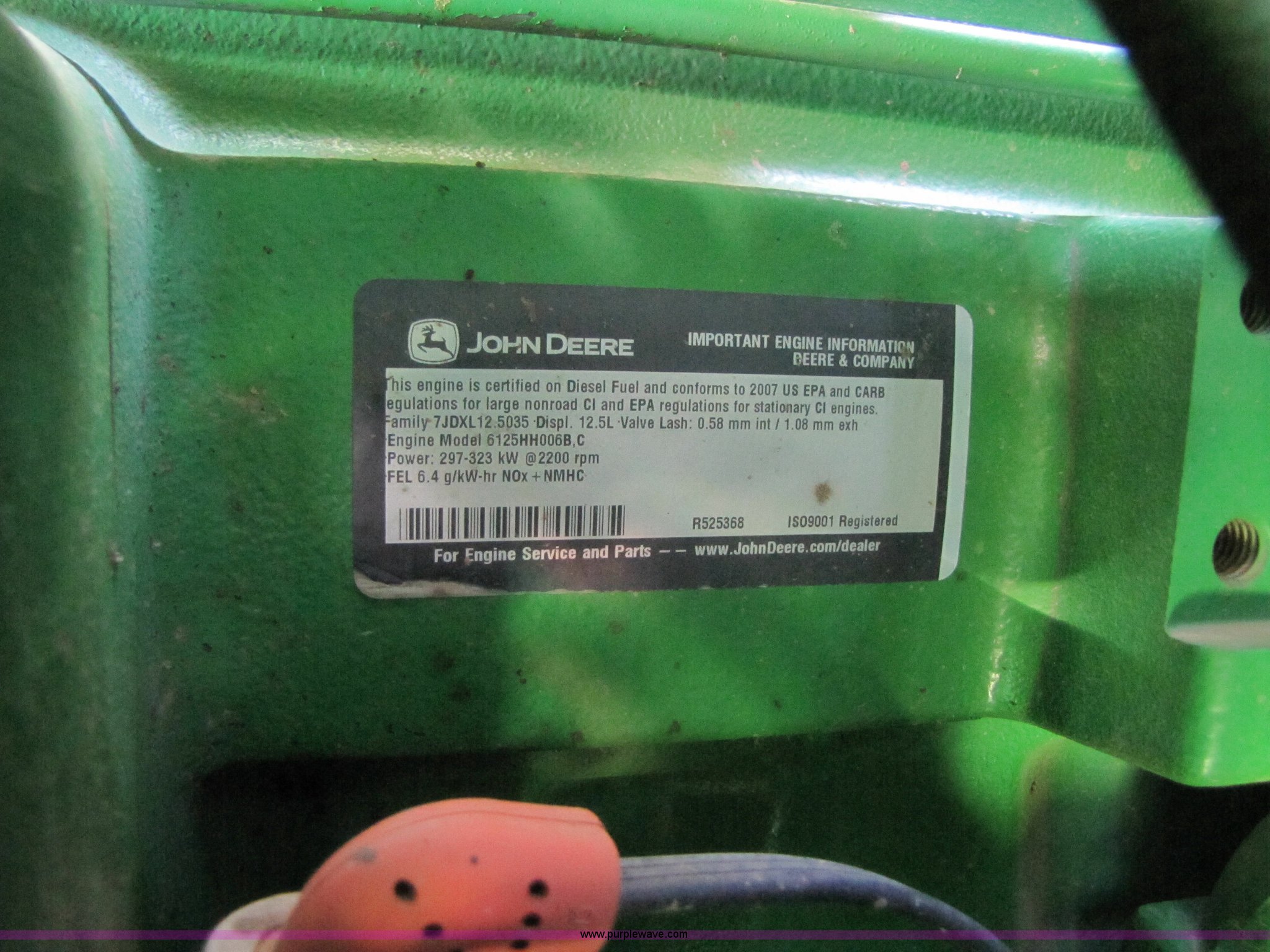 - John Deere six cylinder 12.5L 375hp turbocharged diesel engine