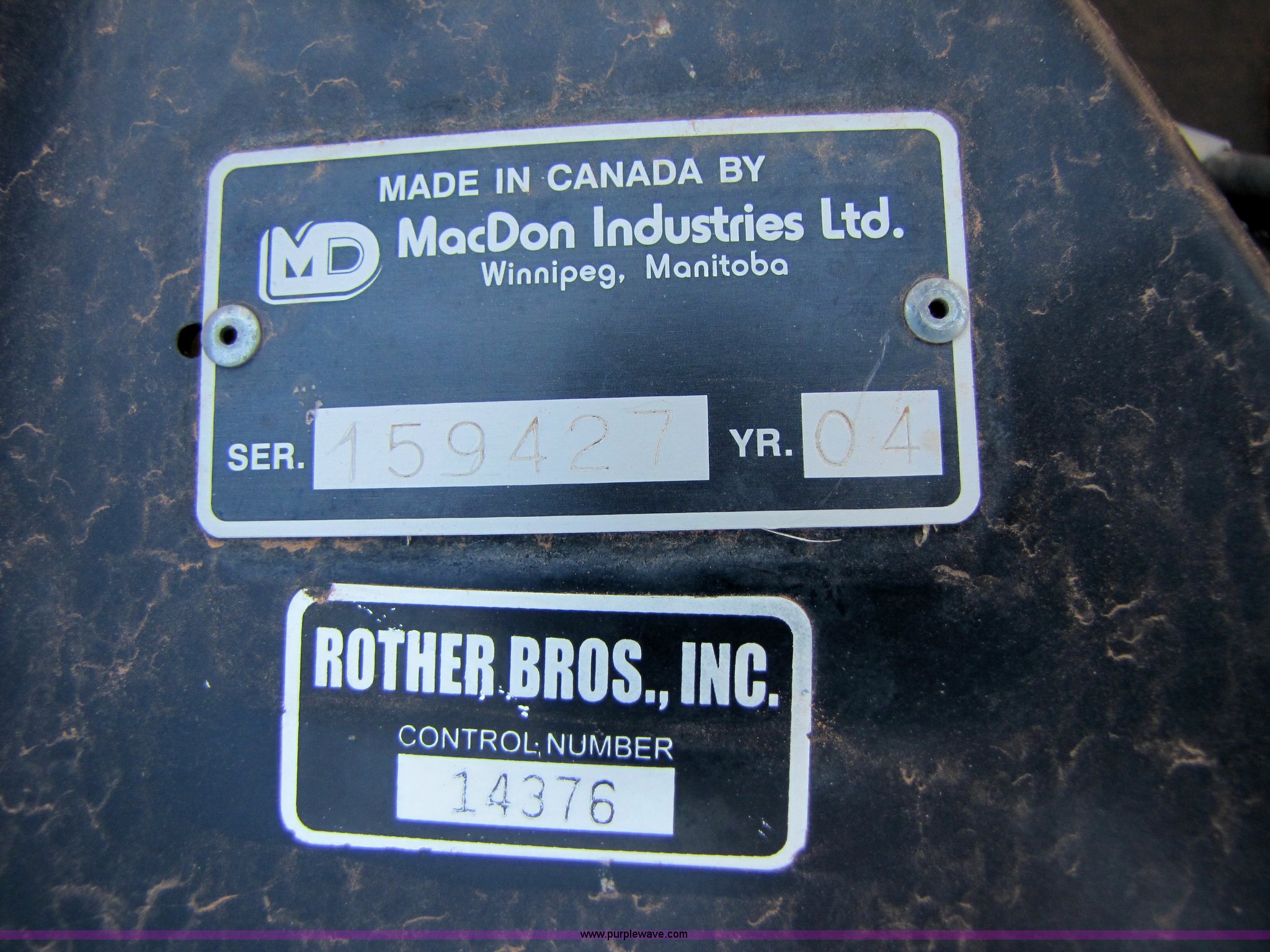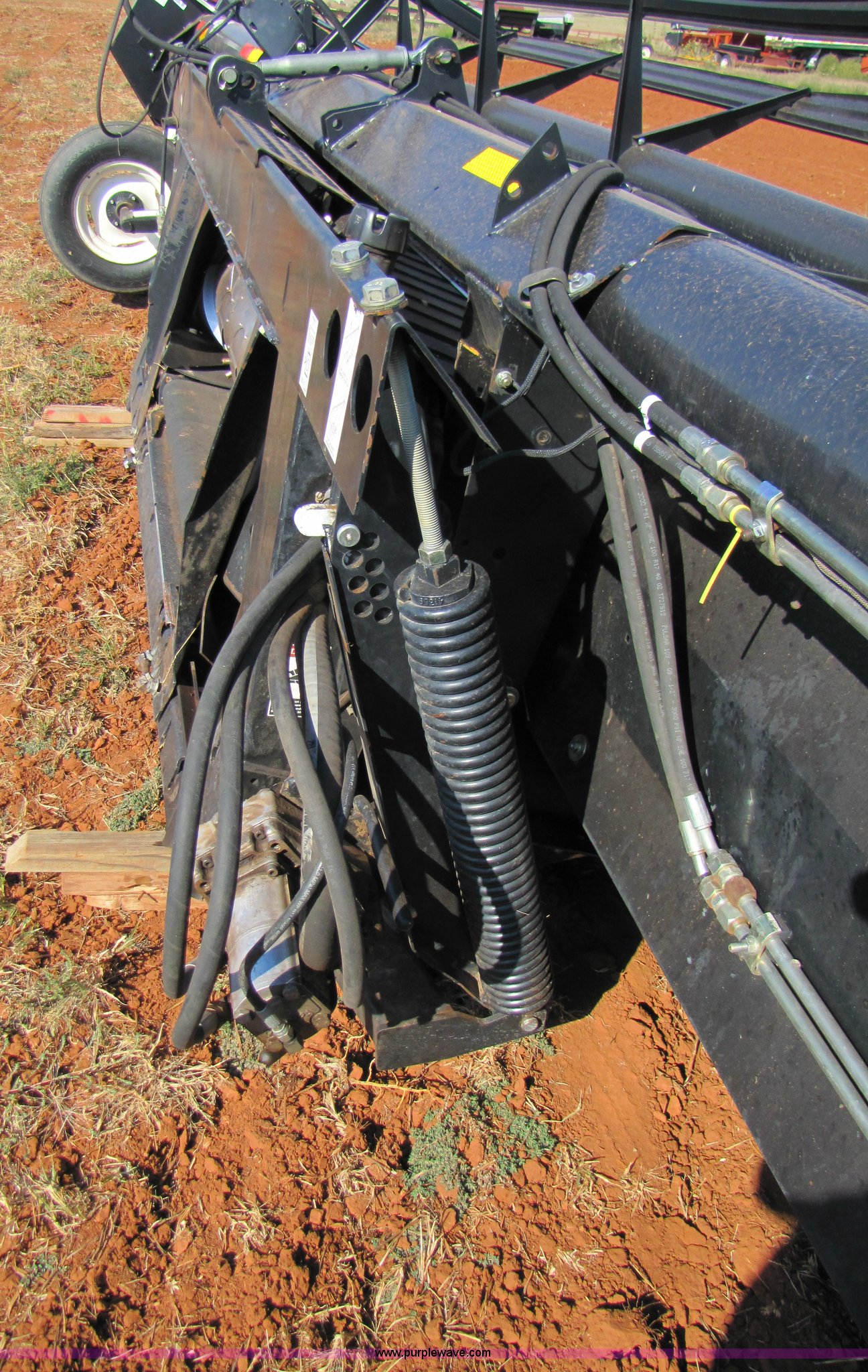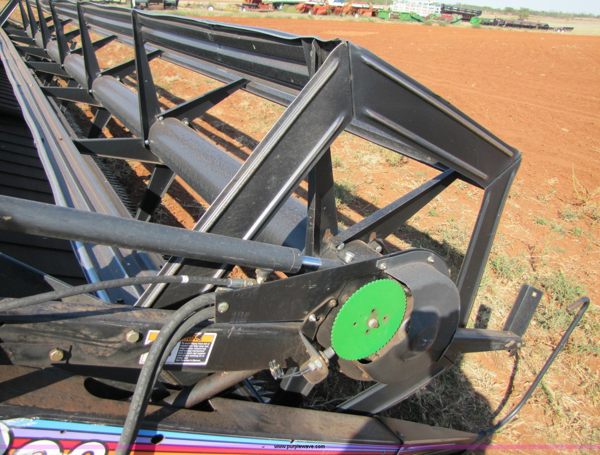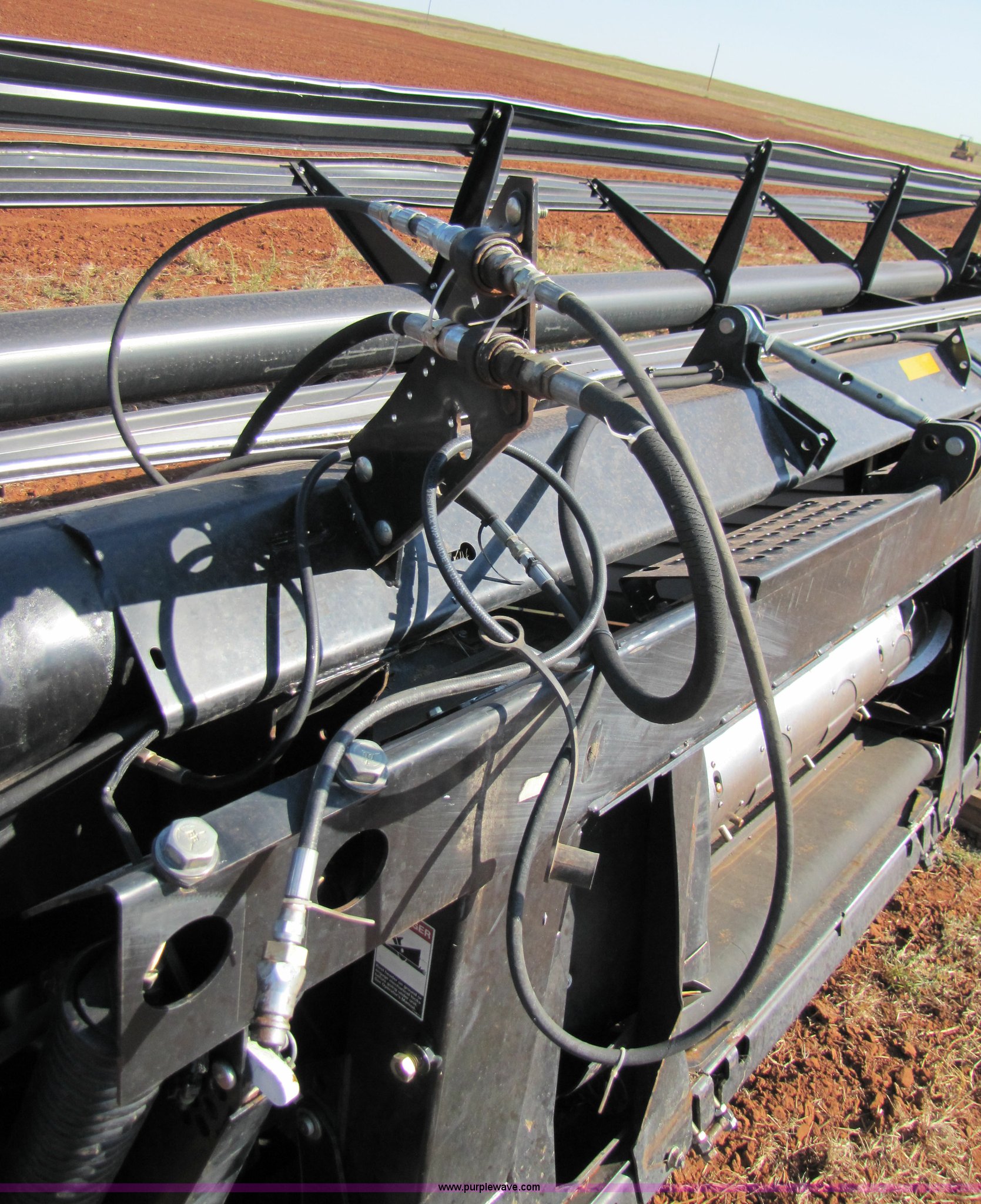 Purple Wave is selling a used Platform or Stripper Head in Oklahoma. This item is a 2004 Mac Don 963 draper head with the following: 30', Bat reel, Hydraulic reel height, 6.70-15 tires, Gauge wheels, Set up for Case IH combine, Serial 159427