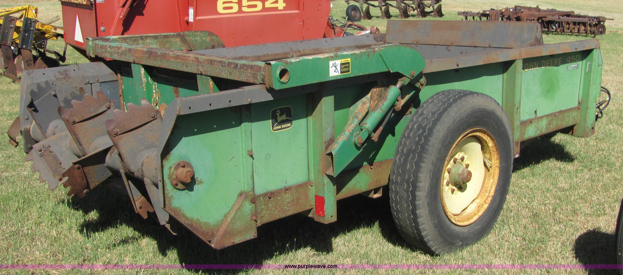 Take a look at this used John Deere 450 manure spreader being sold on October 20th, 2010 in the SOLD! October 20 Western Oklahoma and Texas Panhandle Ag Equipment Internet Auction made by John Deere. Take a look at all of the item information below or take a look at similar auctions for Applicators.