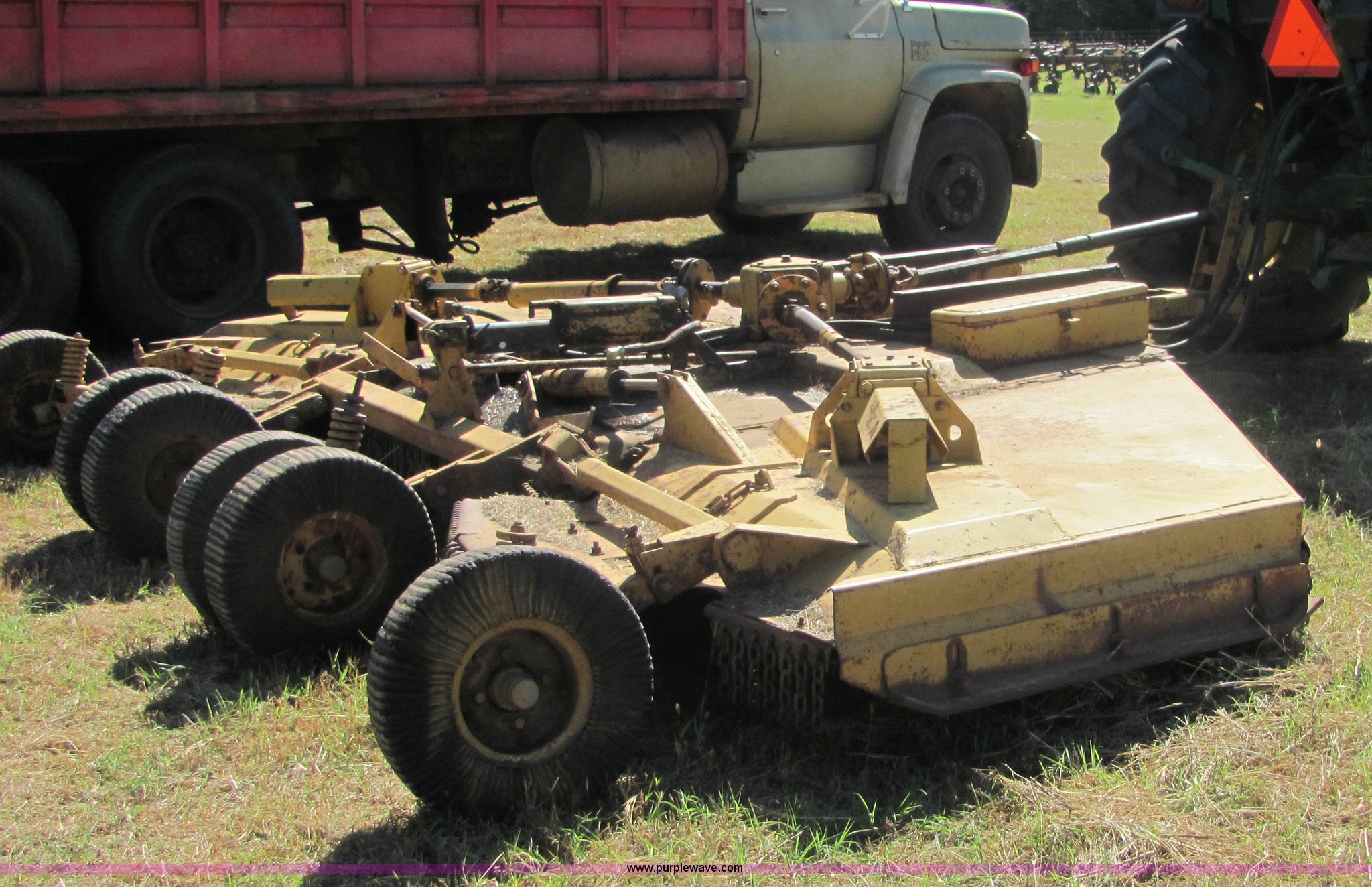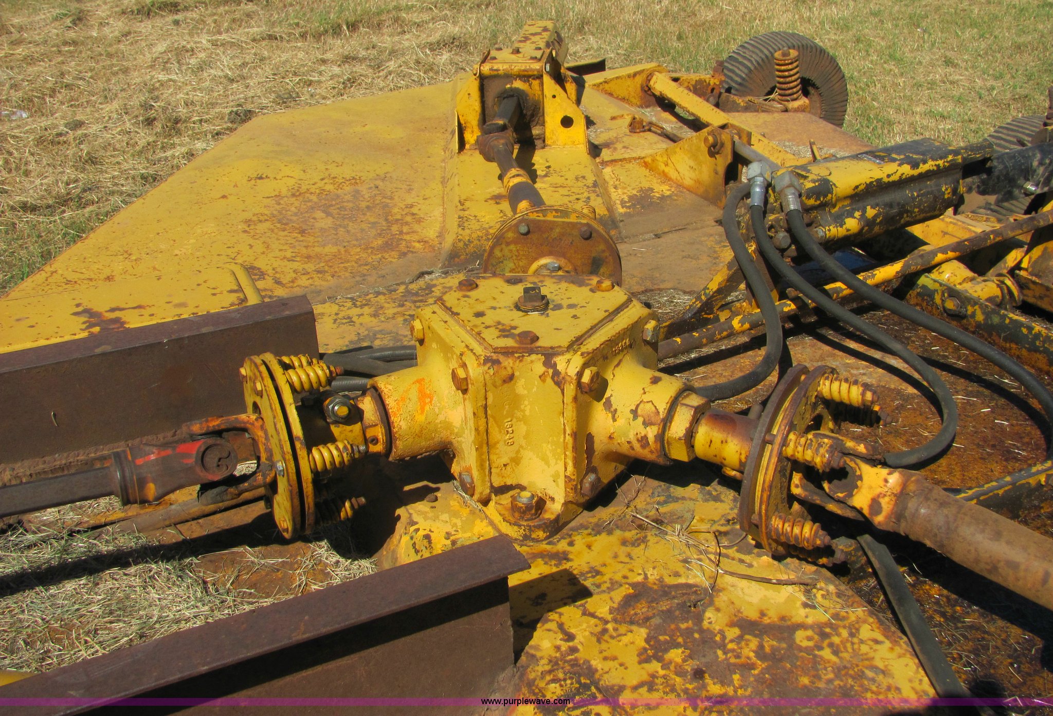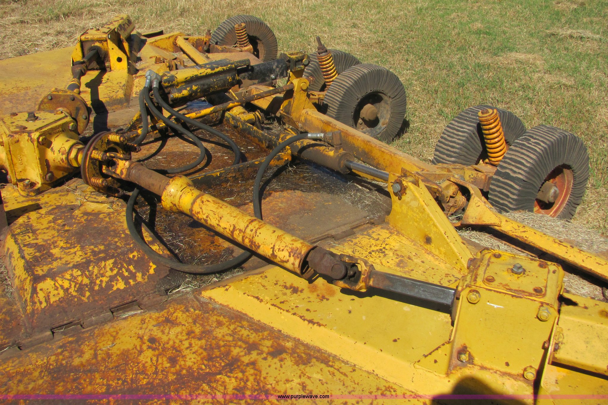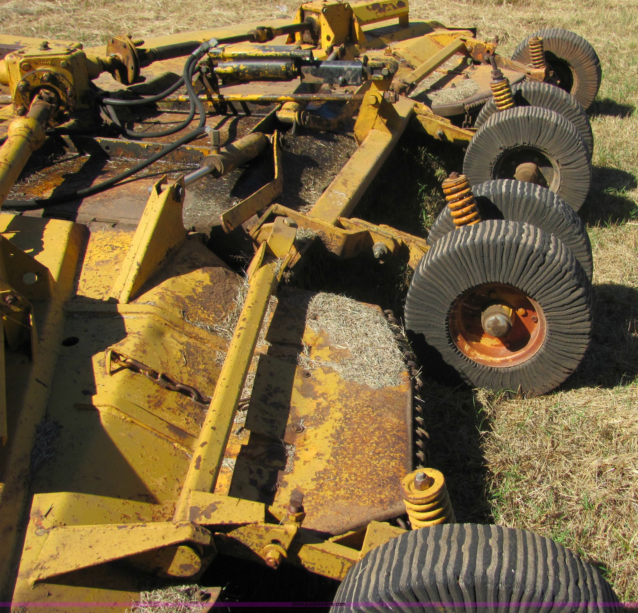 Purple Wave is selling a used Mower, Cutter, Shredder in Oklahoma. This item is a Woods 15' batwing mower with the following: Dual rear wheels on center deck, Chain guards on front and rear, Pintle hitch included, John Deere hydraulic cylinder included, All gear boxes functional, Mower is still in service, Serial 47-7035