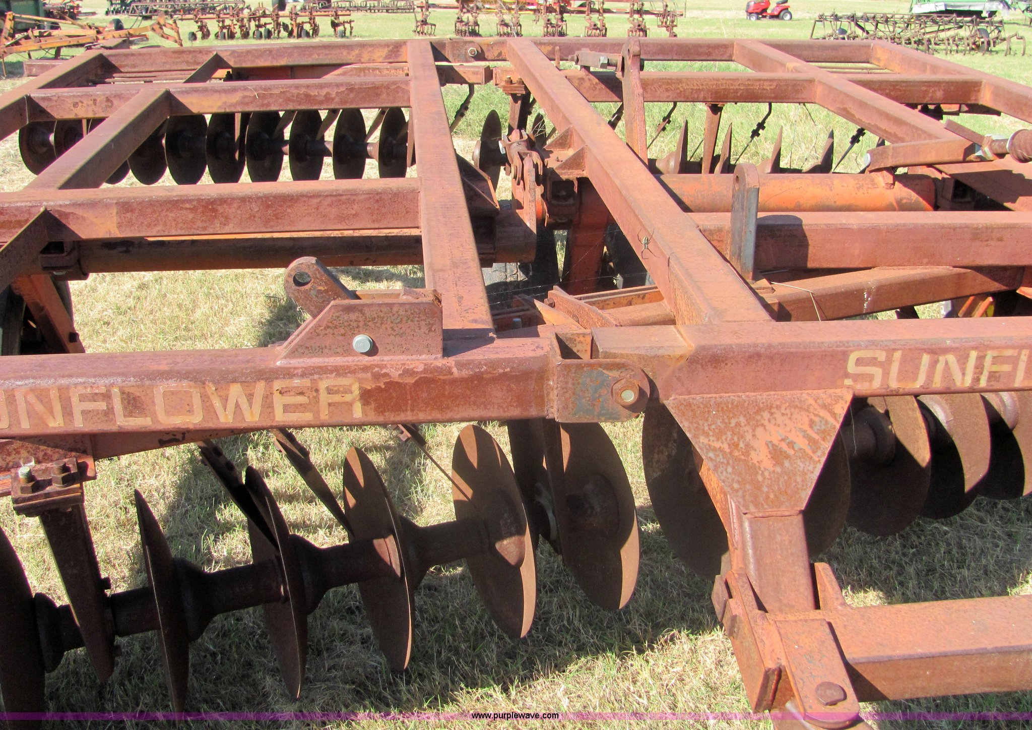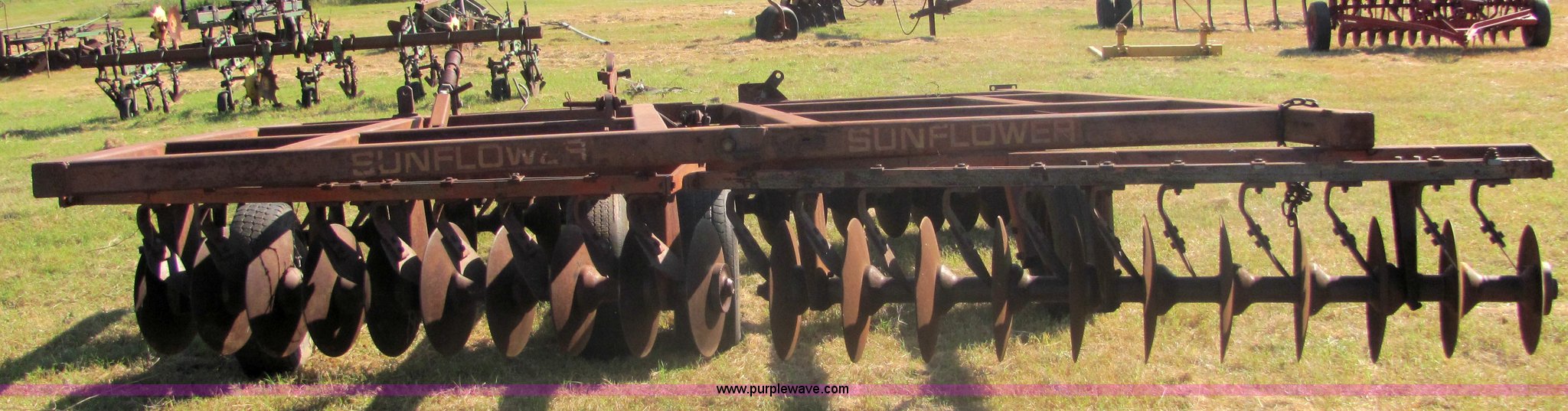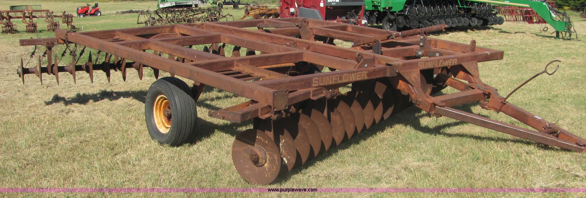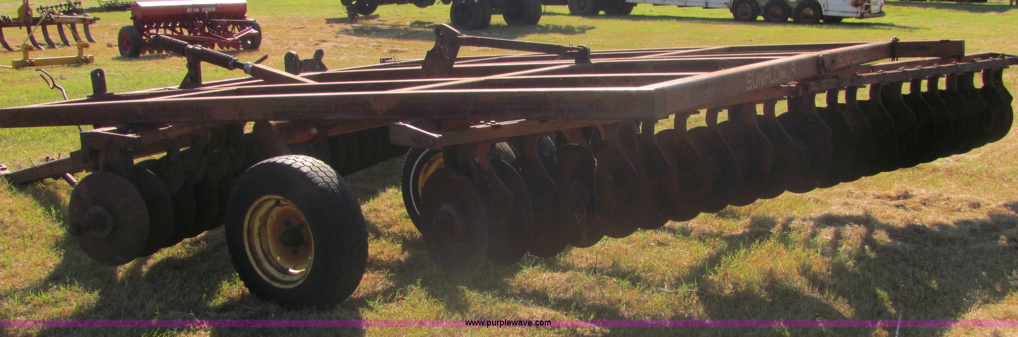 Purple Wave is selling a used Disk in Oklahoma. This item is a Sunflower 16' disc with the following: 17" blades, Flex wing