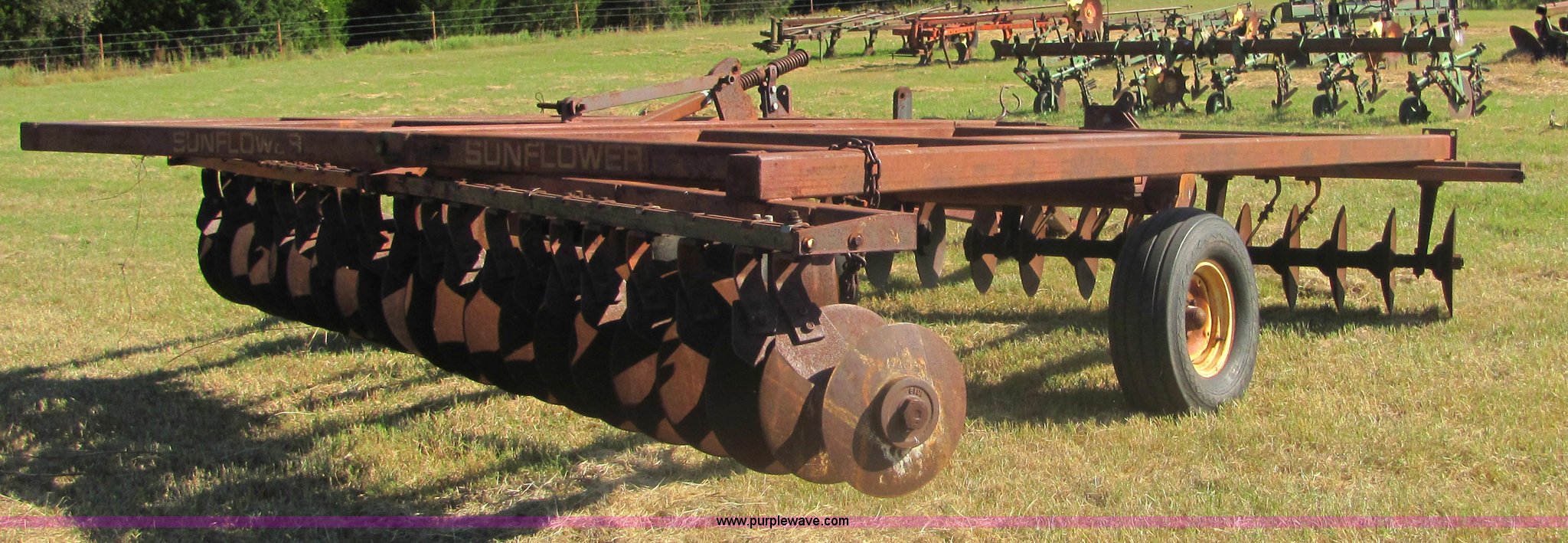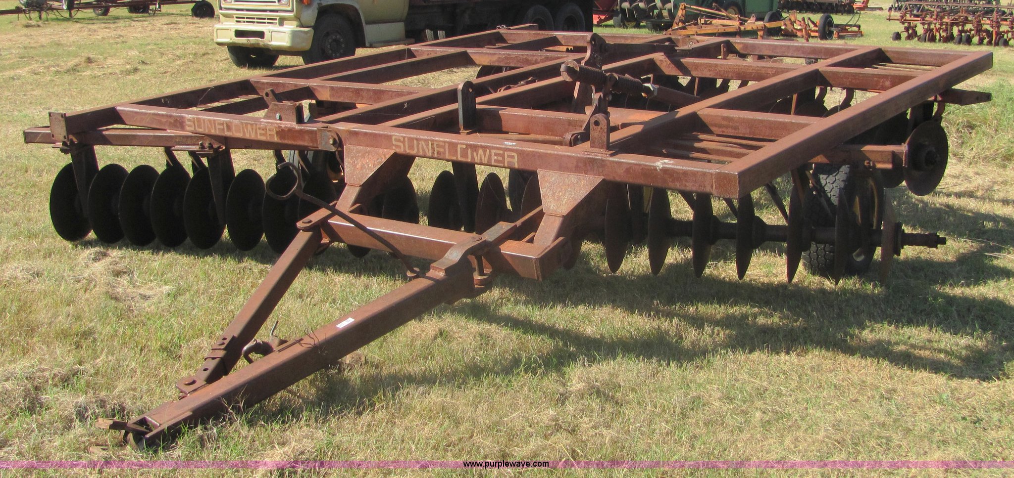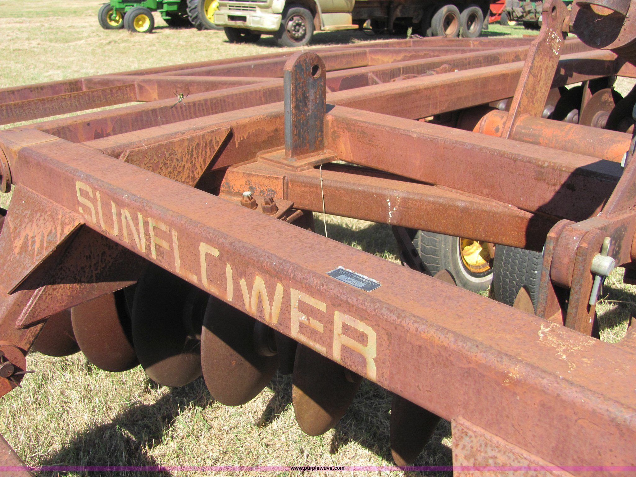 Purple Wave is selling a used Disk in Oklahoma. This item is a Sunflower 16' disc with the following: 17" blades, Flex wing