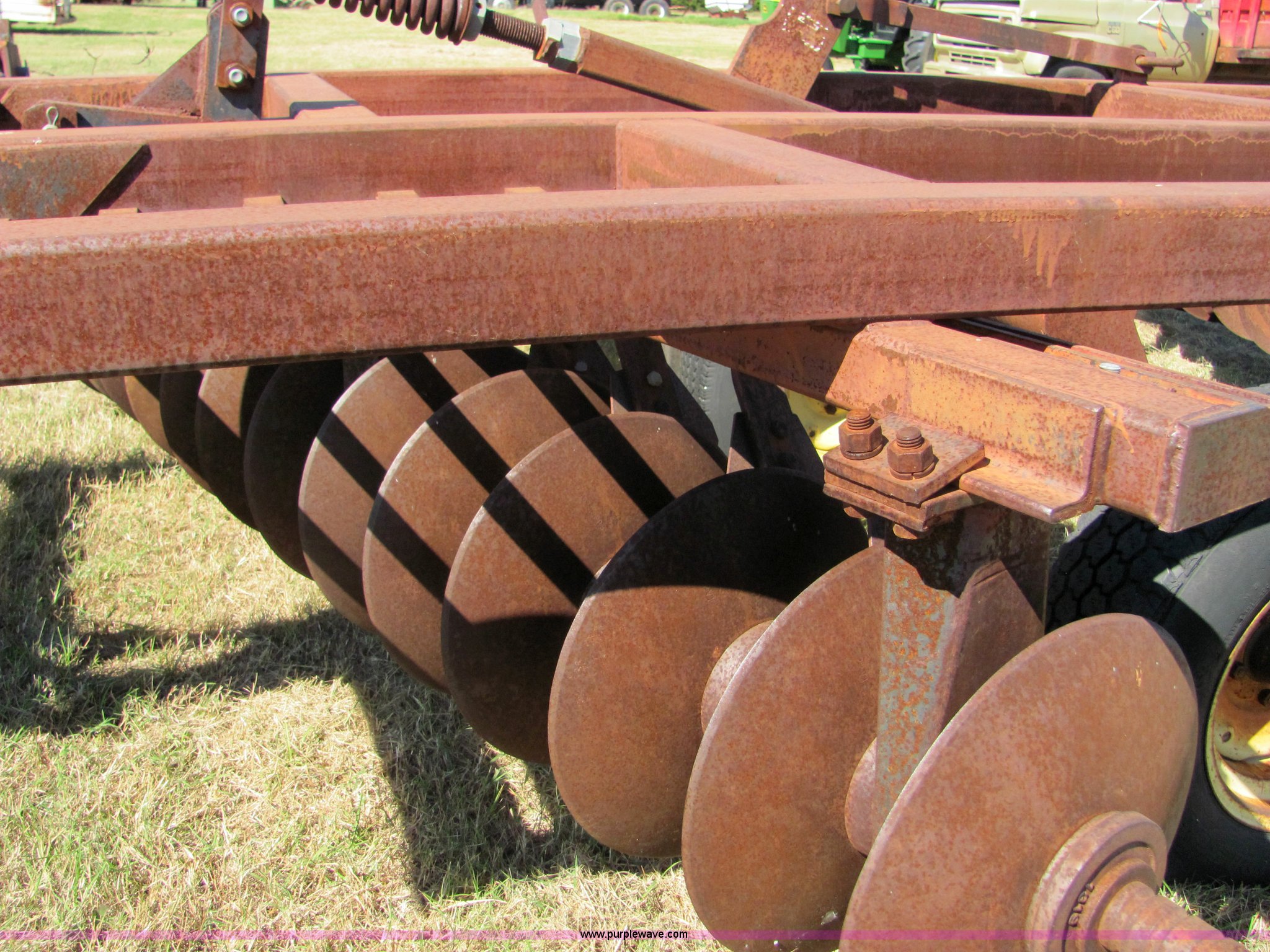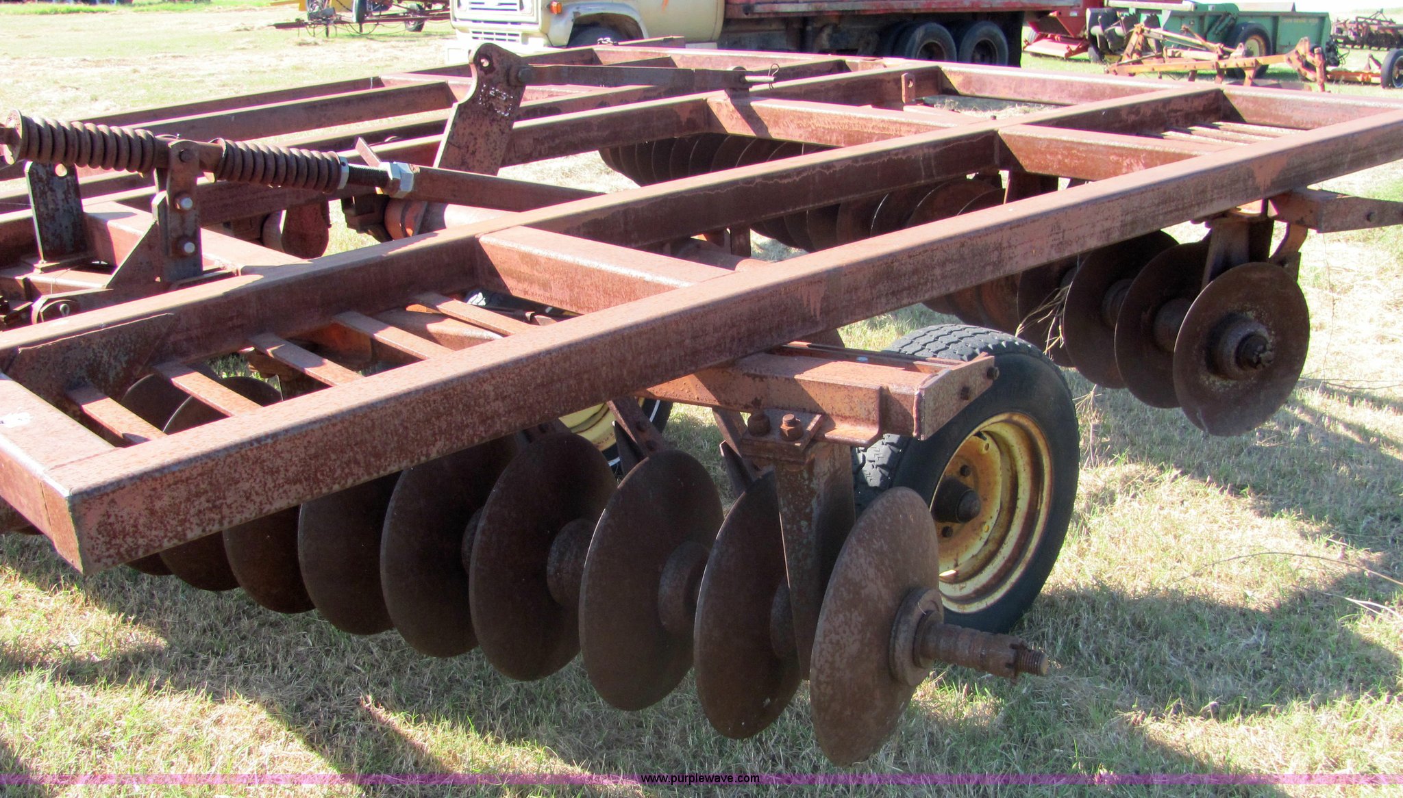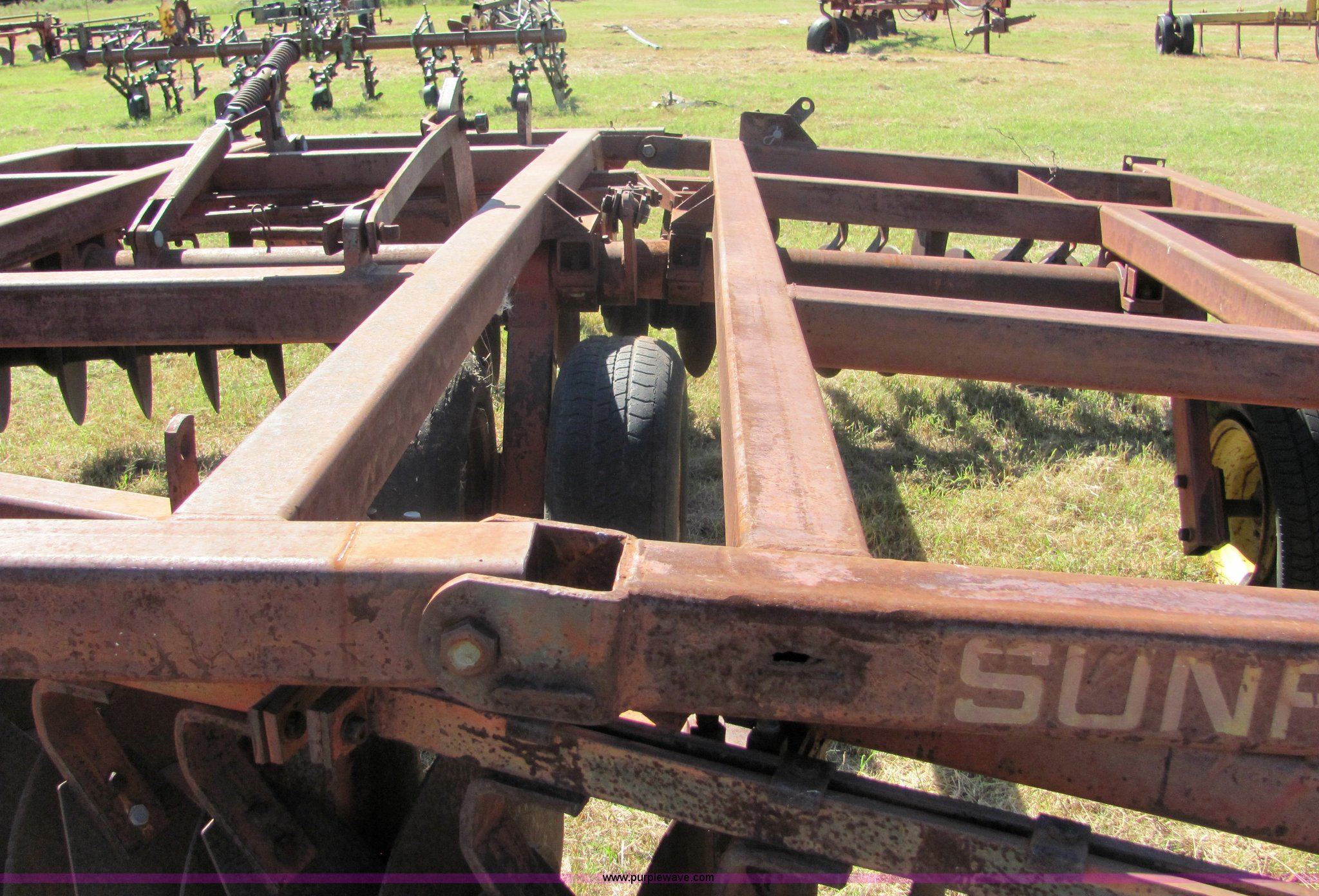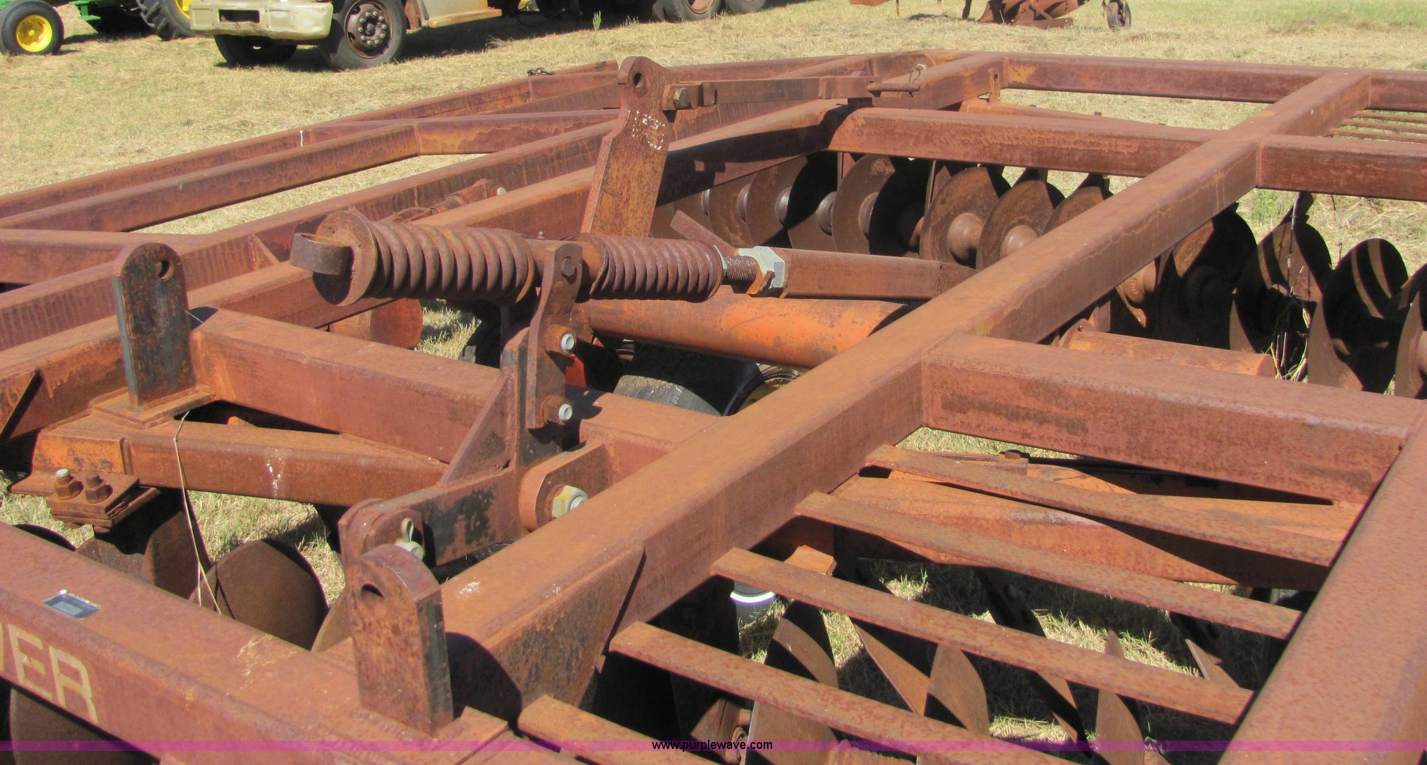 Purple Wave is selling a used Disk in Oklahoma. This item is a Sunflower 16' disc with the following: 17" blades, Flex wing