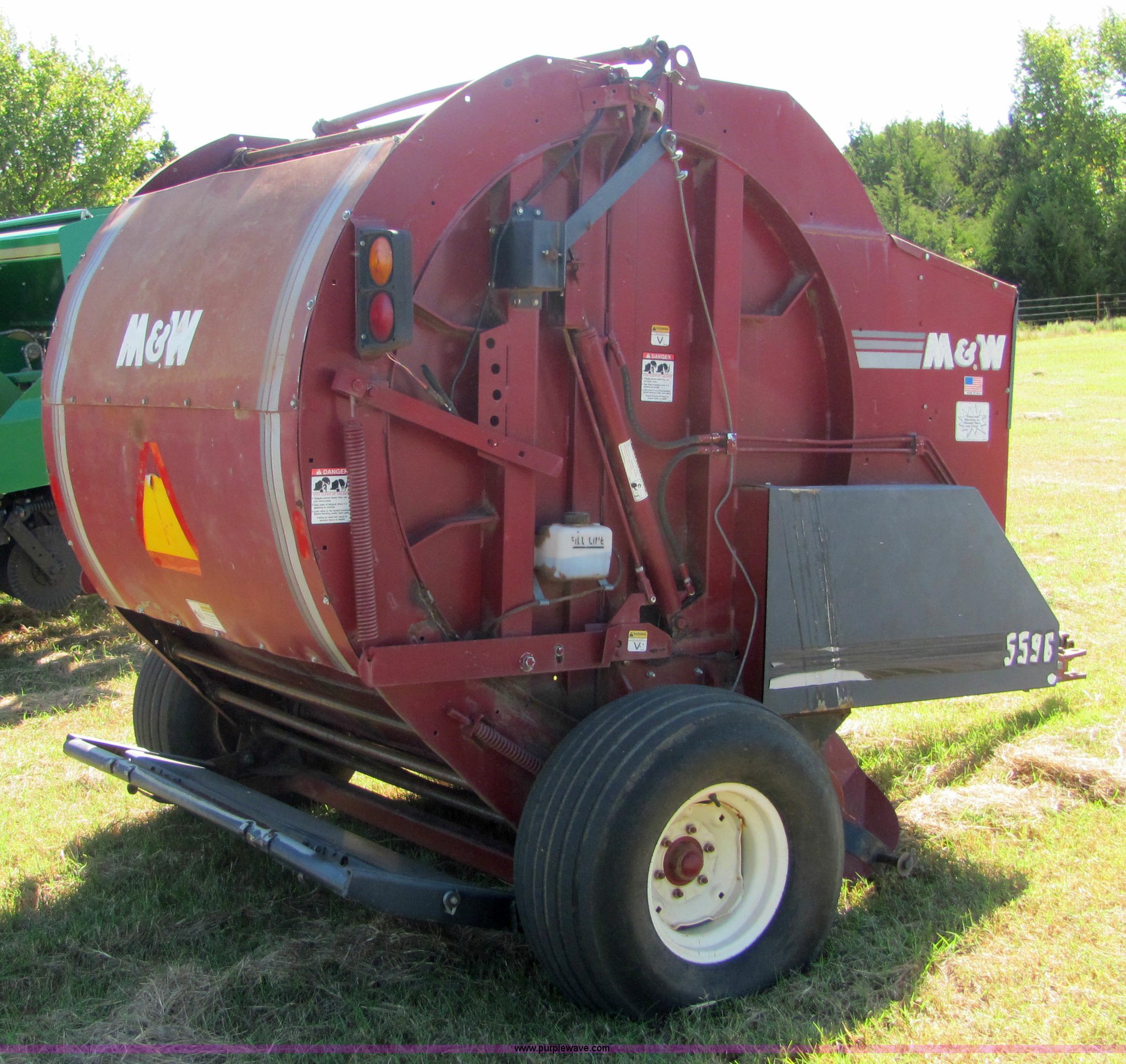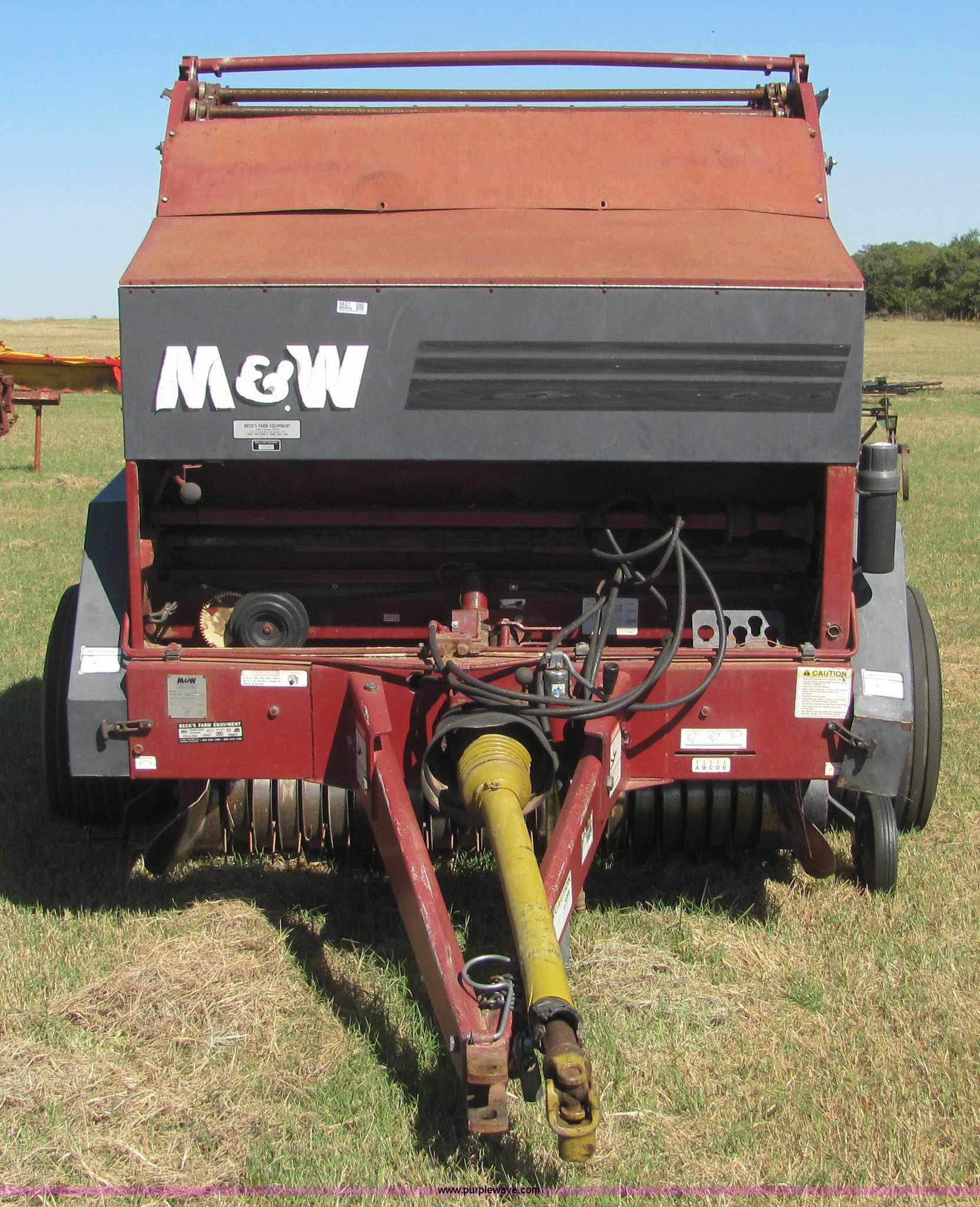 Purple Wave is selling a used Round Baler in Oklahoma. This item is a M&W 5596 round baler with the following: 5x5 bales, Mesh wrap or dual twine tie, 540 PTO, Bale kicker, 31-13.50-15 tires, M&W bale monitor, Model 1457945, Serial 0064, Main drive shaft broken, Serial 55961-10069
