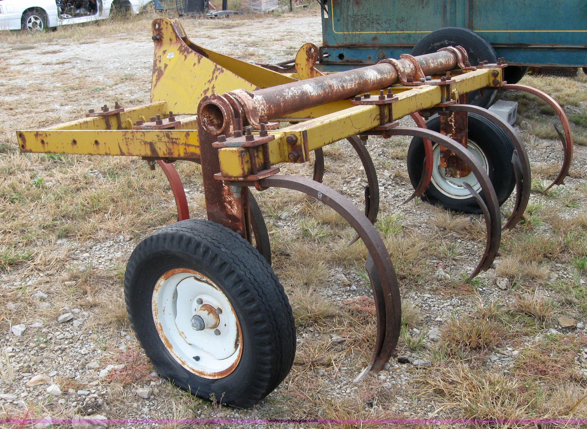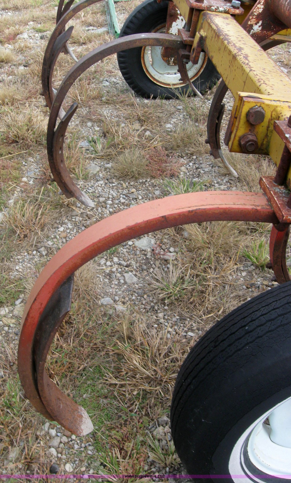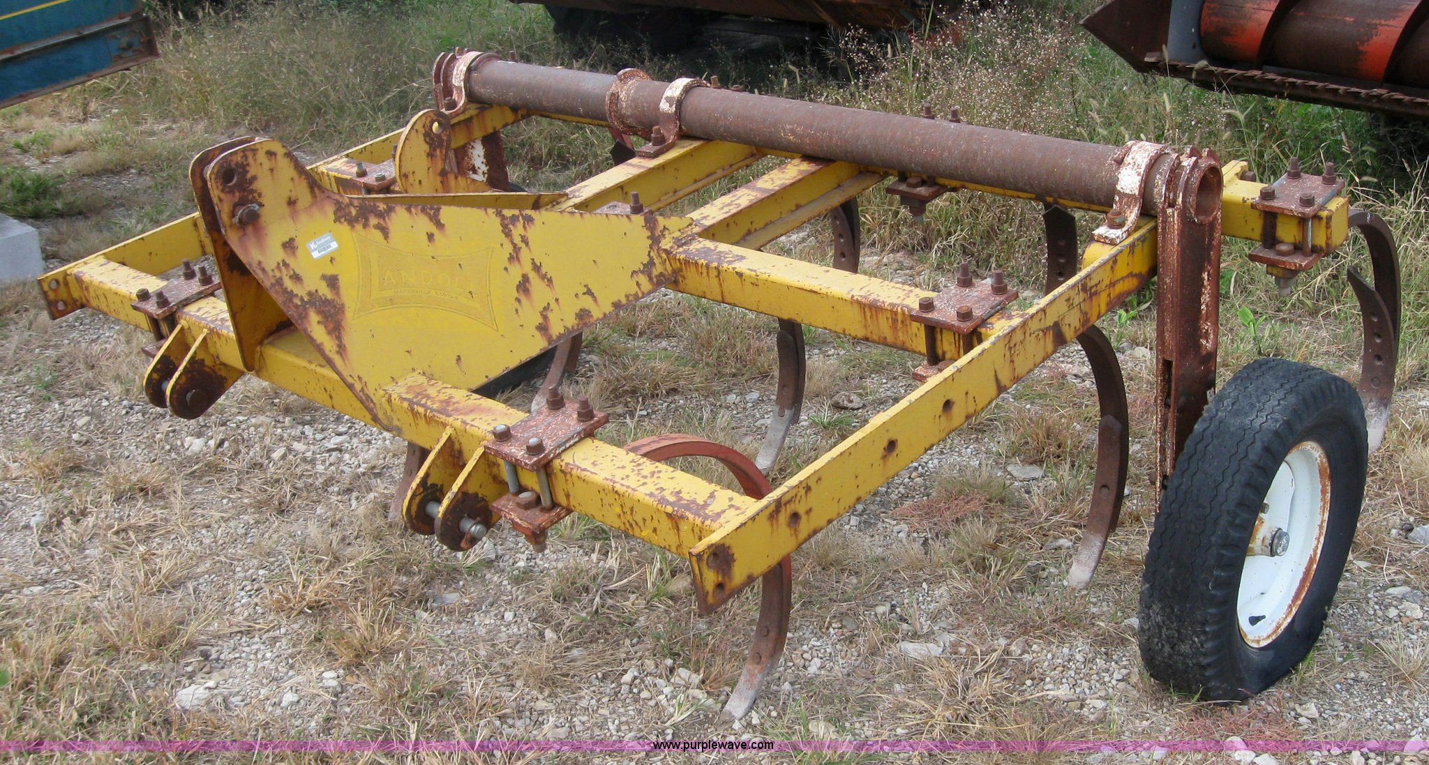 Purple Wave is selling a used Chisel in Kansas. This item is a Landel chisel with the following: Three point, (9) shanks, No cylinder, Tire needs replaced