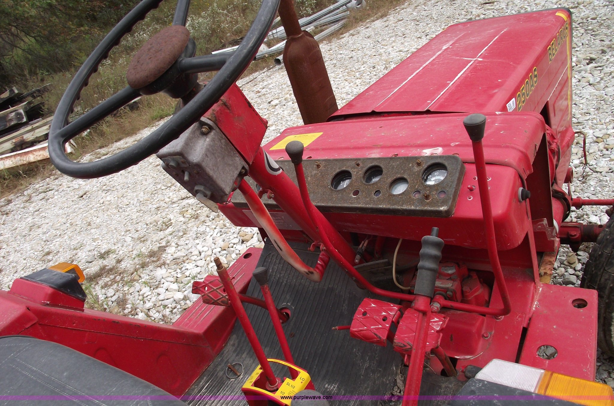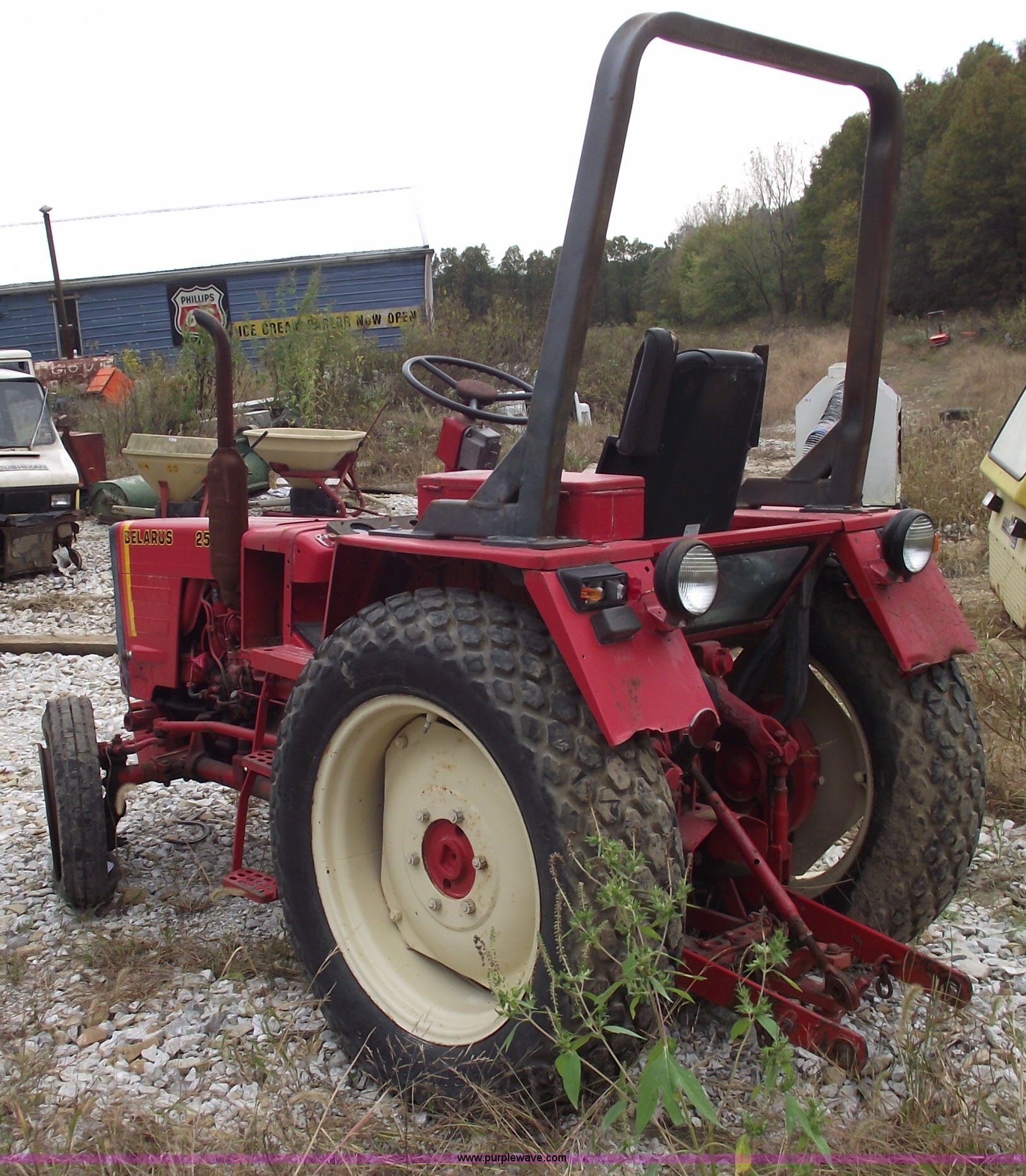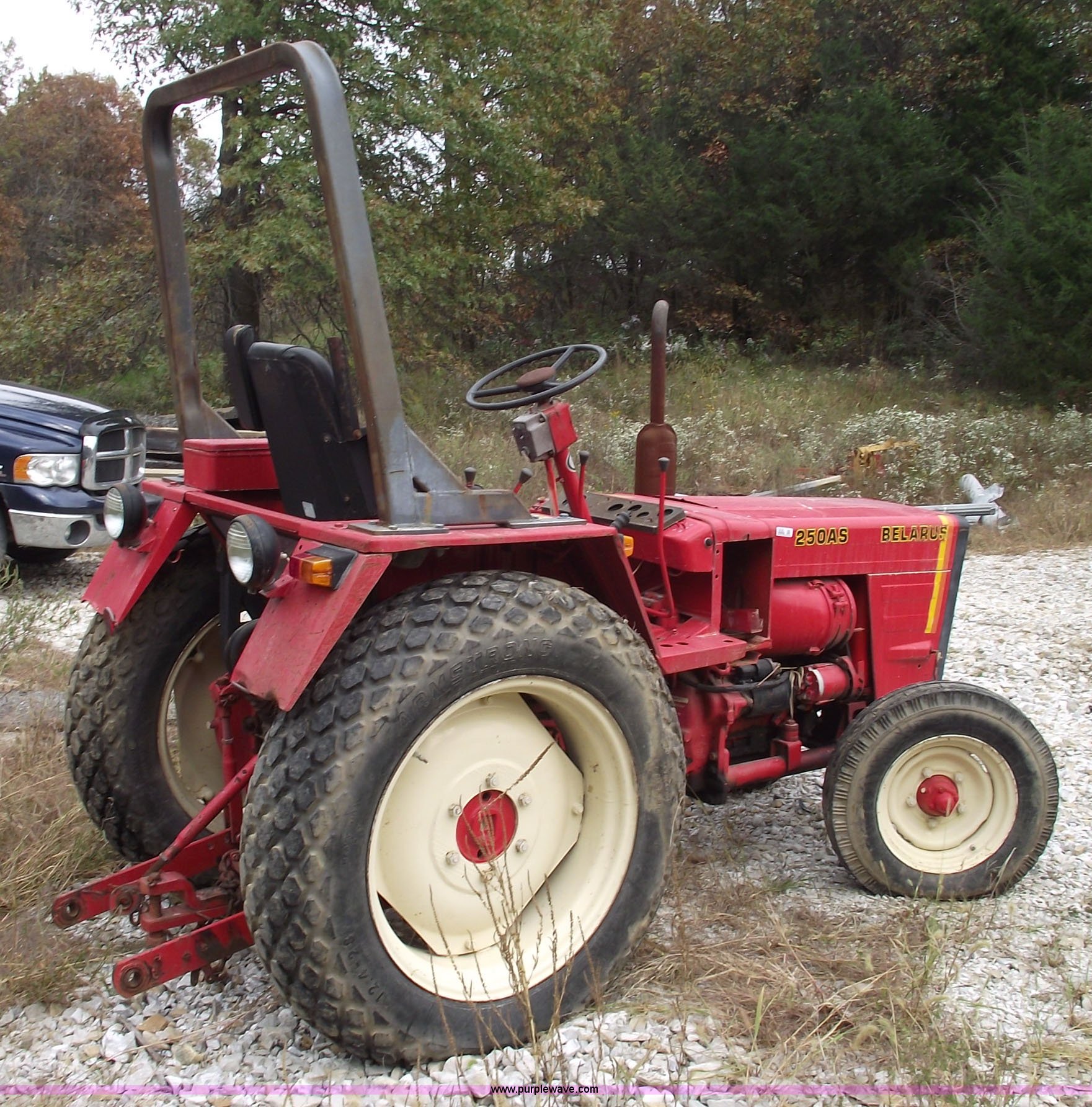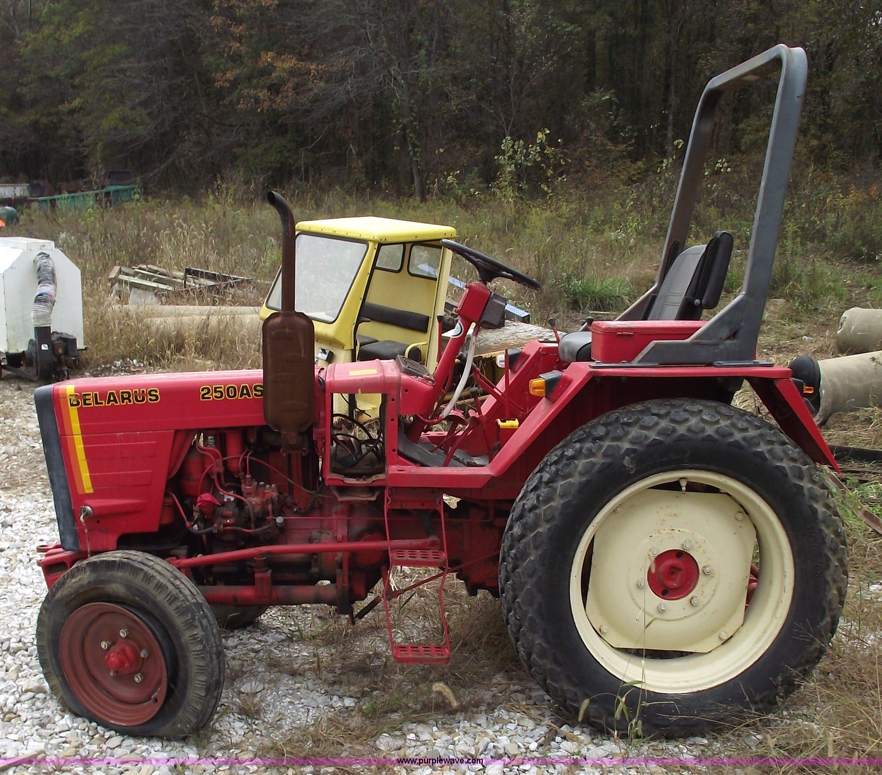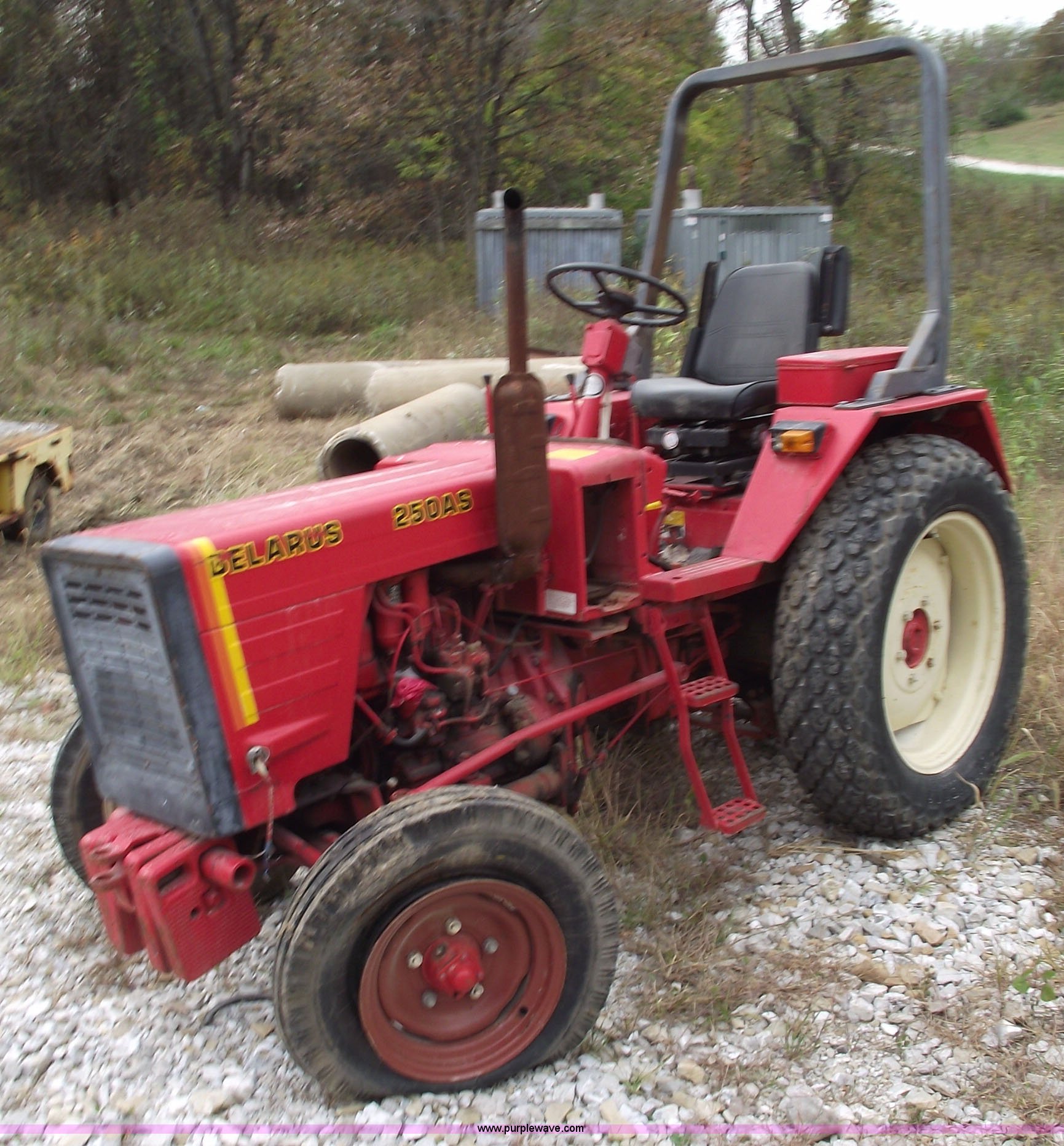 Purple Wave is selling a used Tractor in Missouri. This item is a 1984 Belarus 250AS tractor with the following: Two cylinder diesel engine, Six forward and two reverse gears, Spring seat, 12.4-28 rear tires, 406/600-16 front tires, Three point, 540 PTO, ROPS, Front weights, Running condition, Needs battery and fuel filter, Serial 582996