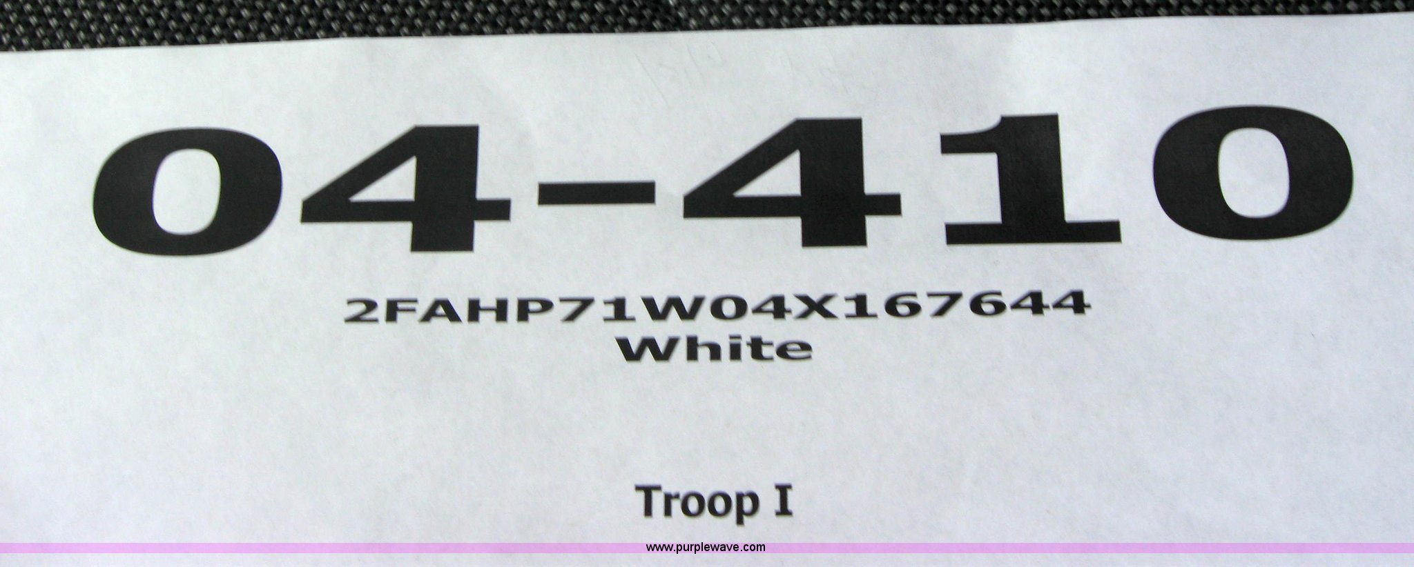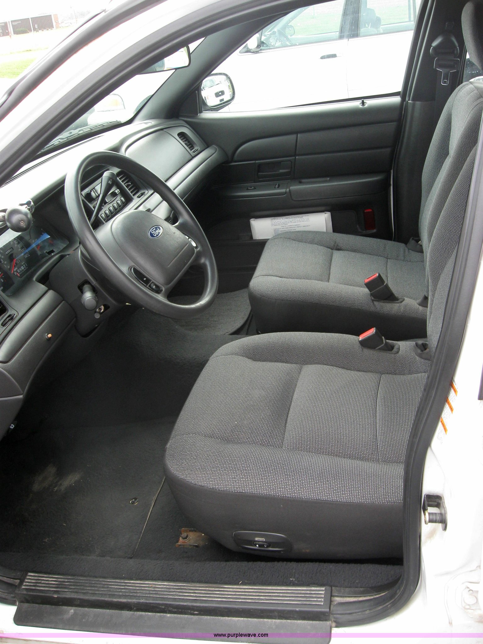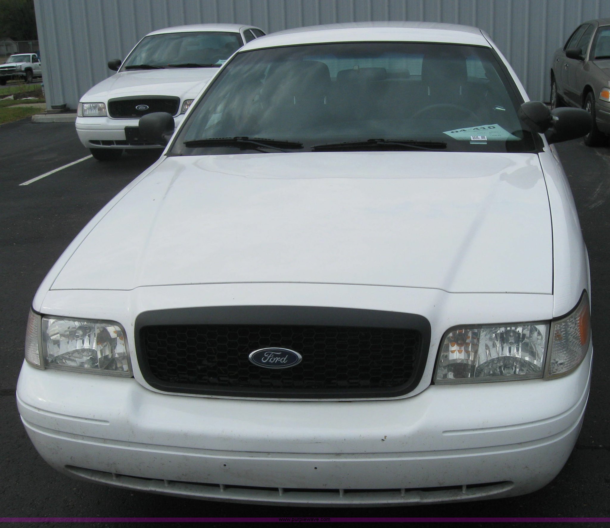 Purple Wave is selling a used Passenger Vehicle in Kansas. This item is a 2004 Ford Crown Victoria Police Interceptor with the following: 100,014 miles on odometer, 4.6L V8 EFI, Automatic transmission, AC and heat, AM/FM radio, Power windows, locks, and seat, Cruise control, Hail damage, Scratches and dings, Driver's seat worn, Unit # 04-410