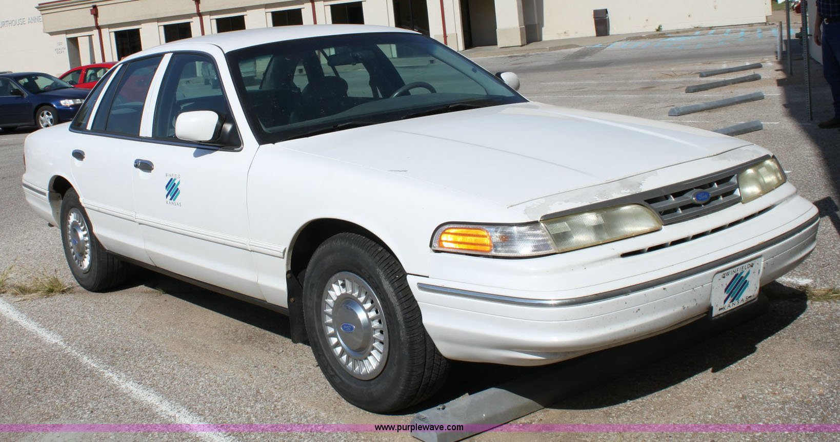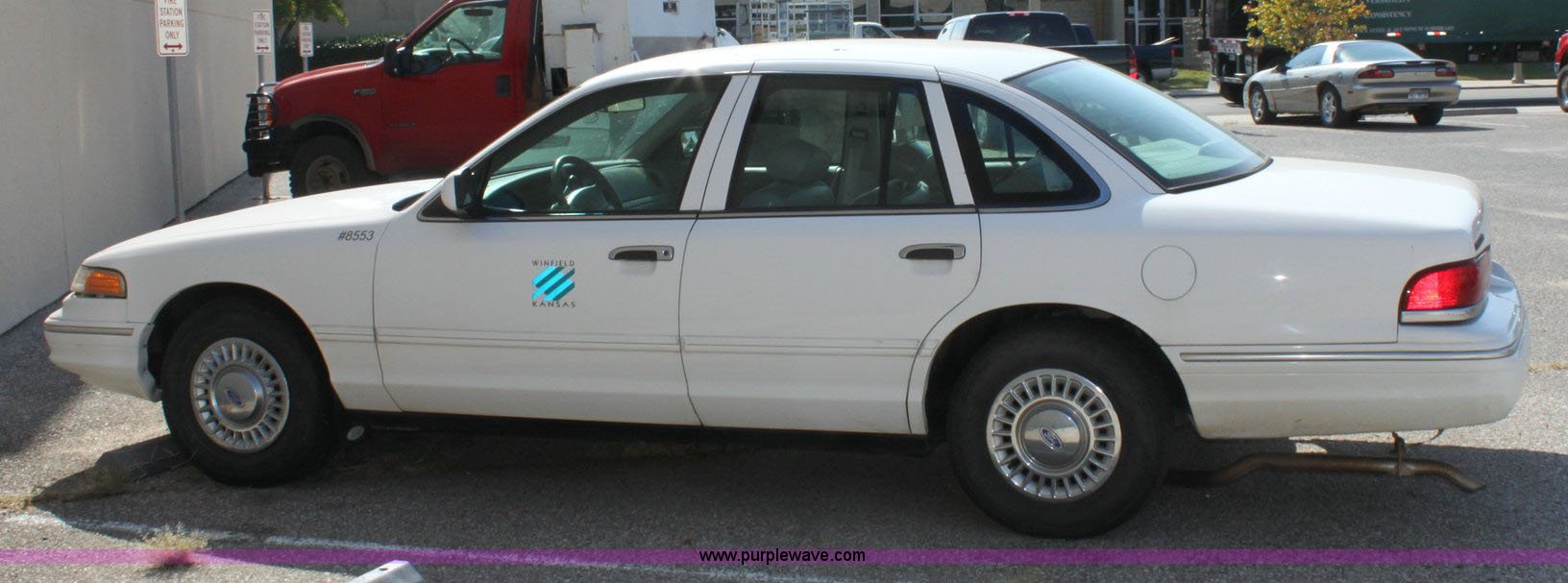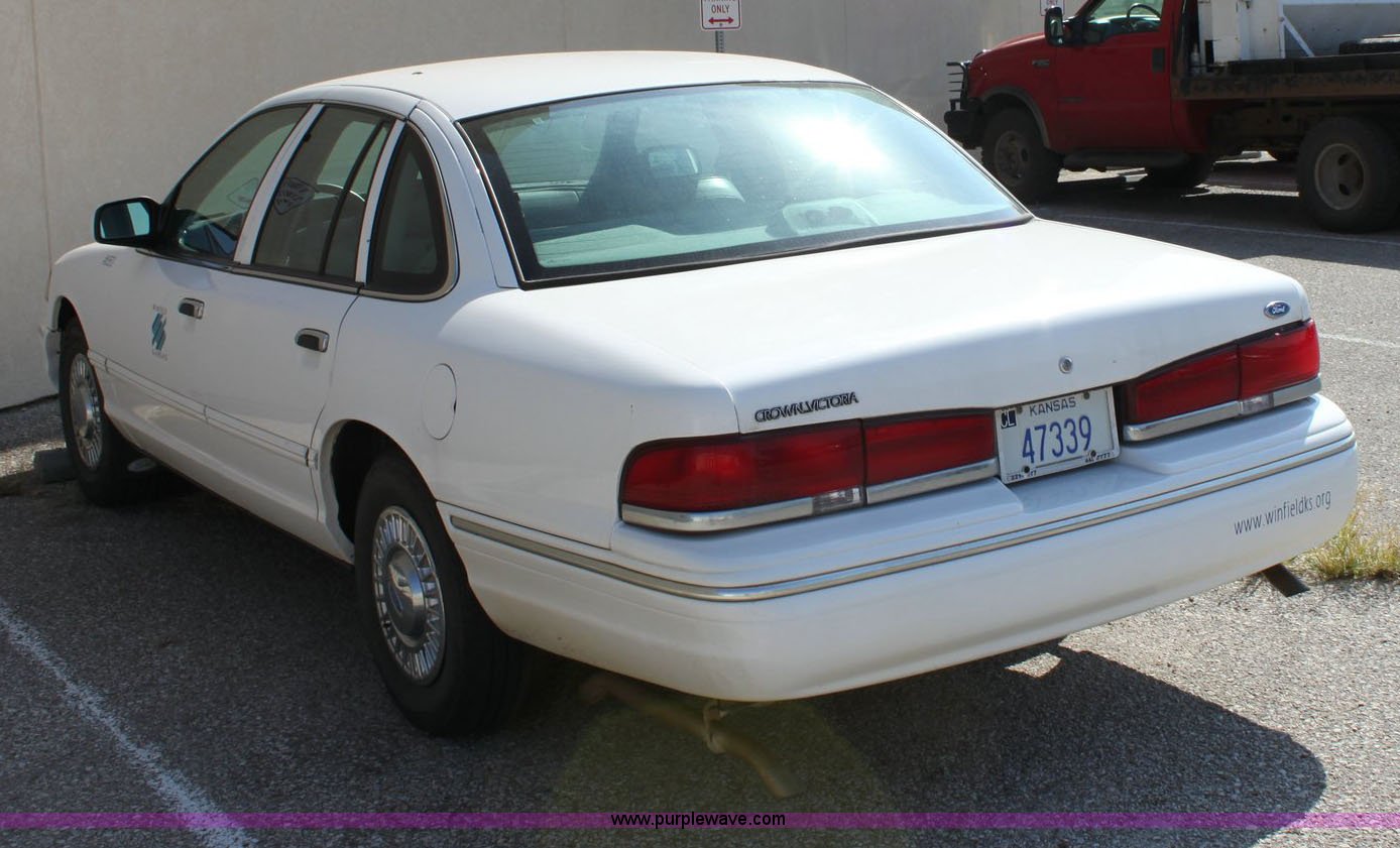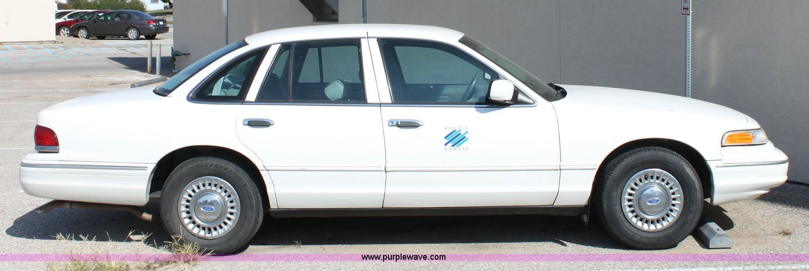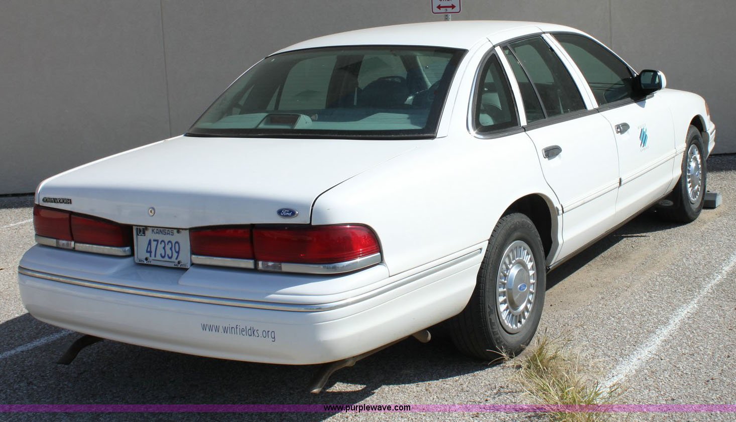 Purple Wave is selling a used Passenger Vehicle in Kansas. This item is a 1997 Ford Crown Victoria Police Interceptor with the following: 120,556 miles on odometer, 4.6L V8 EFI, Automatic transmission, AC and heat, Tilt steering wheel, Cruise control, AM/FM radio, Power windows, locks, mirrors, and seats, Decals will be removed