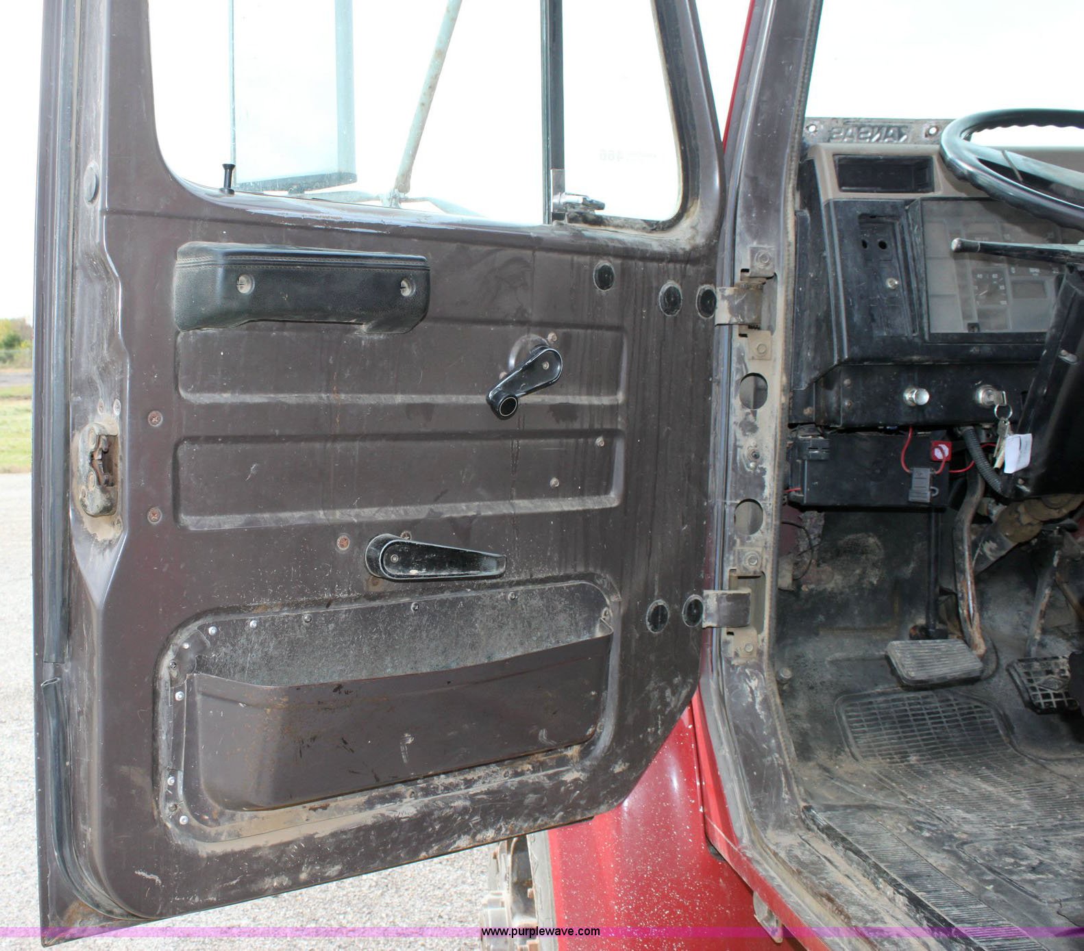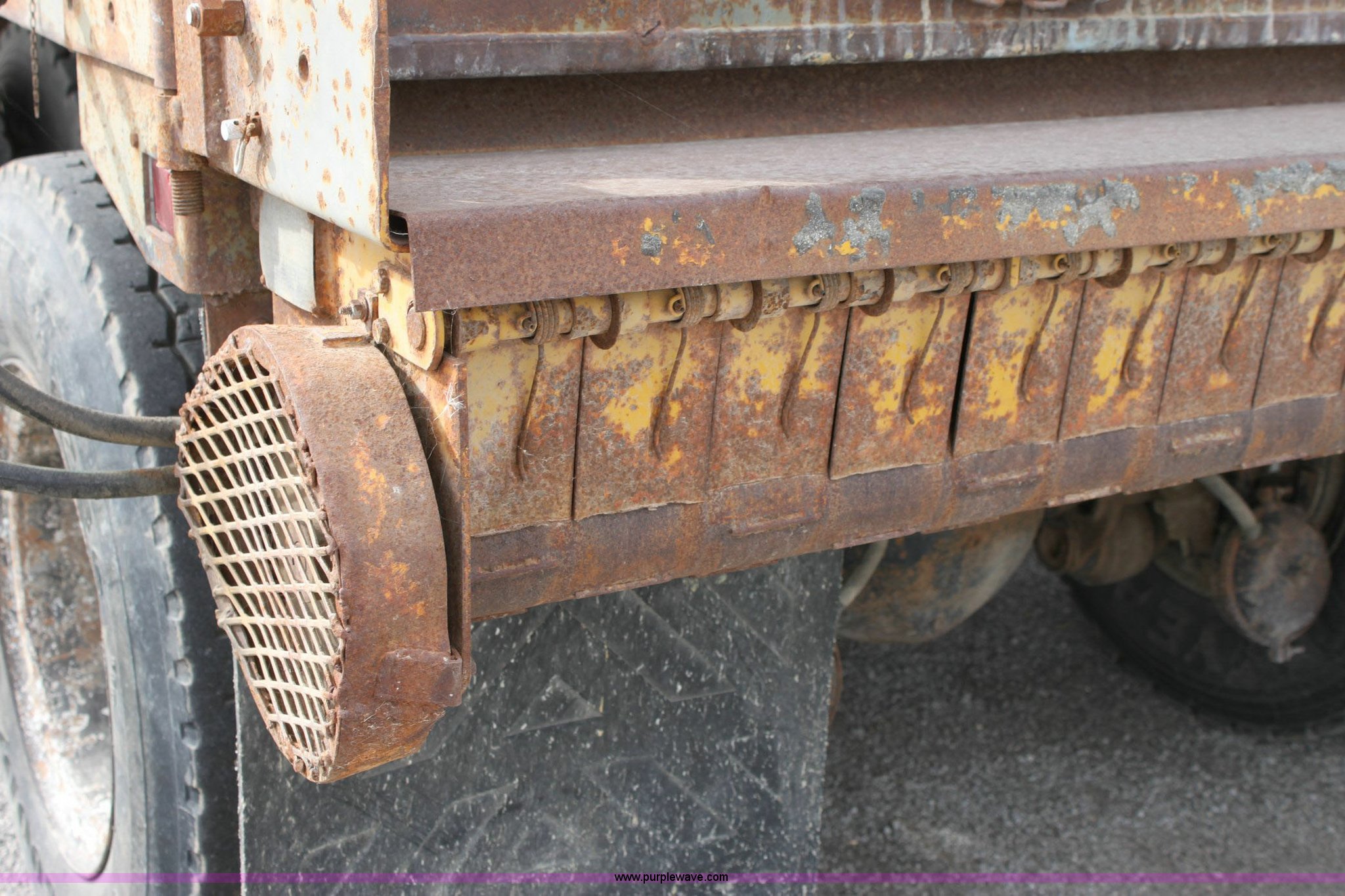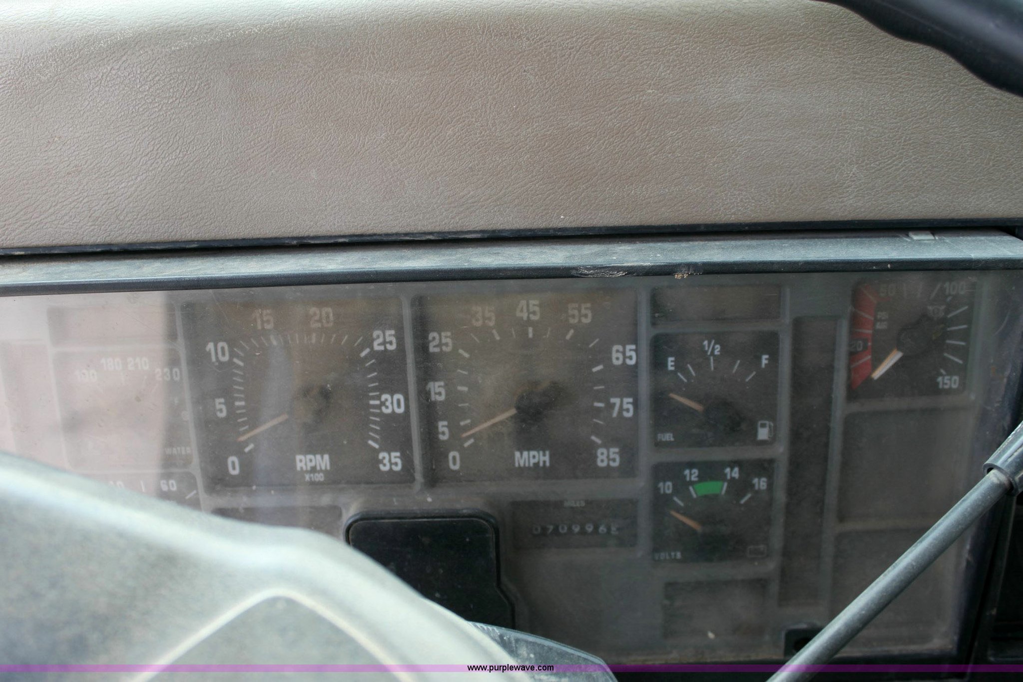 Purple Wave is selling a used Construction Dump Truck in Kansas. This item is a 1992 International 4900 tandem axle dump truck with the following: 70,996 miles on odometer, International DT-466 L6, 7.6L (466CID) diesel engine, Eaton Fuller 10-speed split axle manual transmission, Locking differential, Chelsea PTO, 11' snow plow, Snowplow controls, Dual fuel tanks, 10.00R20 tires, Rear bed hydraulic couplers, Manual release endgate, Manual roll-over tarp, Spring suspension, Heat, 46,000lbs GAWR, 12,000lbs GAWR front, 17,000lbs GAWR Intermediate, 17,000lbs GAWR rear, Equipment # 2426