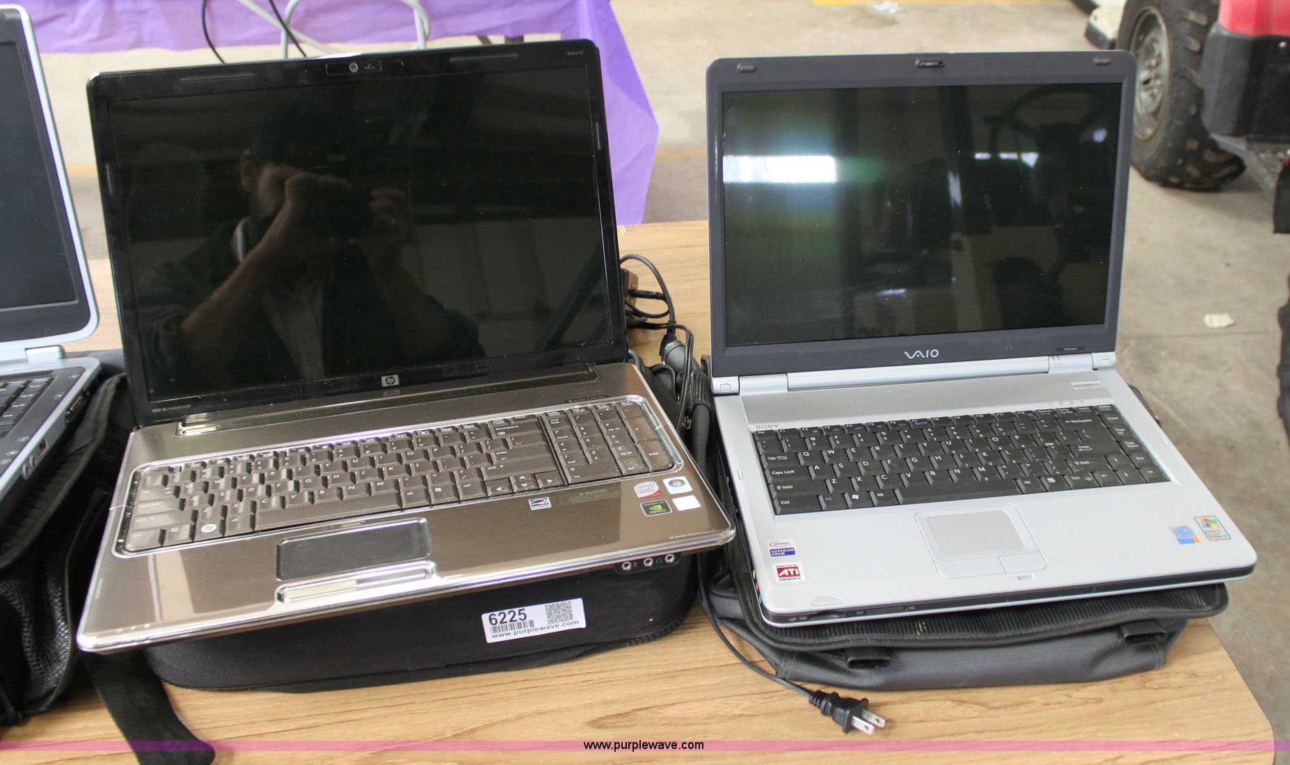 Purple Wave is selling a used Computers in Kansas. This item is a (2) laptop computers with the following: HP Pavilion, Windows Vista, Intel Centrino processor, Sony Vaio PCG-K35, Windows XP, Intel Pentium 4 processor, HDD has been wiped, Order# 09MR-732
