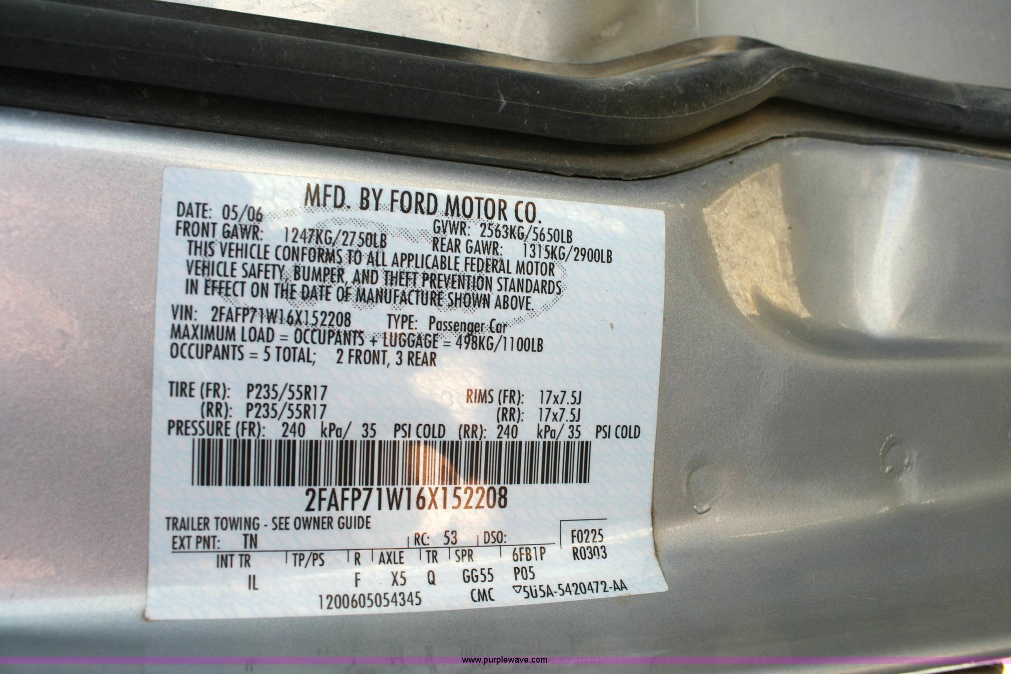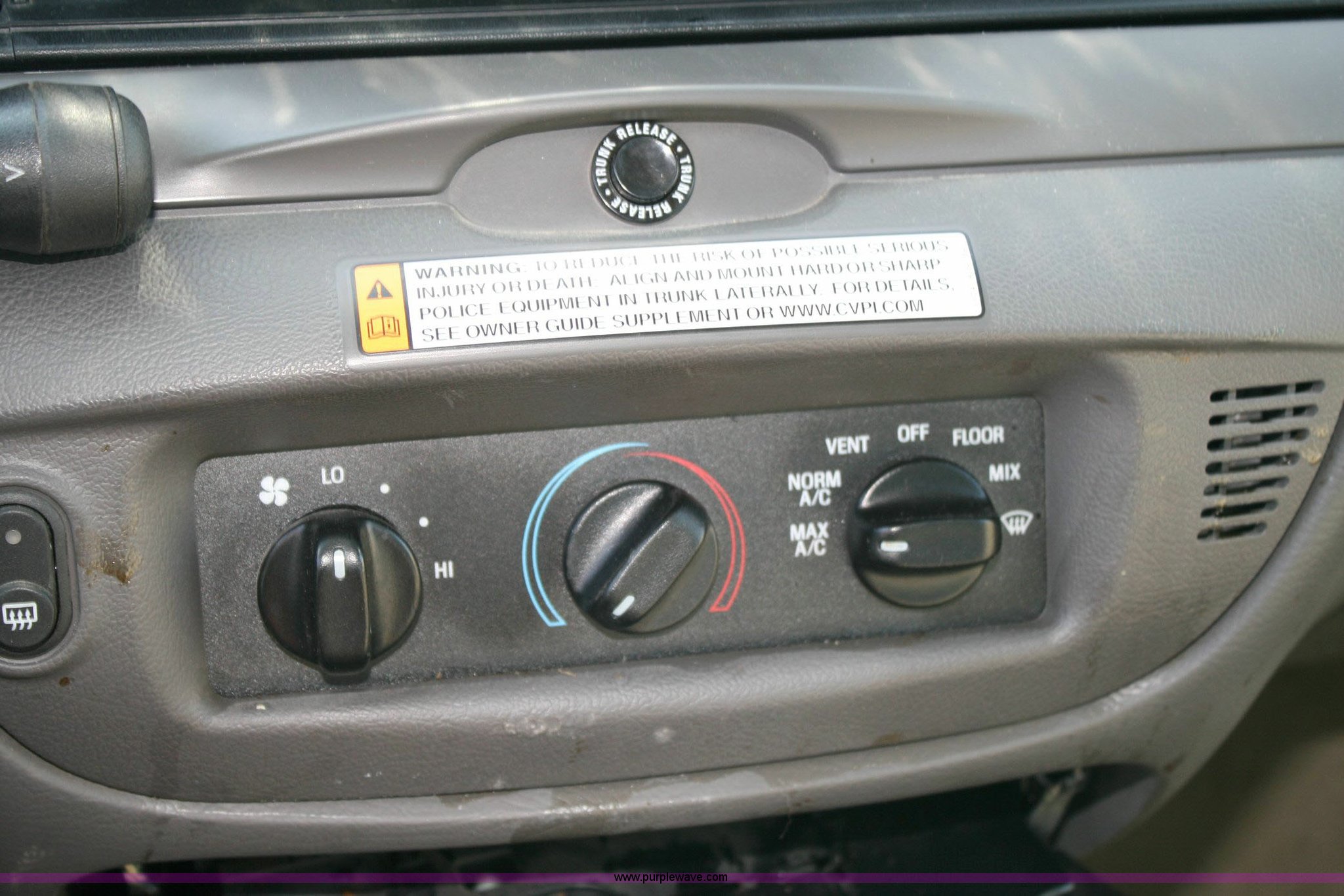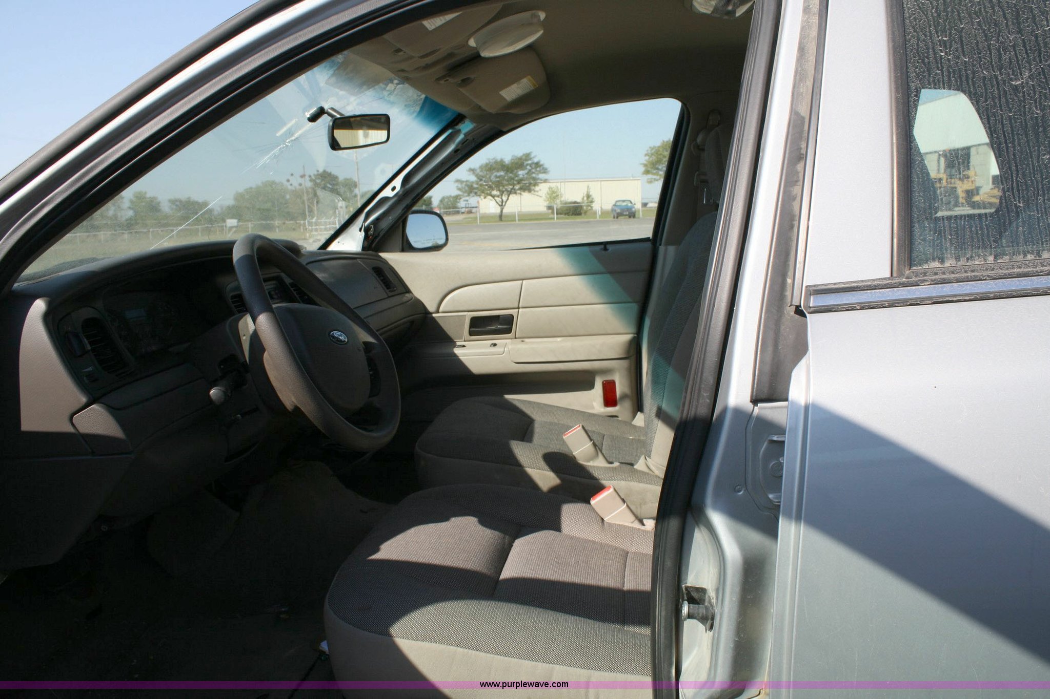 Purple Wave is selling a used Passenger Vehicle in Kansas. This item is a 2006 Ford Crown Victoria Police Interceptor with the following: 37,078 miles on odometer, 4.6L V8 EFI, Automatic transmission, AC and heat, Tilt steering wheel, Cruise control, AM/FM radio, Power windows, locks, and mirrors, 235/55R17 tires, Substantial front end damage, Cracked windshield, Damage to column shifter, Vehicle must be towed