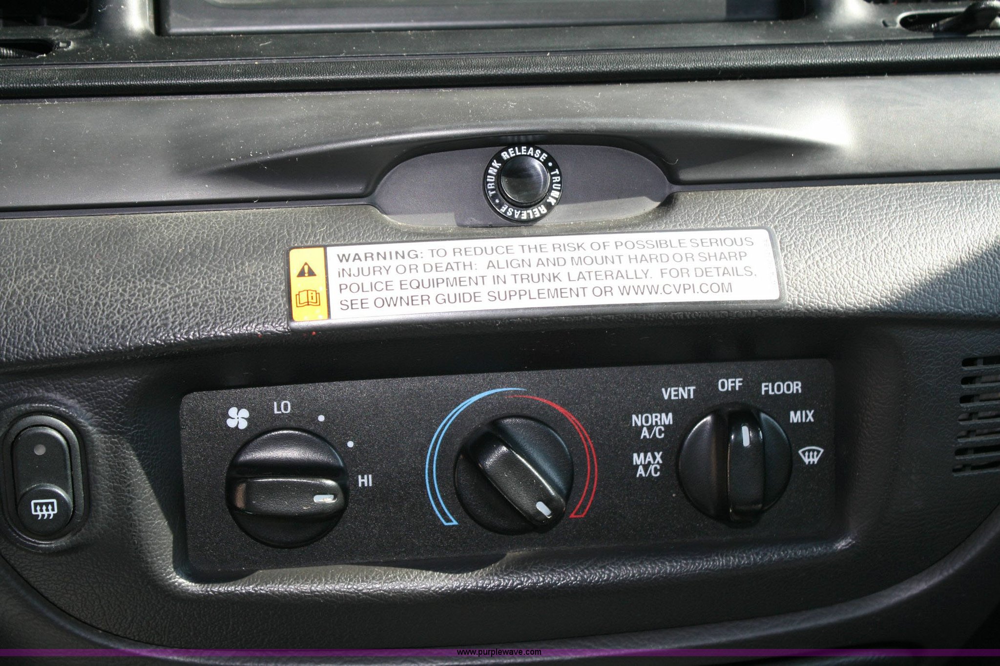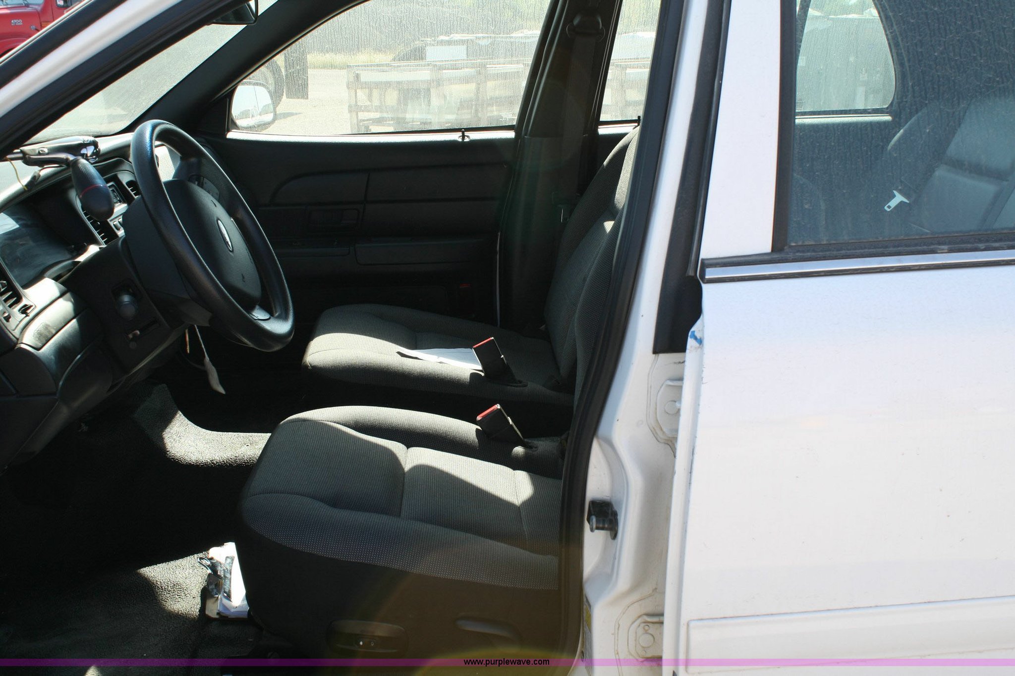 Purple Wave is selling a used Passenger Vehicle in Kansas. This item is a 2006 Ford Crown Victoria Police Interceptor with the following: 118,981 miles on odometer, 4.6L V8 EFI, Automatic transmission, AC and heat, Tilt steering wheel, Cruise control, AM/FM radio, Power windows, locks, and mirrors, 235/55R17 tires, Transmission does not function properly, Air bag light on, Crack in rear bumper