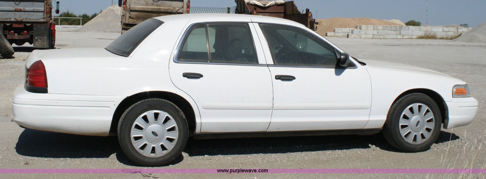 Purple Wave is selling a used Passenger Vehicle in Kansas. This item is a 2006 Ford Crown Victoria Police Interceptor with the following: 105,702 miles on odometer, 4.6L V8 EFI, Automatic transmission, AC and heat, Tilt steering wheel, Cruise control, AM/FM radio, Power windows, locks, and mirrors, 235/55R17 tires, Cracked windshield