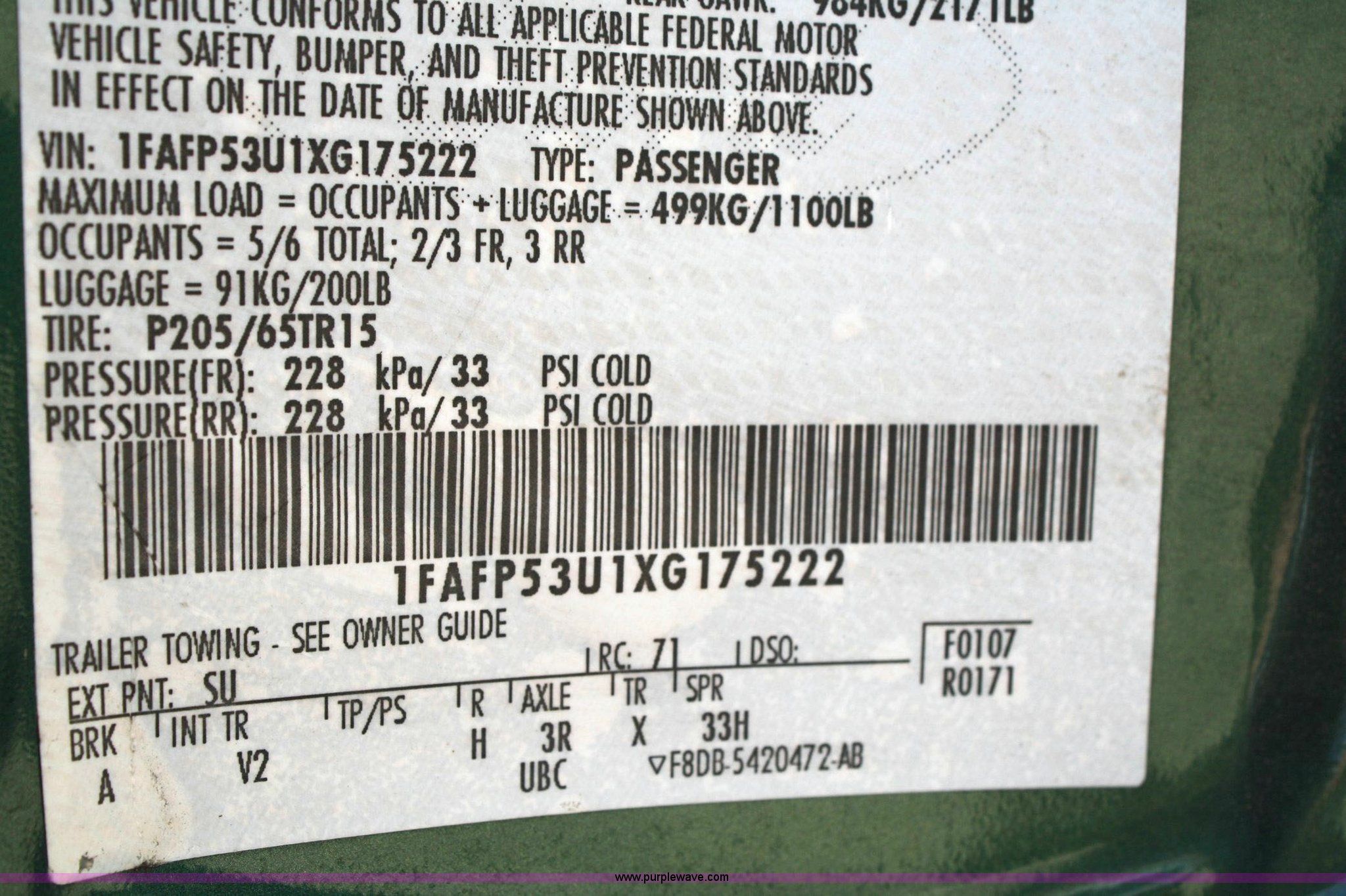 Purple Wave is selling a used Passenger Vehicle in Kansas. This item is a 1999 Ford Taurus SE with the following: 135,433 miles on odometer, 3.0L V6 EFI, Automatic transmission, AC and heat, Tilt steering wheel, Cruise control, AM/FM/cassette player, Power windows, locks, mirrors, and seats, 205/65R15 tires