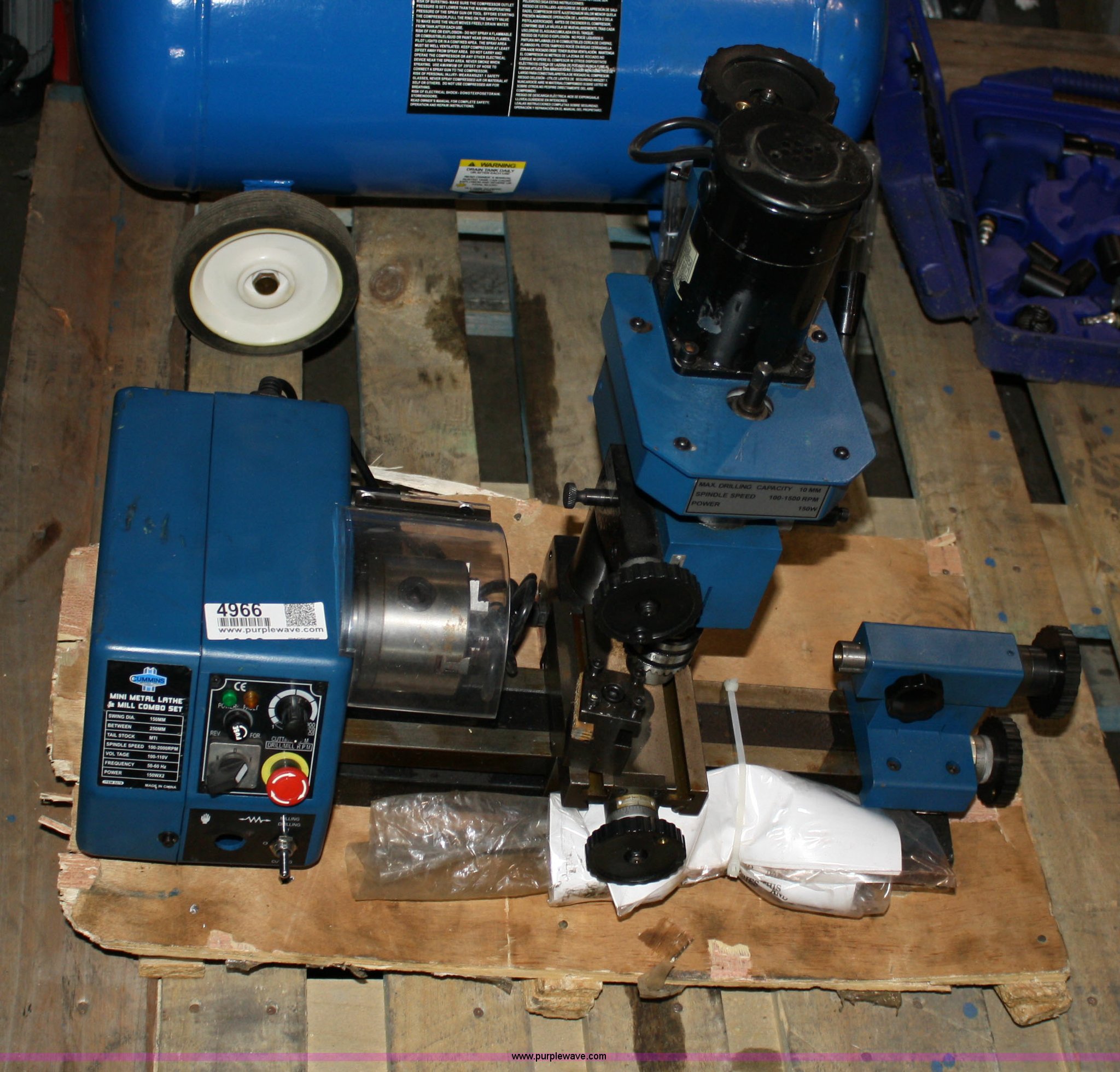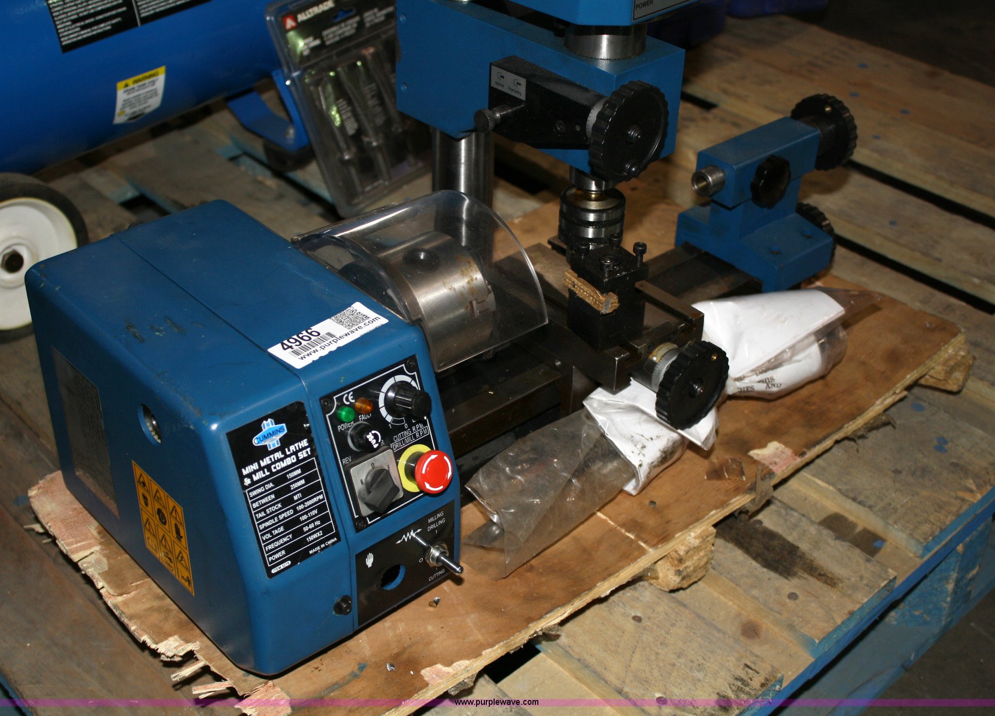 Purple Wave is selling a used Tools in Kansas. This item is a Cummins mini metal lathe and mill combo set with the following: Cummins mini metal lathe and mill combo set. Shipping quotes available. TAP Enterprises, Inc.. 650 North Lincoln St.. Spring Hill, KS 66083
