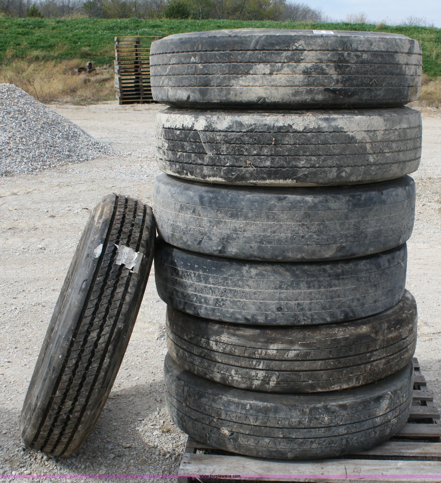 (7) 285/75R24.5 low profile tires. One tire is new. Shipping quotes available. Sod Shop Inc.. 4855 W. 231 St.. Bucyrus, KS 66013