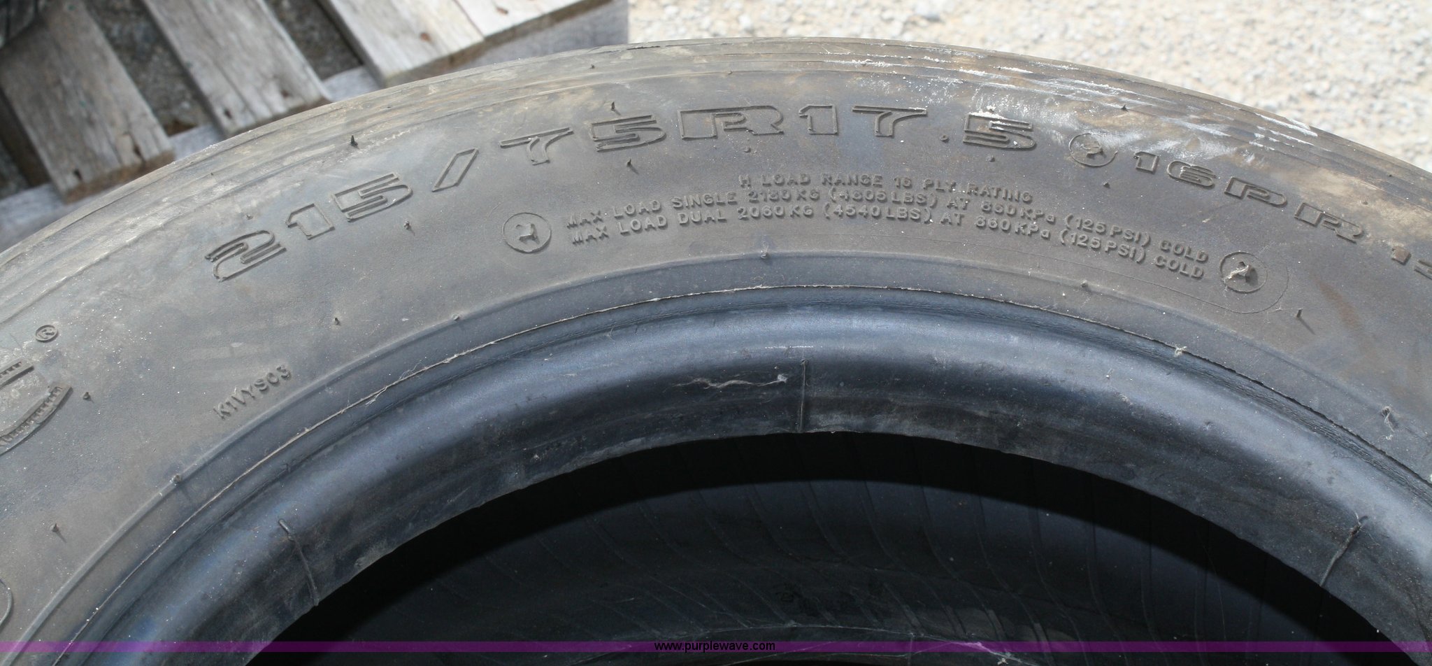 Purple Wave is selling a used Automotive Parts or Acces. in Kansas. This item is a (4) 215/75R17.5 tires with the following: (4) 215/75R17.5 tires. Shipping quotes available. Sod Shop Inc.. 4855 W. 231 St.. Bucyrus, KS 66013