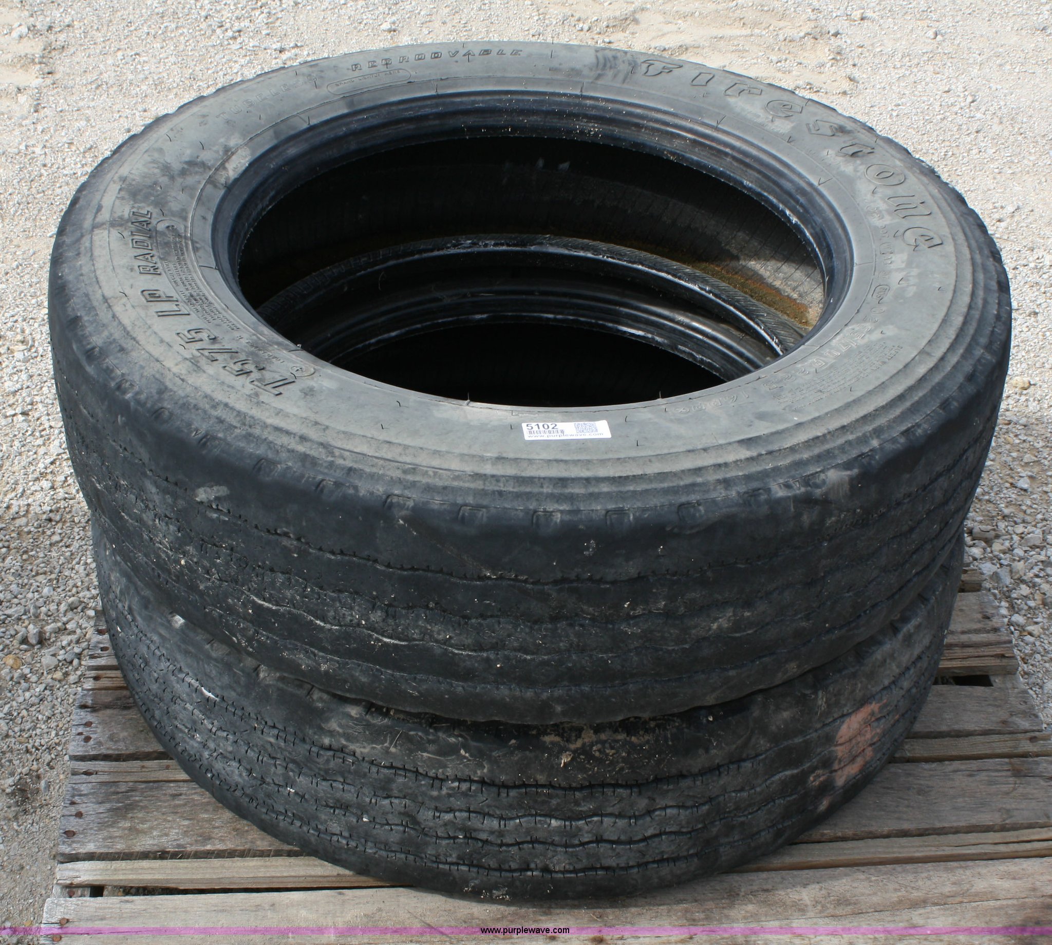 (2) 255/70R22.5 tires has sold in Bucyrus, Kansas for $0. Item 5102 sold on November 17th, 2010.