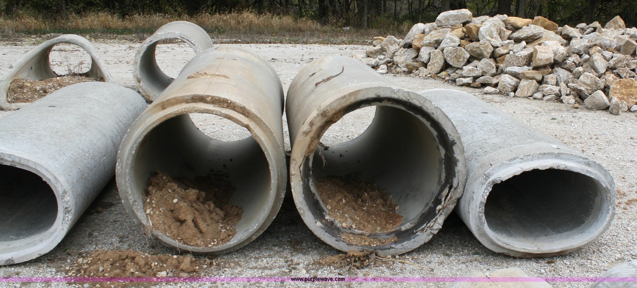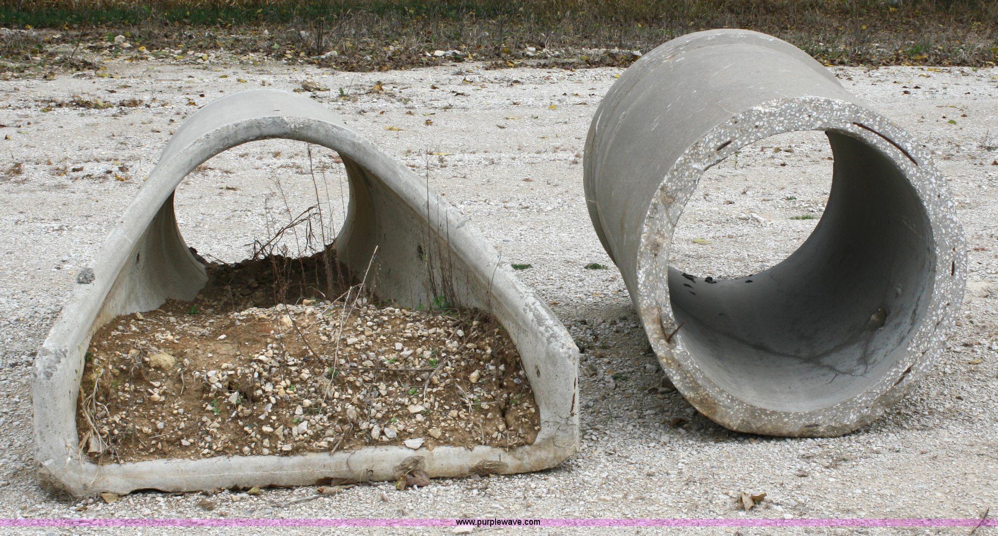 Purple Wave is selling a used Other Industrial or Business in Kansas. This item is a Concrete tubes with the following: (2) 8'L oval tubes, 30" x 19" inside dimension, 5'L oval tube, 30" x 19" inside dimension, 8'L round tube, 29" inside diameter, (2) 8'L round tube, 12" inside diameter, 7' round tube, 12" inside diameter, 2' diameter inlet
